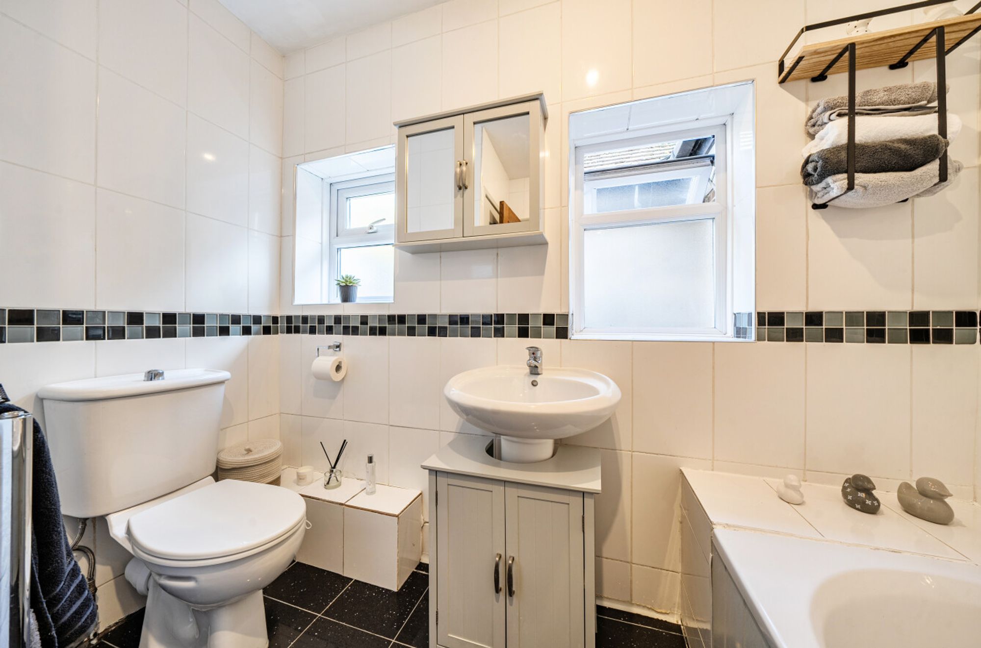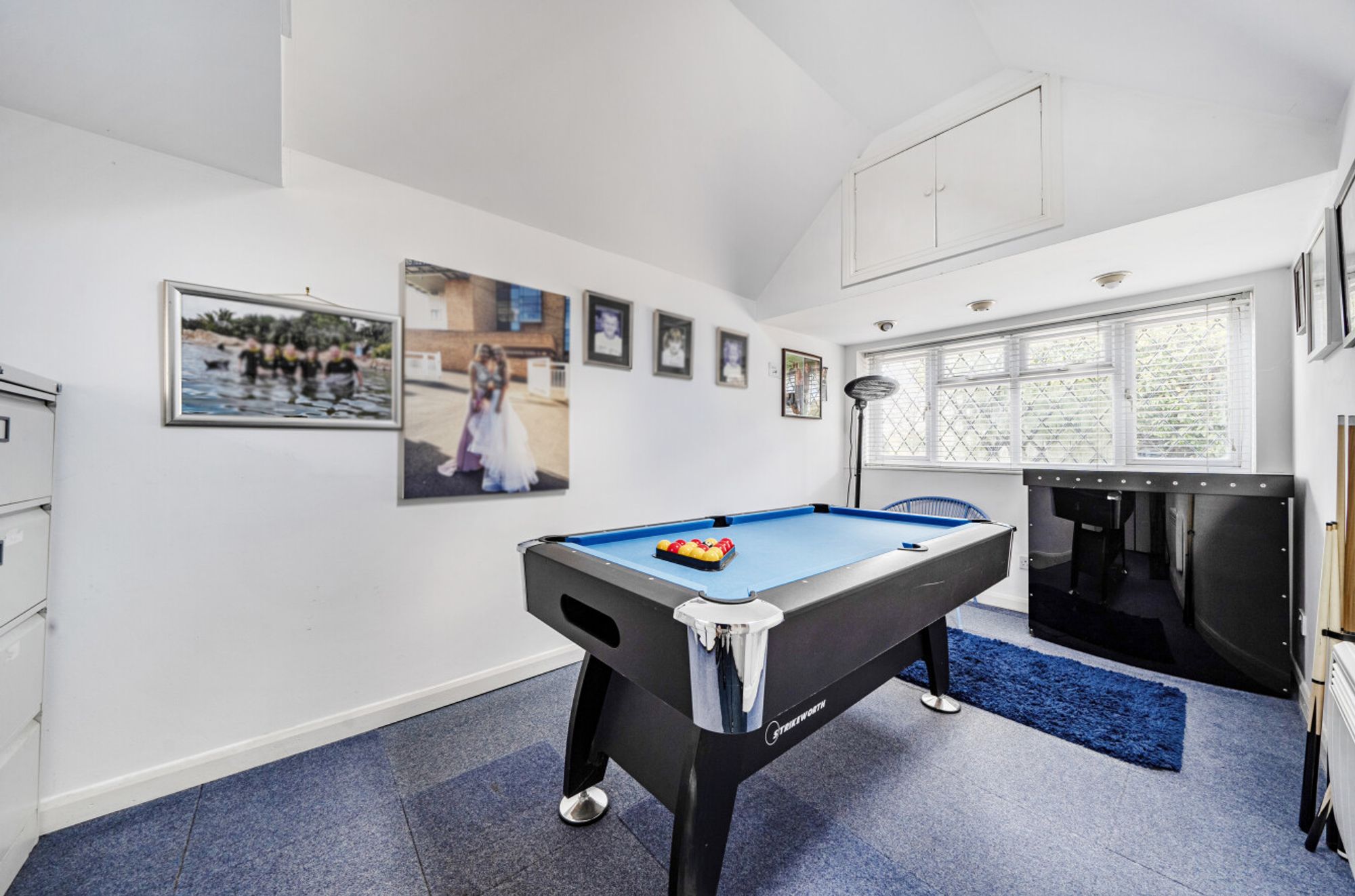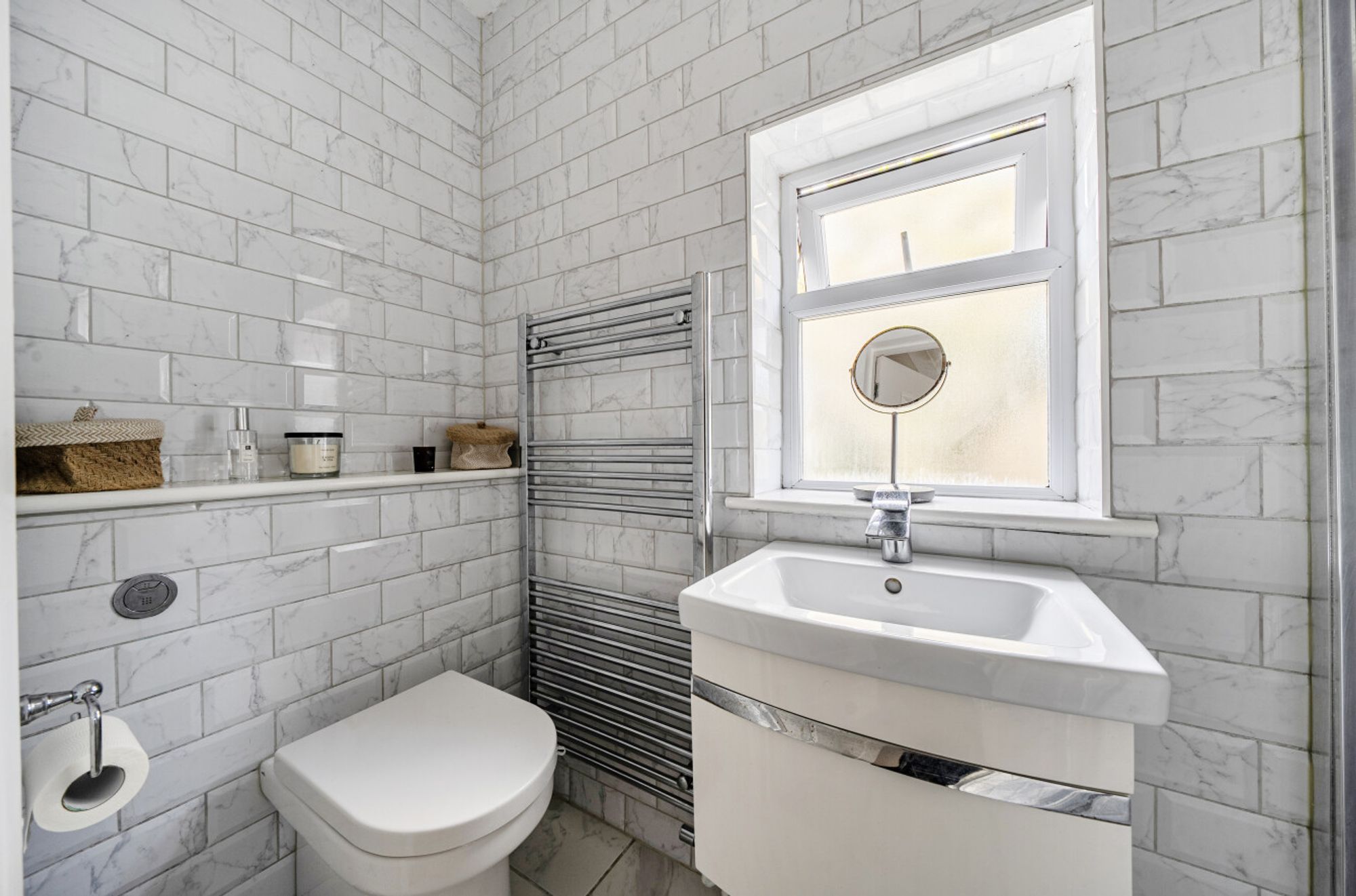 There are four well-proportioned double bedrooms, including a main bedroom with French doors opening onto the garden, fitted storage and a modern en suite shower room. A contemporary family bathroom serves the remaining bedrooms.