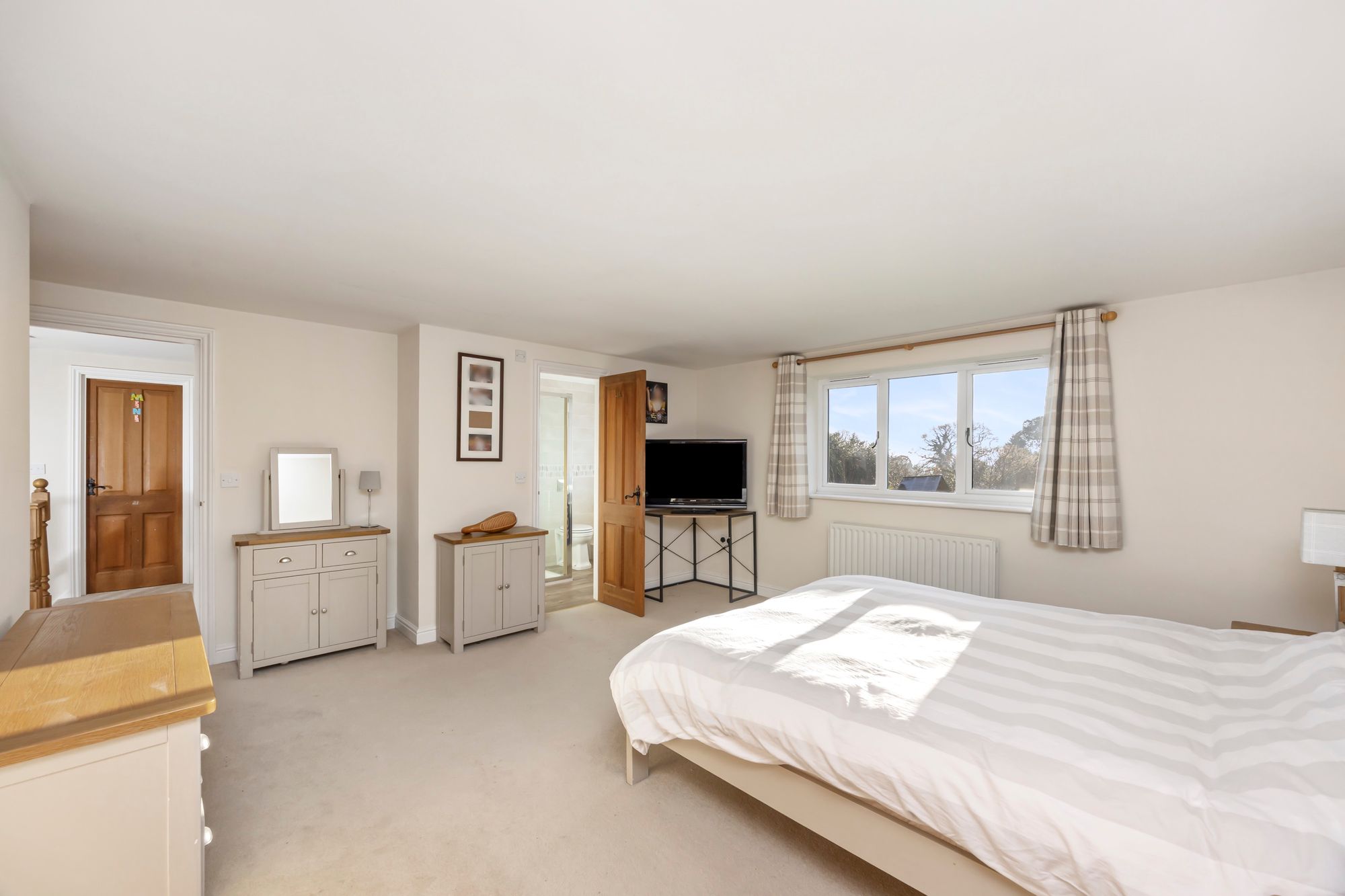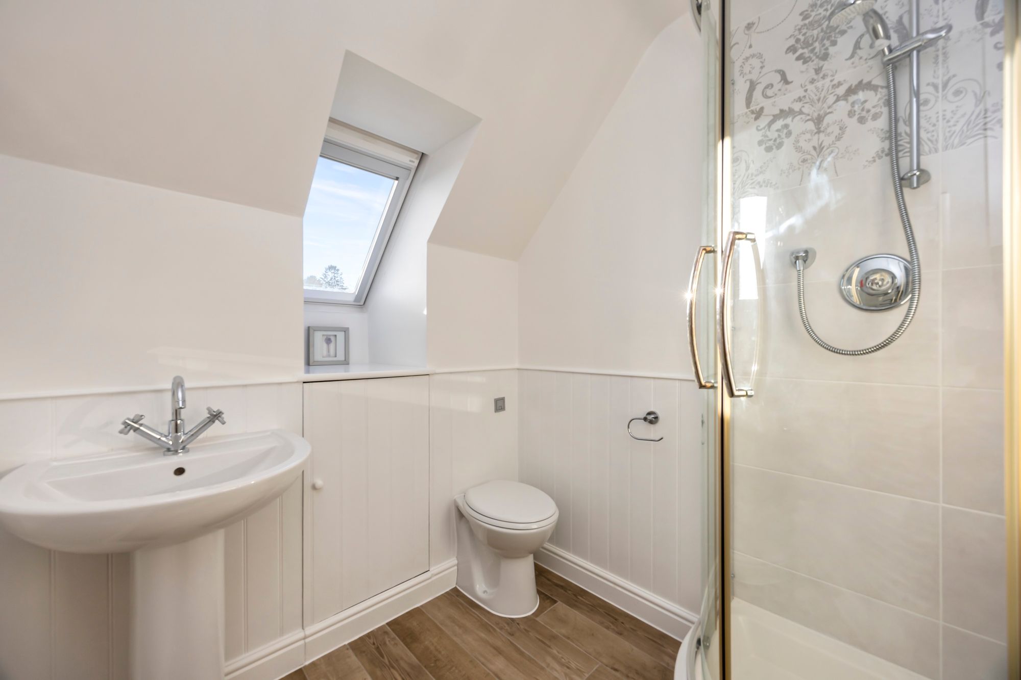 To the first floor; the main bedroom enjoys generous fitted wardrobe space, and an accompanying en-suite shower room featuring a walk-in shower, wash hand basin and a low-level WC - all finished to a traditional style and complimented with chrome fittings. Three further double bedrooms are featured to the first floor - all of which have fitted cupboard or wardrobe space, there is also well equipped family bathroom which has a modern suite featuring white bathroom ware and contemporary fitments.