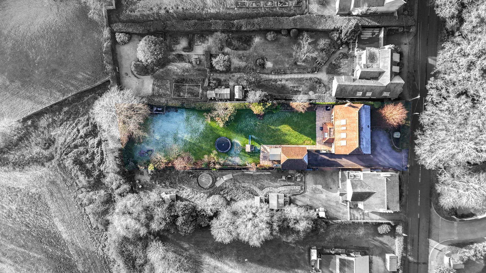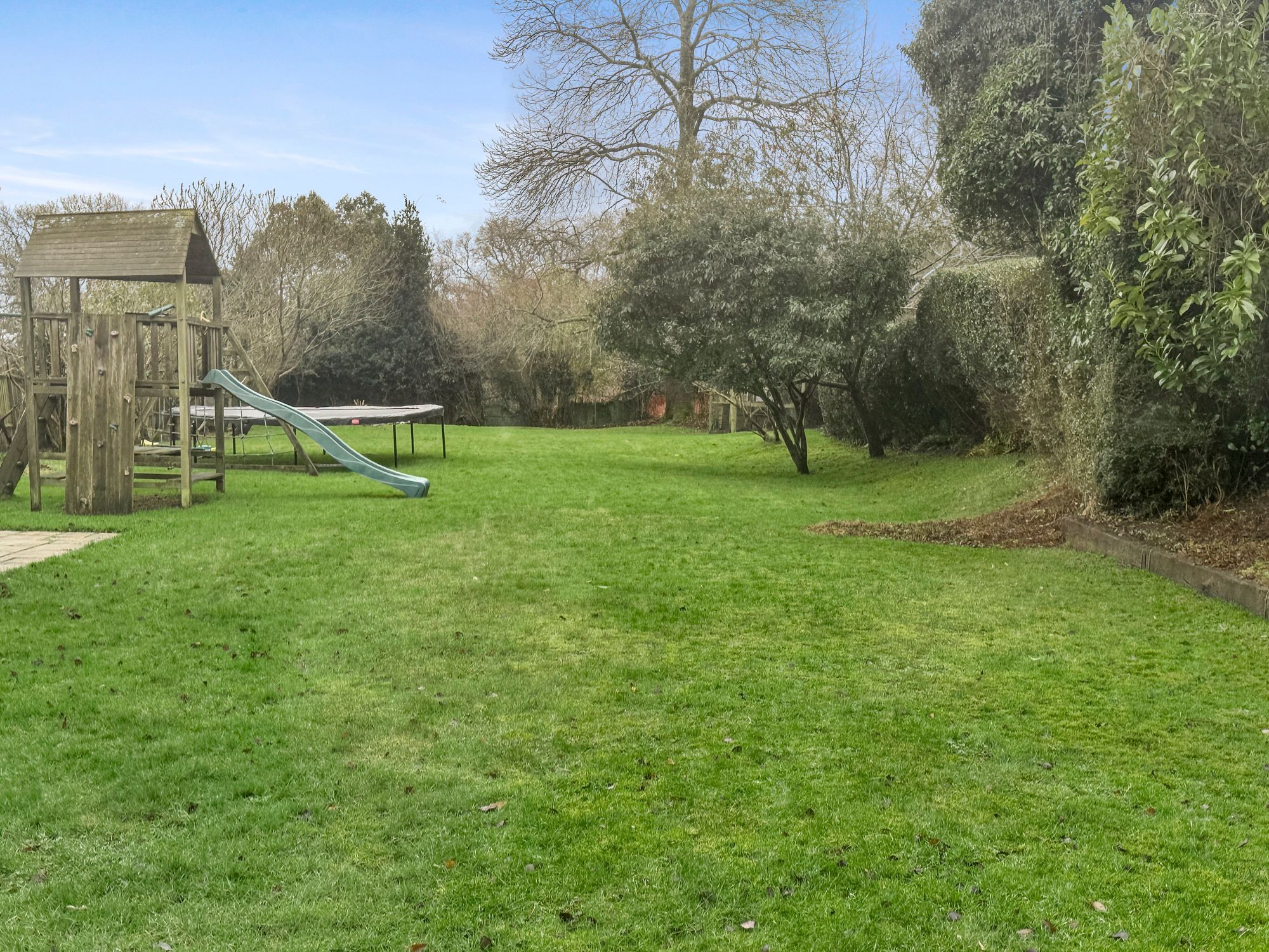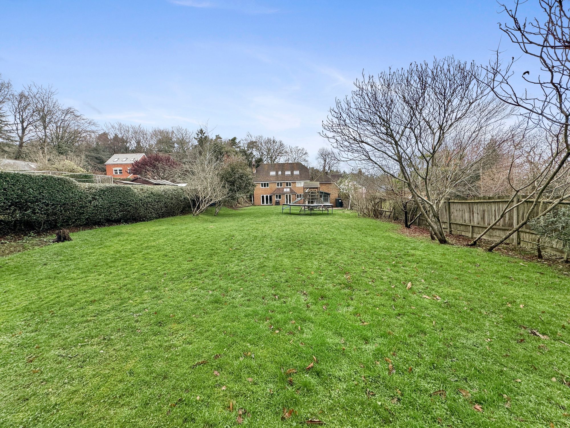 The property is approached via a sweeping driveway which provides space for several vehicles and leads to the detached double garage which has a up and over door, power, lighting and a direct access door to the rear garden. The main garden is predominantly laid to a level lawn and has a selection of beds and borders which are well stocked with mature shrubs and hedging providing superb degrees of privacy.