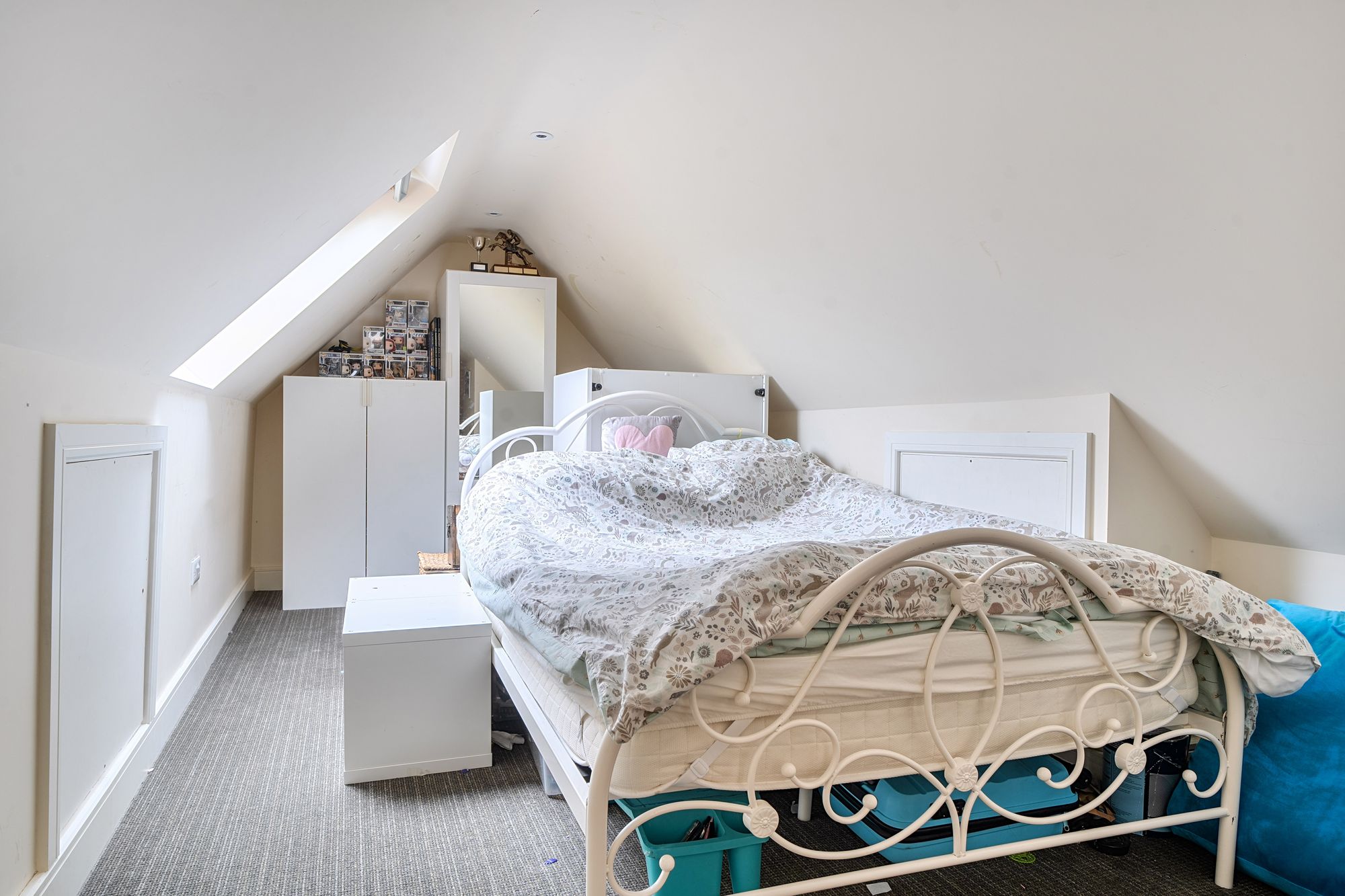 There are three bedrooms on the first floor, including a well-proportioned principal room with en-suite facilities and dressing area, alongside a further double bedroom and a smaller room suited to use as a study, nursery or guest bedroom. A modern family bathroom completes this level. The top floor has been converted to create an additional double bedroom, complemented by a separate adjoining room, offering versatility as a dressing area or home office.