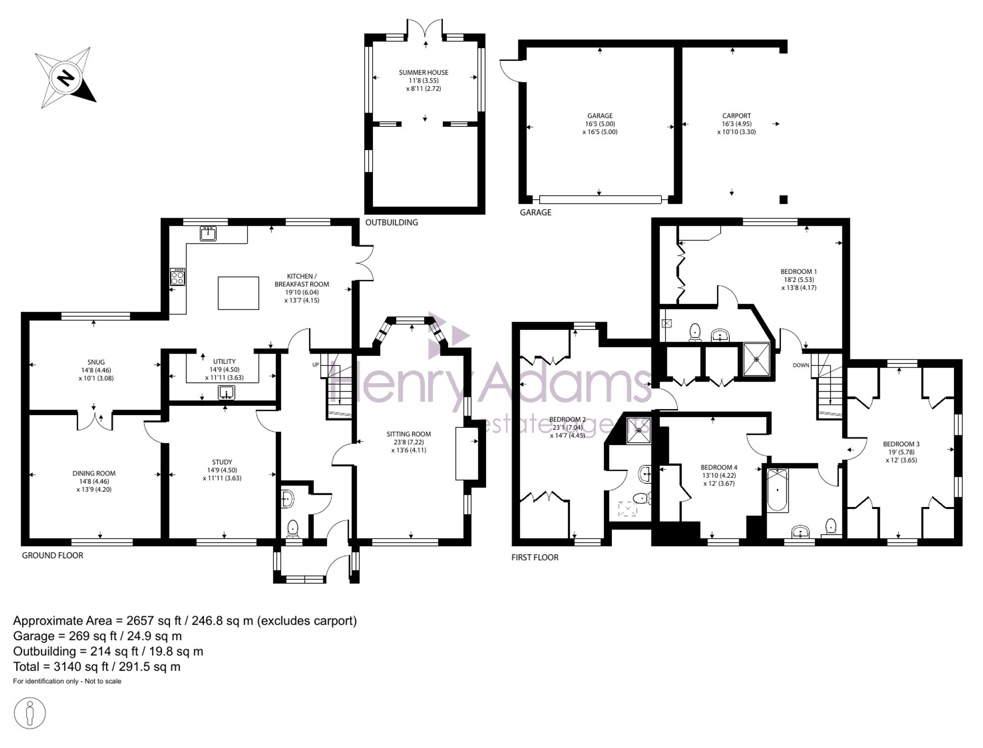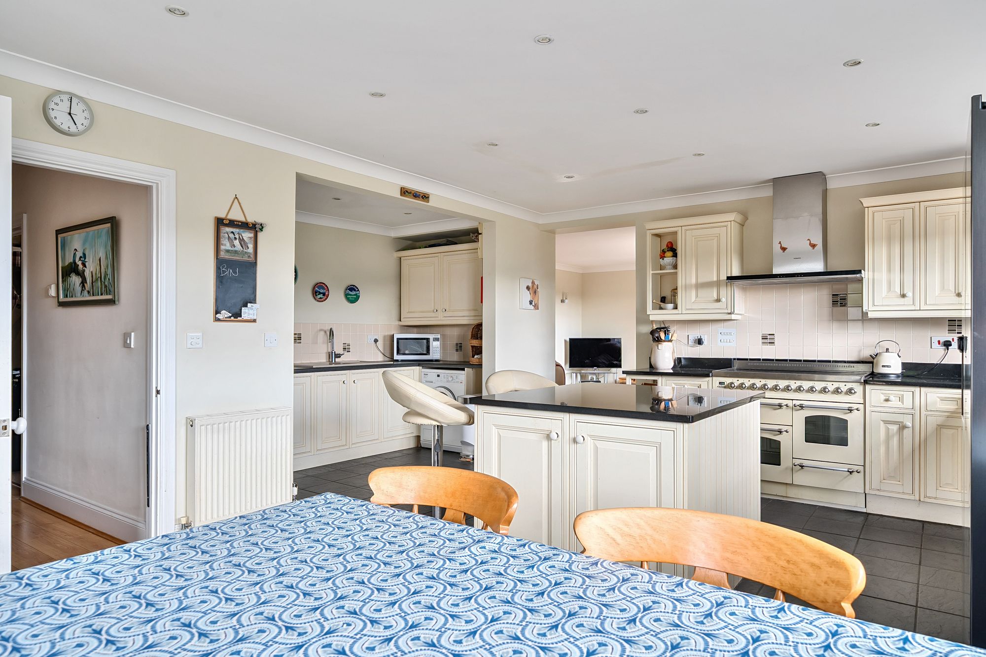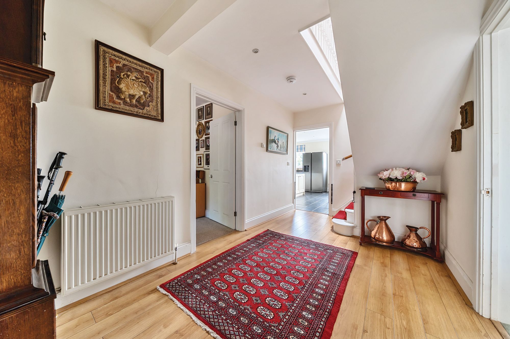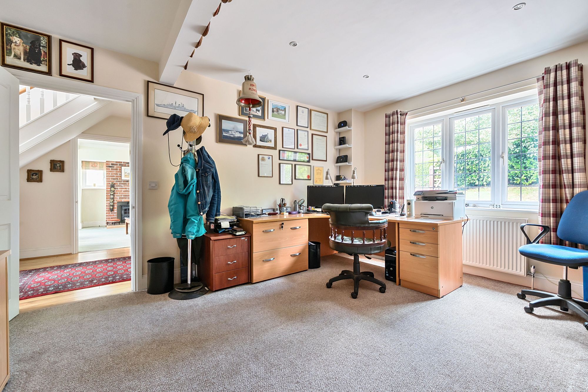 On entering the property there is an entrance porch / boot room leading into the main entrance hall which also includes a cloakroom. The heart of the home, the kitchen, is designed for family living with wonderful views out to the South Downs. The kitchen which includes a utility area has extensive storage and a central island unit. A range style cooker with induction hob and dishwasher match the storage units leaving ample space for a fridge freezer, and room for a large breakfast table. The triple aspect sitting room features a multi-fuel burner. Additionally, the property includes a dining room and a snug / family room for unwinding. The large study is conveniently located close to the front door and overlooking the driveway.