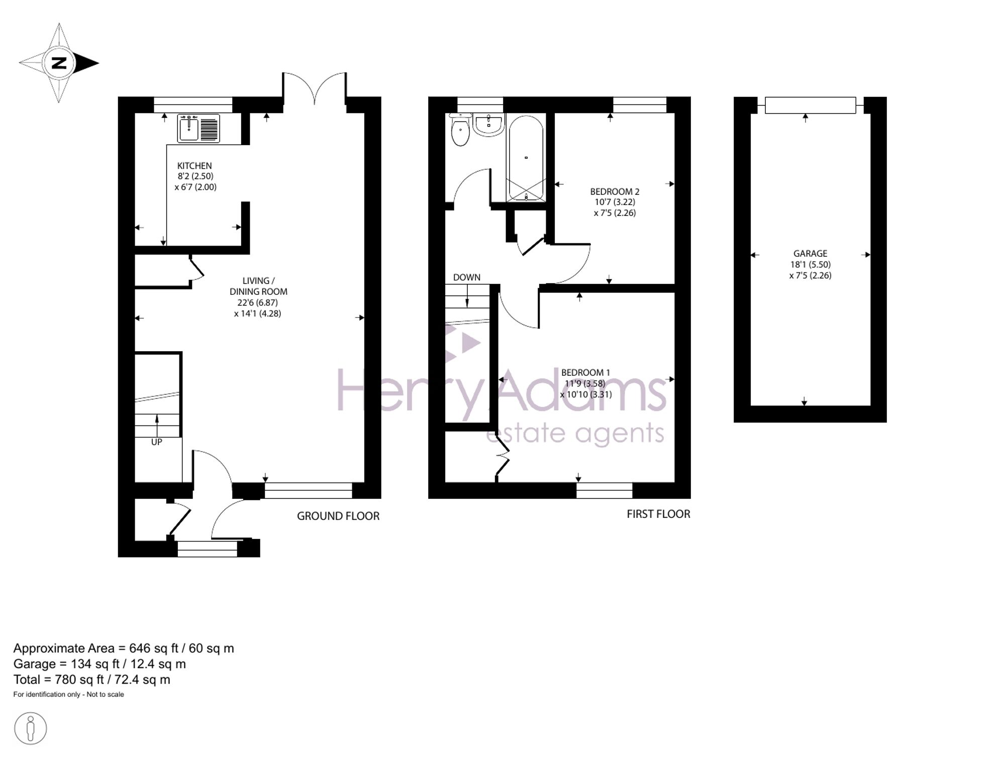 Situated in a cul-de-sac location, this end terraced house offers an appealing combination of privacy and convenience. The property is set back from the roadside, affording attractive views over a green to the front, and features two bedrooms - 1 double and 1 single. The ground floor comprises a welcoming living/dining room and a kitchen. A particular highlight of this home is its larger than average rear garden which extends to the side, which provides ample room for relaxation and outdoor entertaining (a rare benefit for this style of property). The house also benefits from a garage, located in a nearby block with parking space adjacent and accessible via a pathway from the rear garden, providing parking or additional storage. This property would suit a range of buyers, including first-time purchasers, downsizers, or investors seeking a home in a quiet residential location.