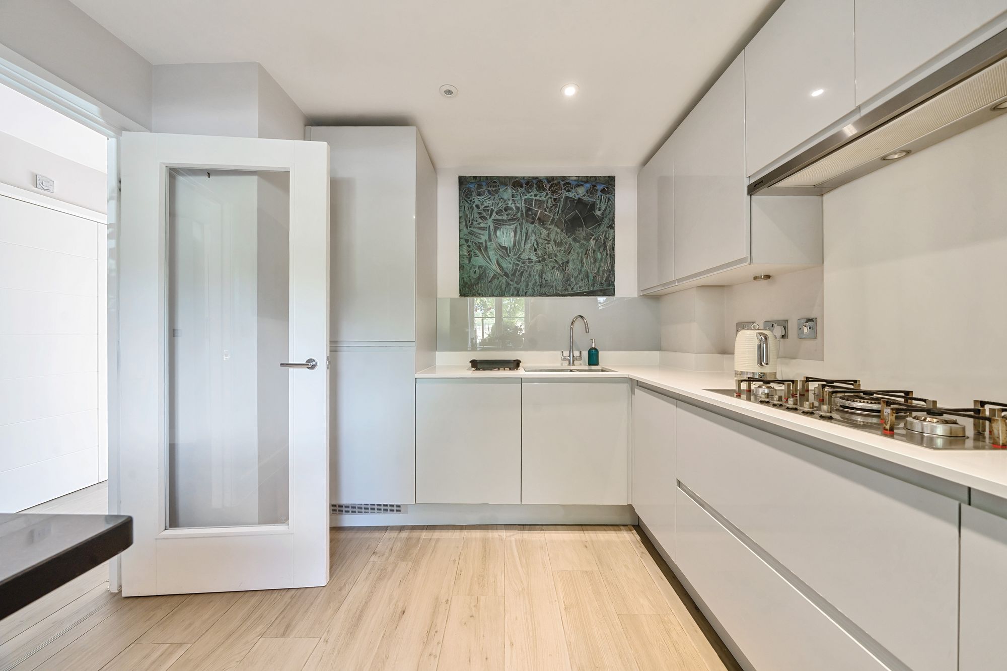 Immaculately presented throughout, the ground floor features a bespoke designer kitchen, fully fitted with high-end appliances including an integrated Smeg fridge/freezer and dishwasher, a five-ring gas hob, multifunction pyrolytic oven, and separate combination microwave. The bright and spacious living/dining room opens through French doors onto a private terrace, ideal for outdoor entertaining.