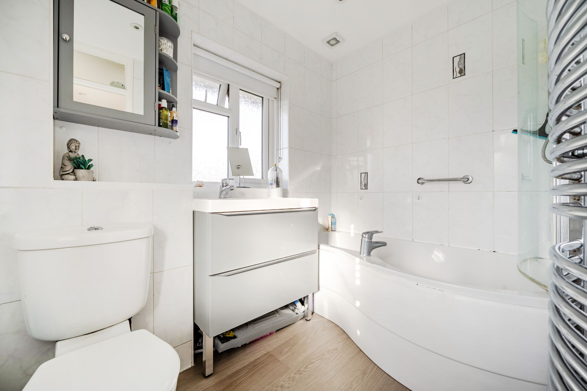 Upstairs, three well-proportioned bedrooms provide calm, private retreats, each with built-in storage, complemented by a modern family bathroom with a bath, shower, and sleek vanity storage.