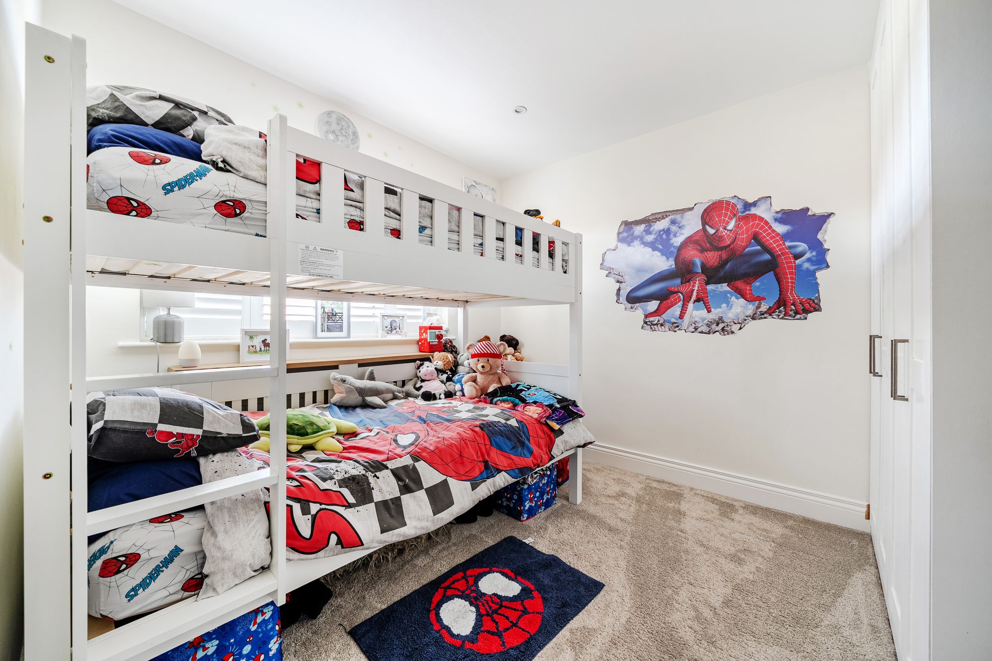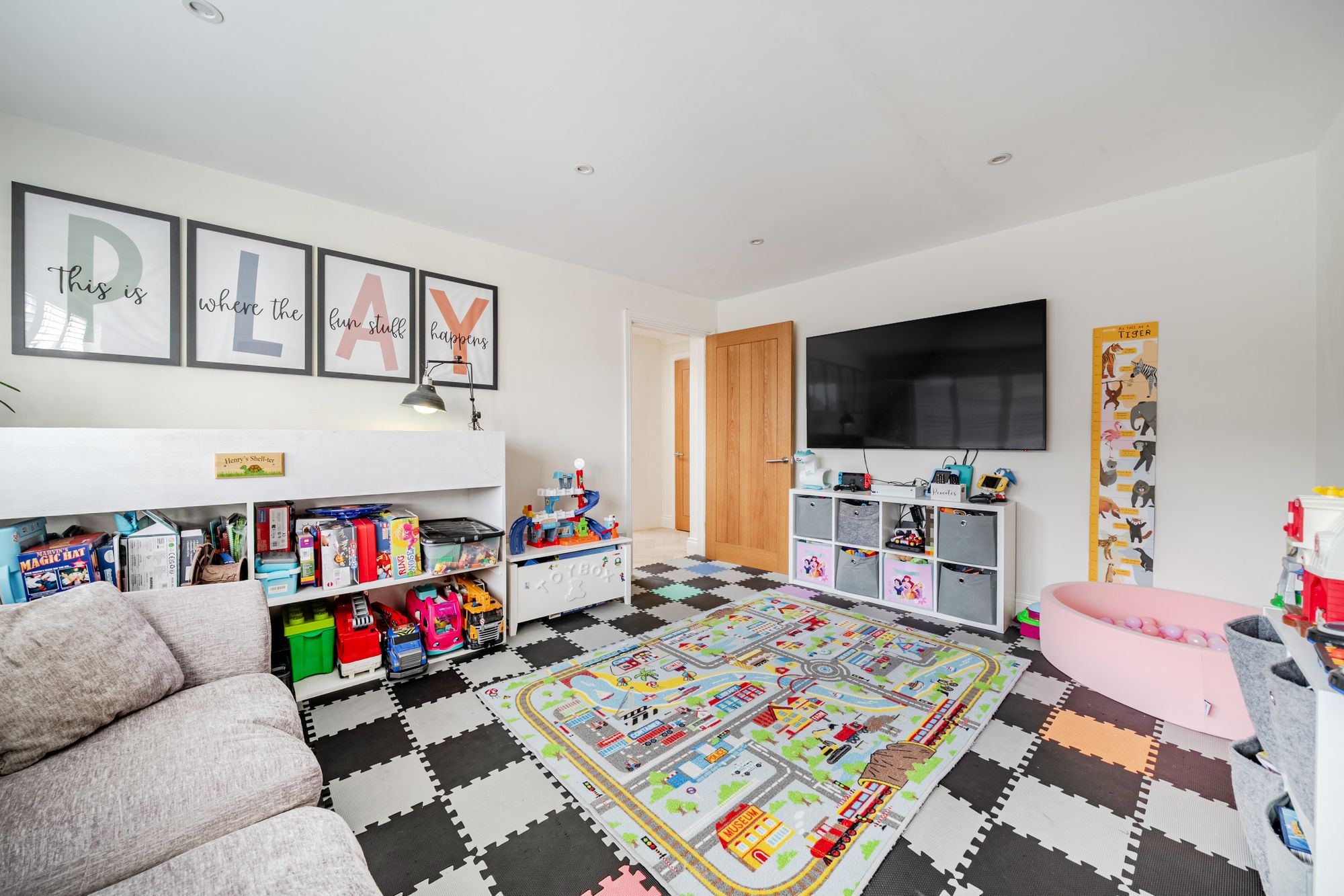 A versatile fourth bedroom could serve as a study, playroom, or home office, while a further ground-floor room, bathed in natural light from a skylight and complemented by fitted wardrobes, offers the perfect space for a home gym, creative studio, or flexible living area.