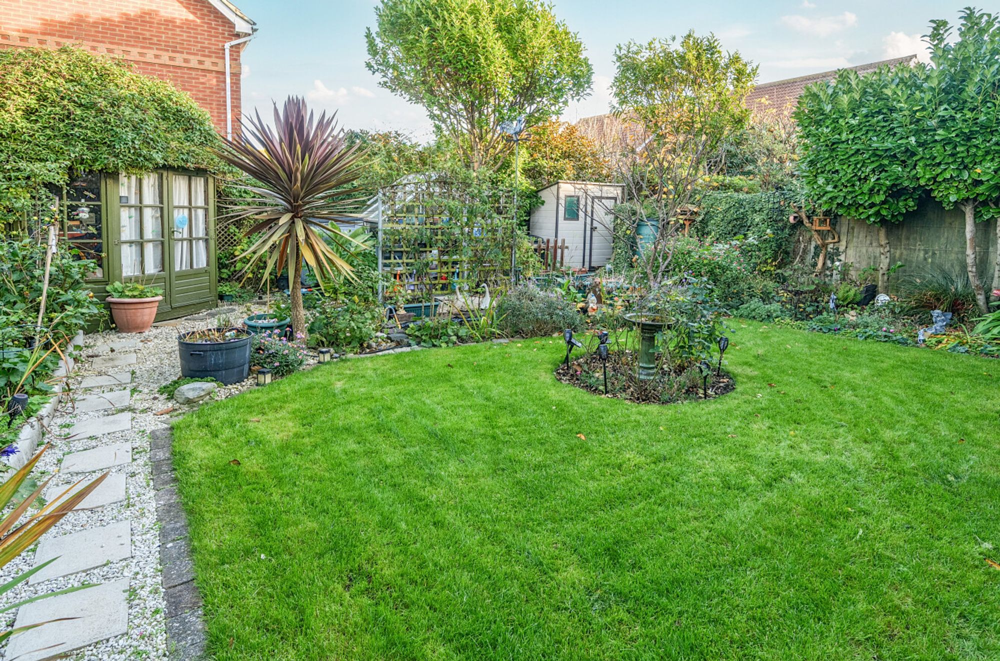 Outside, the property continues to impress with its meticulously maintained outdoor space. The front garden is mainly laid to stone for ease of upkeep, adorned with mature planting and offering side access to the rear garden. The rear garden enjoys an area of lawn complemented by a paved seating spot, surrounded by lush greenery and fruit trees. Additional features include a garden shed, summer house and greenhouse, providing ample space for storage and hobbies. This outdoor oasis also incorporates side access to the front, as well as a door leading directly into the garage, itself equipped with an electric roller door, light and power. The driveway offers convenient off-road parking for two cars.