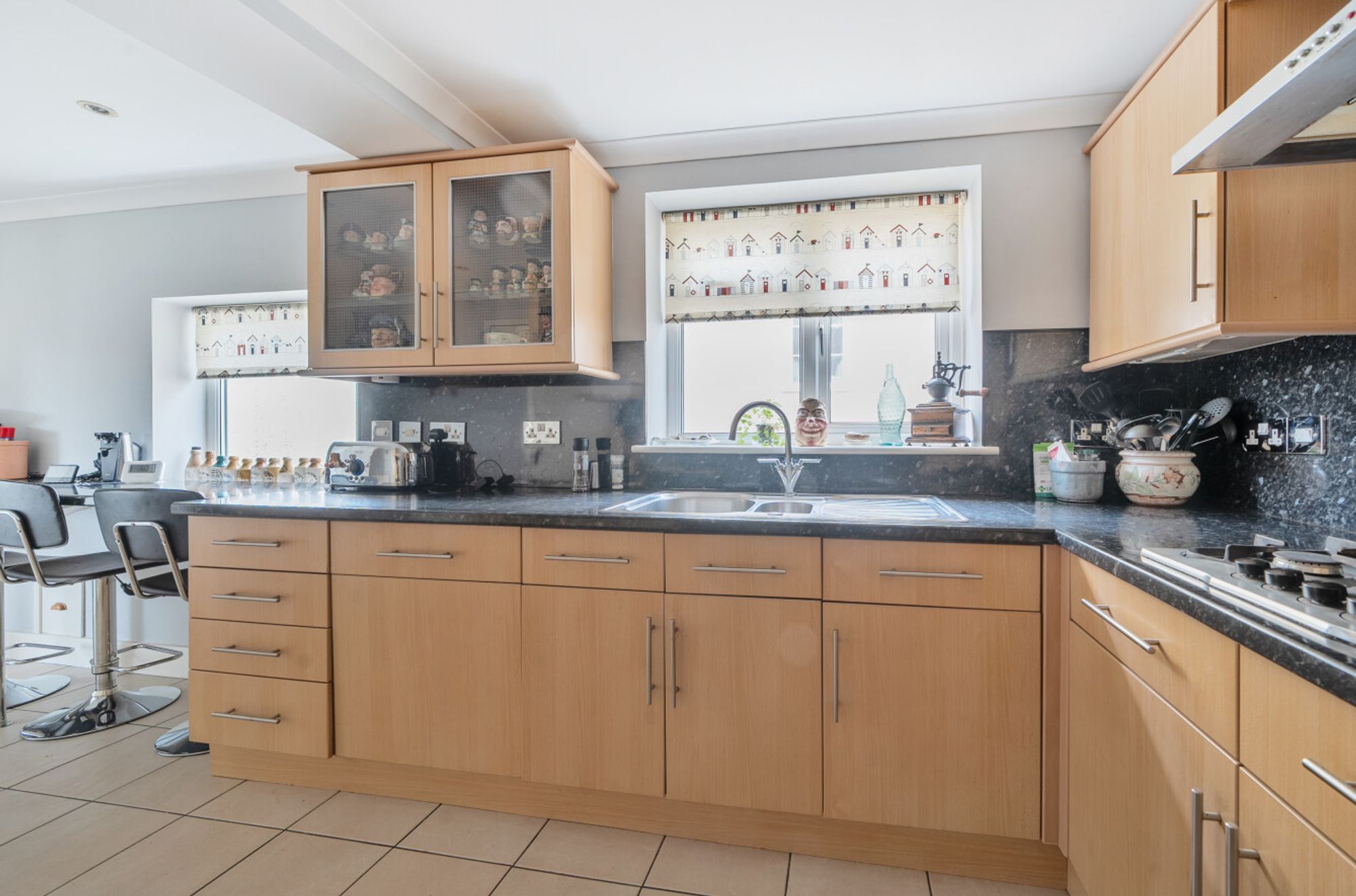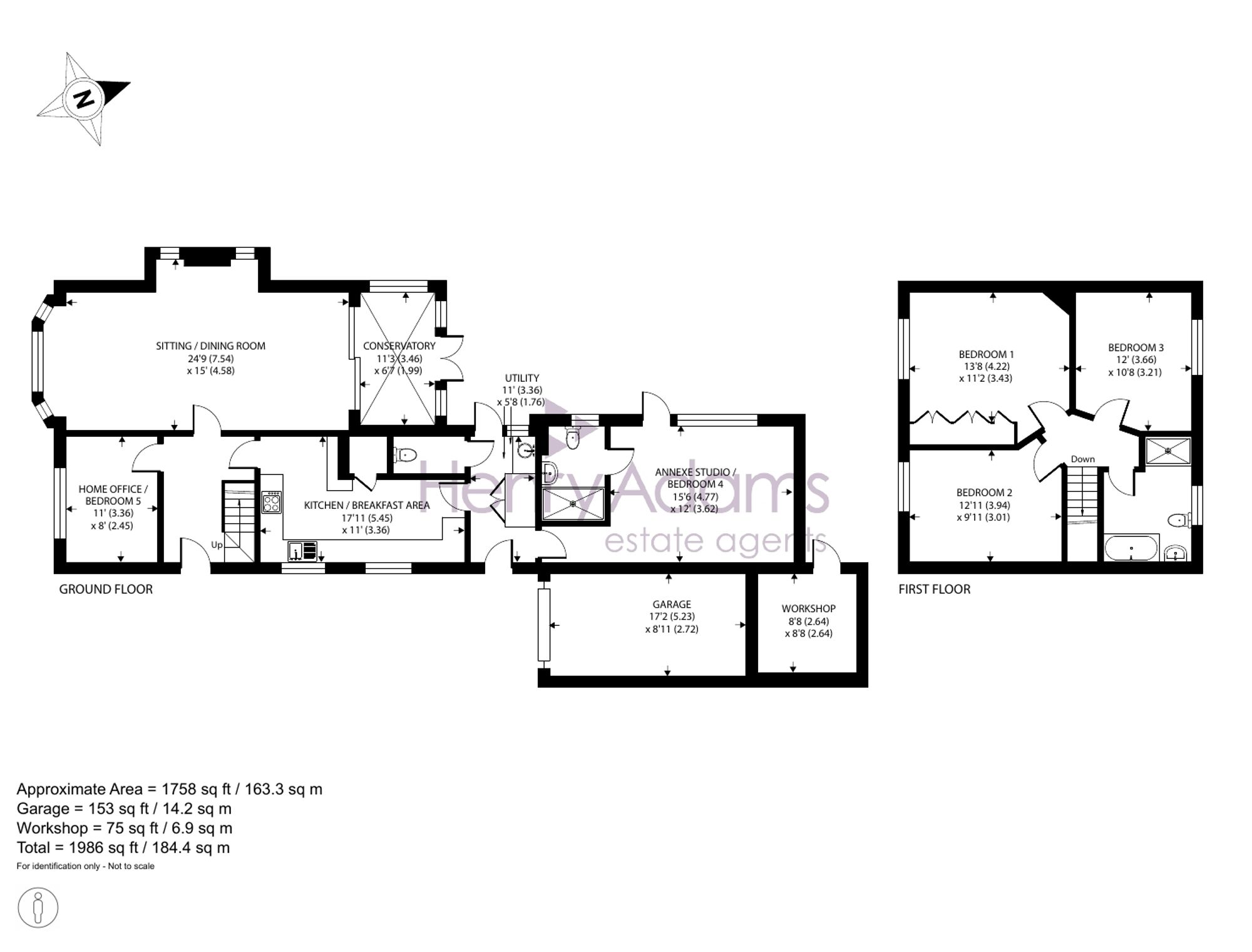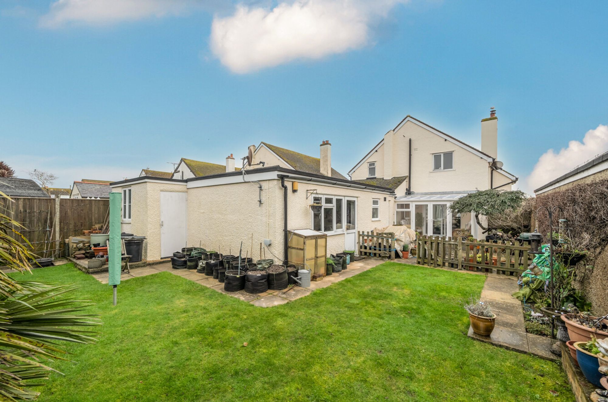Situated just 600 metres from the beach, this deceptively spacious detached house offers a versatile and inviting layout ideal for both family living and entertaining. The property features three well-proportioned 1st floor double bedrooms, along with a ground floor annexe studio room/4th bedroom and the home office also providing the option of a 5th bedroom.