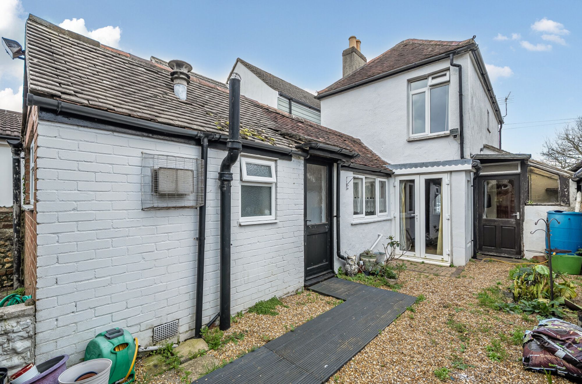 An ideal renovation project, conveniently located just a half a mile level walk from Chichester city centre. This older-style two-double-bedroom attached house is unusually linked only by the entrance hall/side porch.