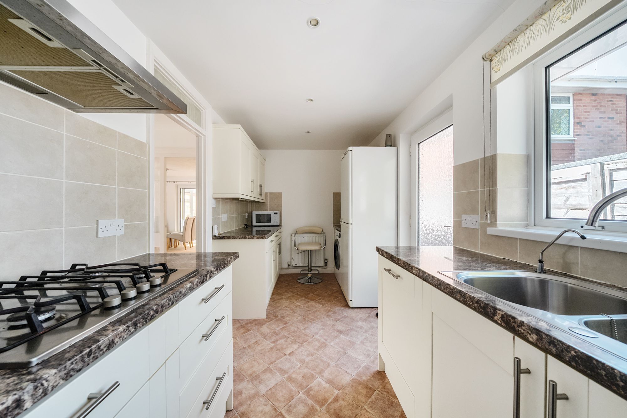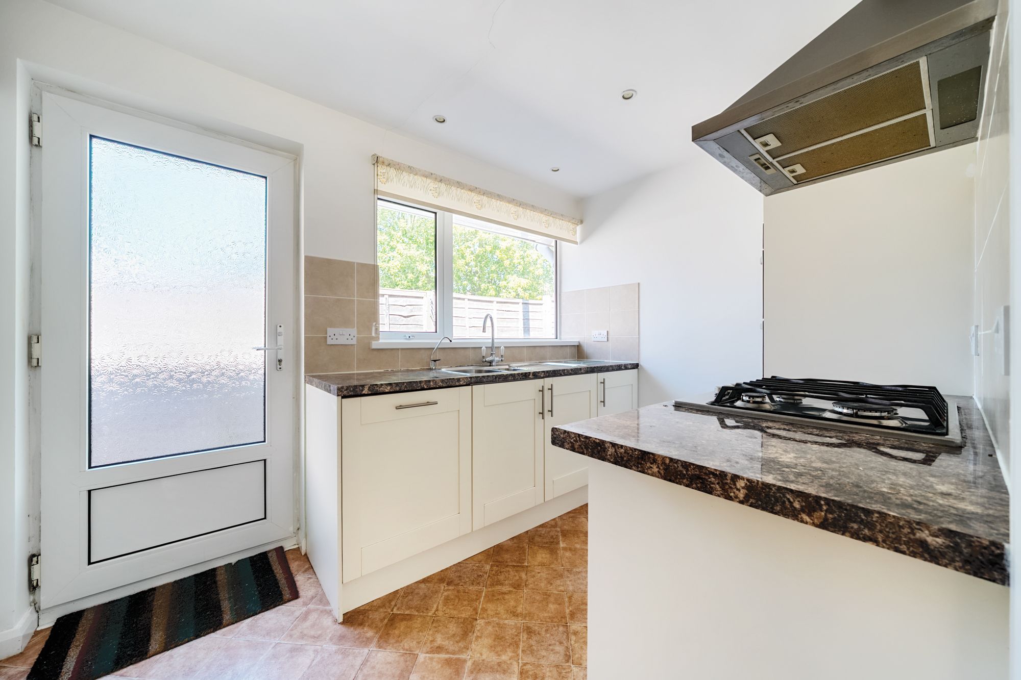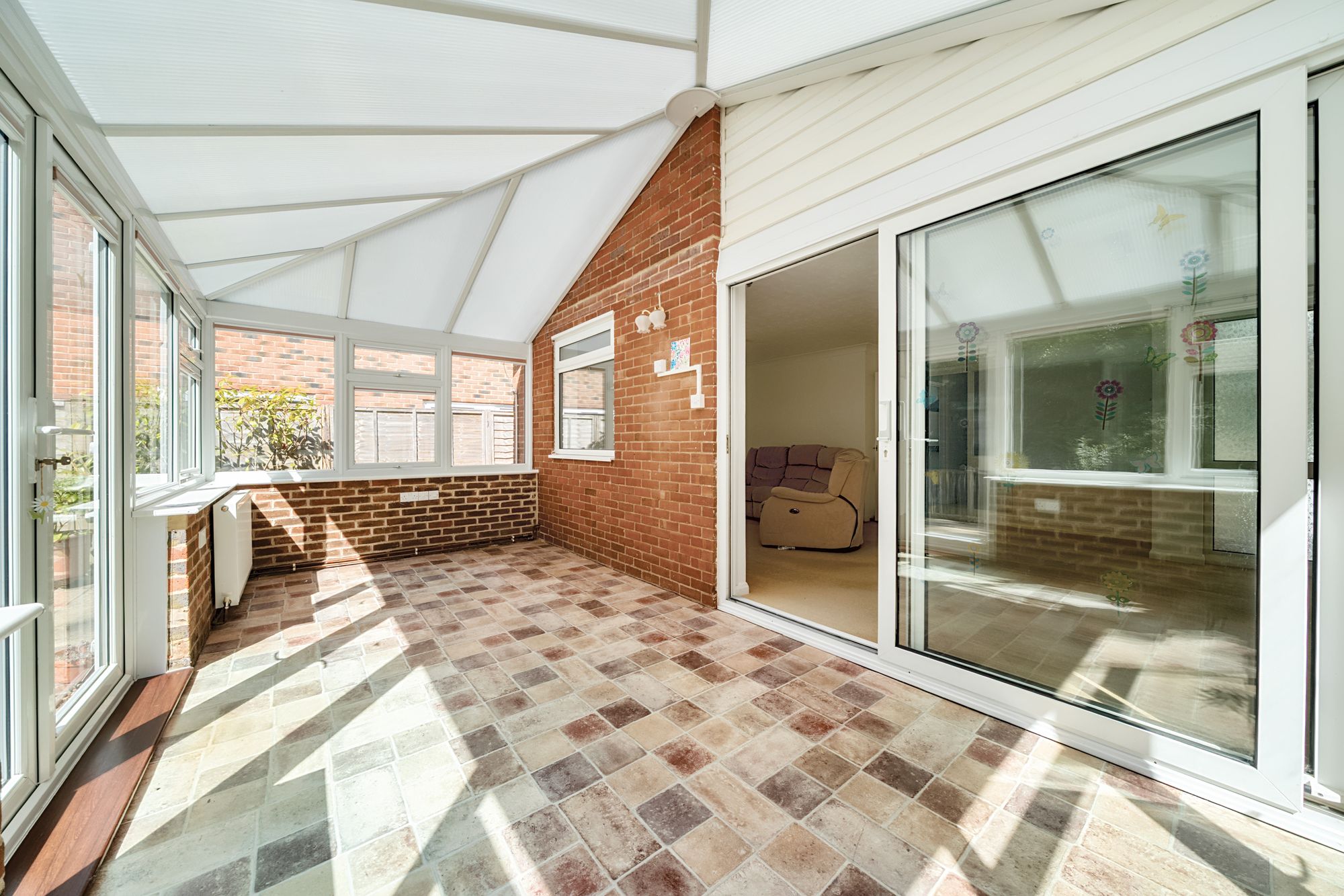 Upon entering, there is a useful porch and the entrance hall leads to the large sitting room with ample space for a dining table. The adjoining conservatory seamlessly connects indoor and outdoor living, taking full advantage of the southerly aspect. The practical galley style kitchen offers washing machine and fridge freezer space and cupboards to one end, whilst the other end houses the sink, hob, oven and dishwasher with further storage cupboards.