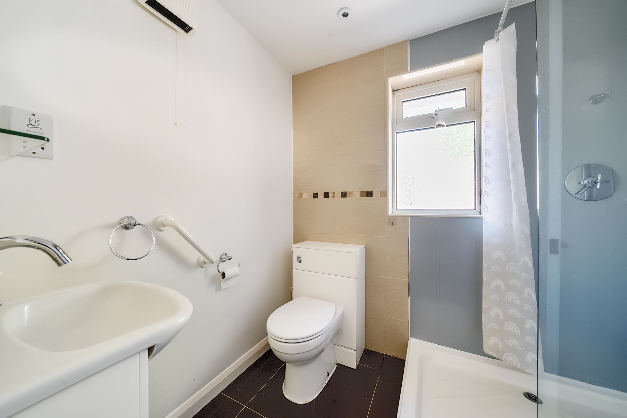 The property benefits from a shower room with underfloor heating and a walk-in shower cubicle. An additional cloakroom has a second toilet, basin and storage cupboard. Two double bedrooms are located at the front of the property, with the main bedroom boasting a large built-in wardrobe. An additional bedroom, versatile as a study, comes with further built-in storage.