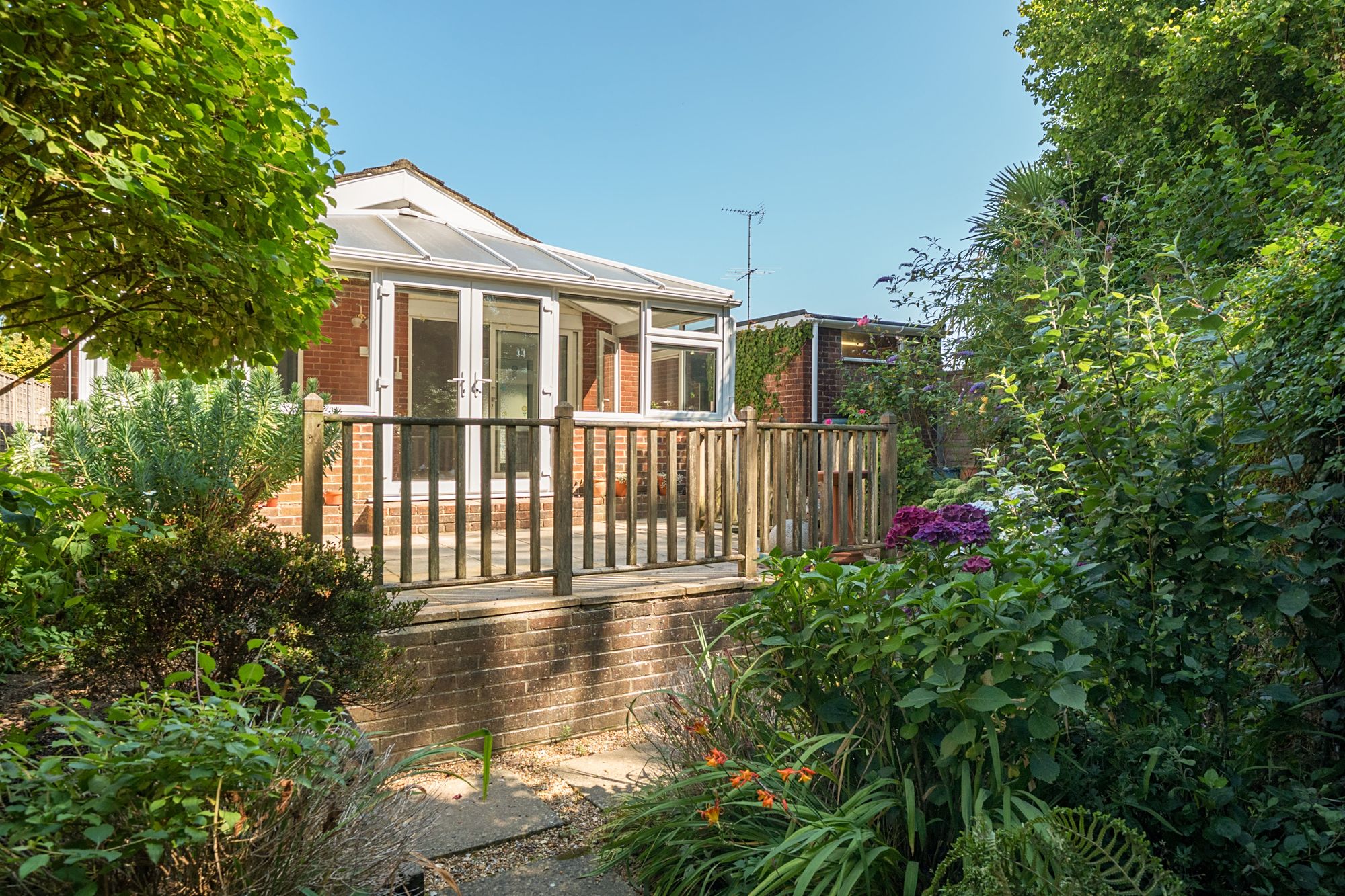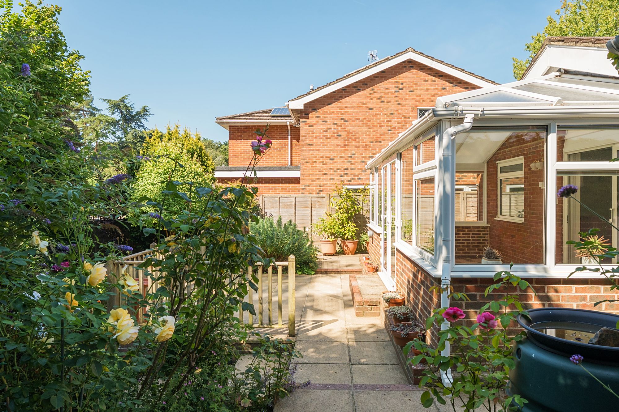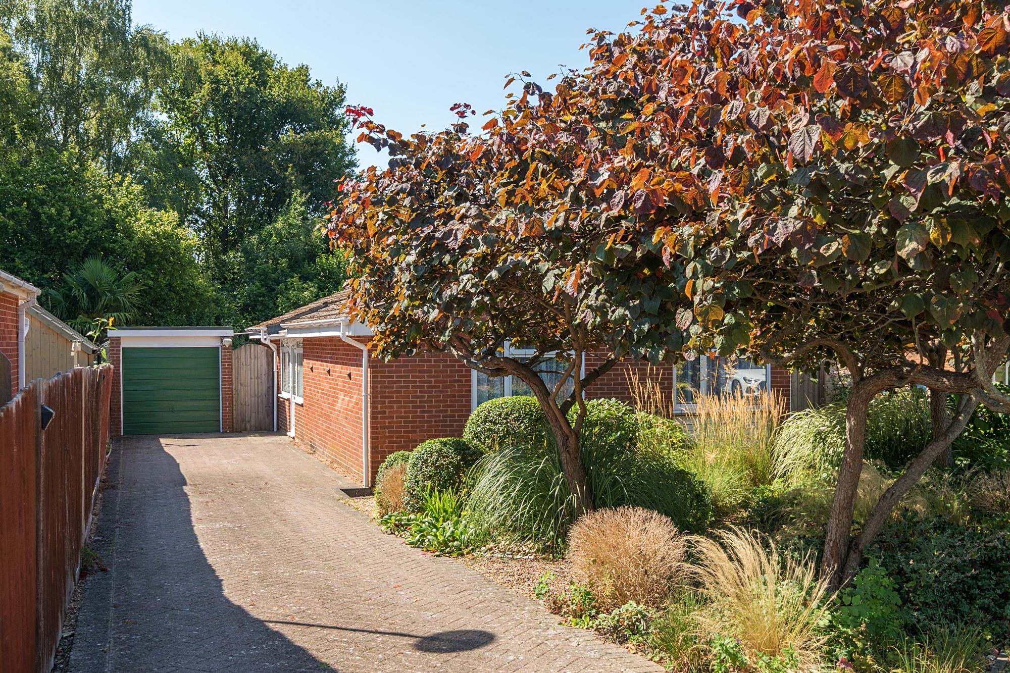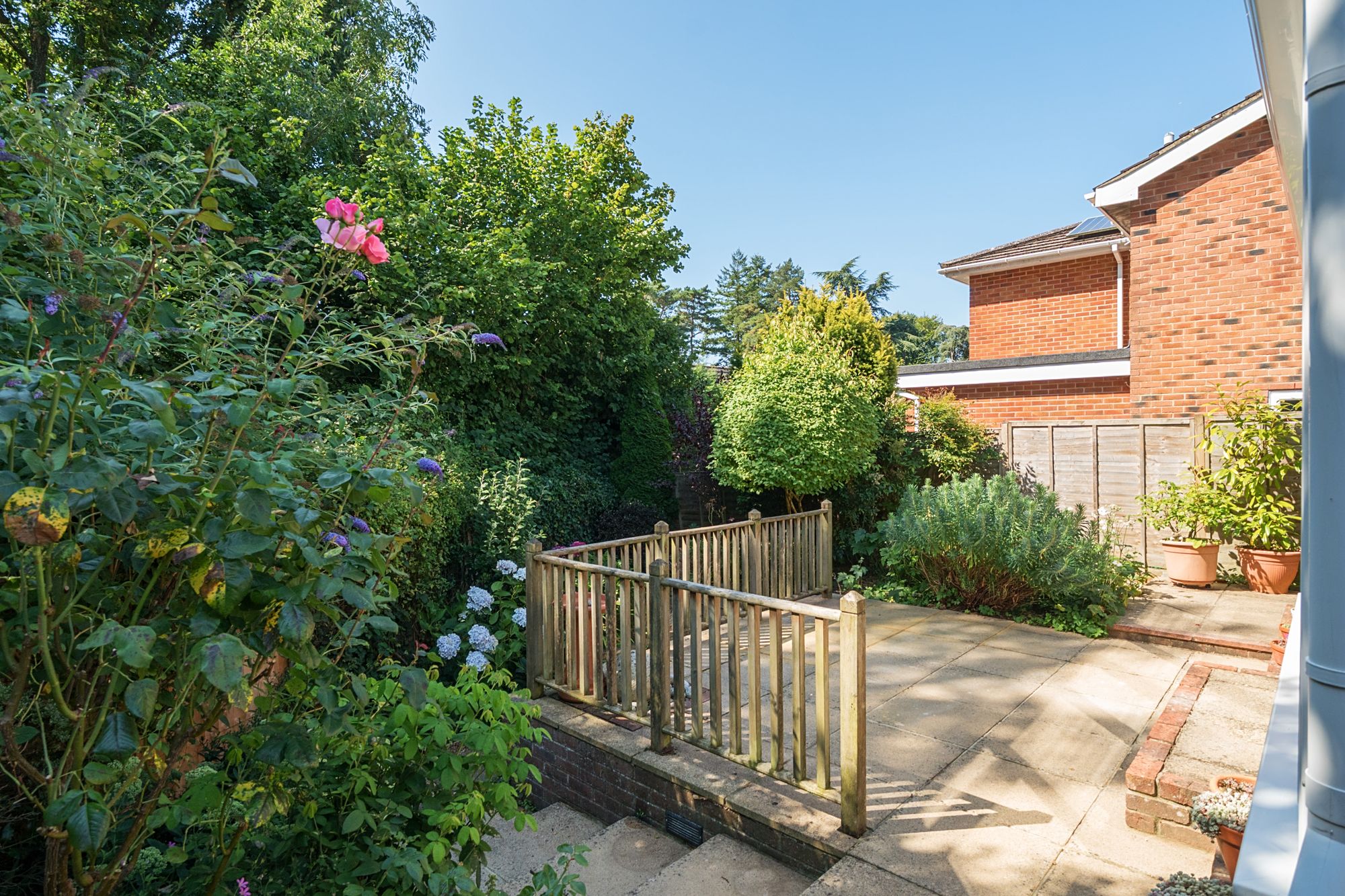 The bungalow has very attractive landscaped gardens to both the front and rear with the front garden having divided beds and gravel pathways alongside a 75-foot driveway leading to the detached single garage. The south facing rear garden has been landscaped to provide a lovely raised patio leading from the conservatory with a lower section of garden beyond offering a shaded spot to sit under the trees as well as a good level of privacy. Backing onto The Glade, a two-acre area of protected woodland, gives this bungalow a delightful natural backdrop. This property is offered with no forward chain, streamlining the purchasing process for prospective buyers.