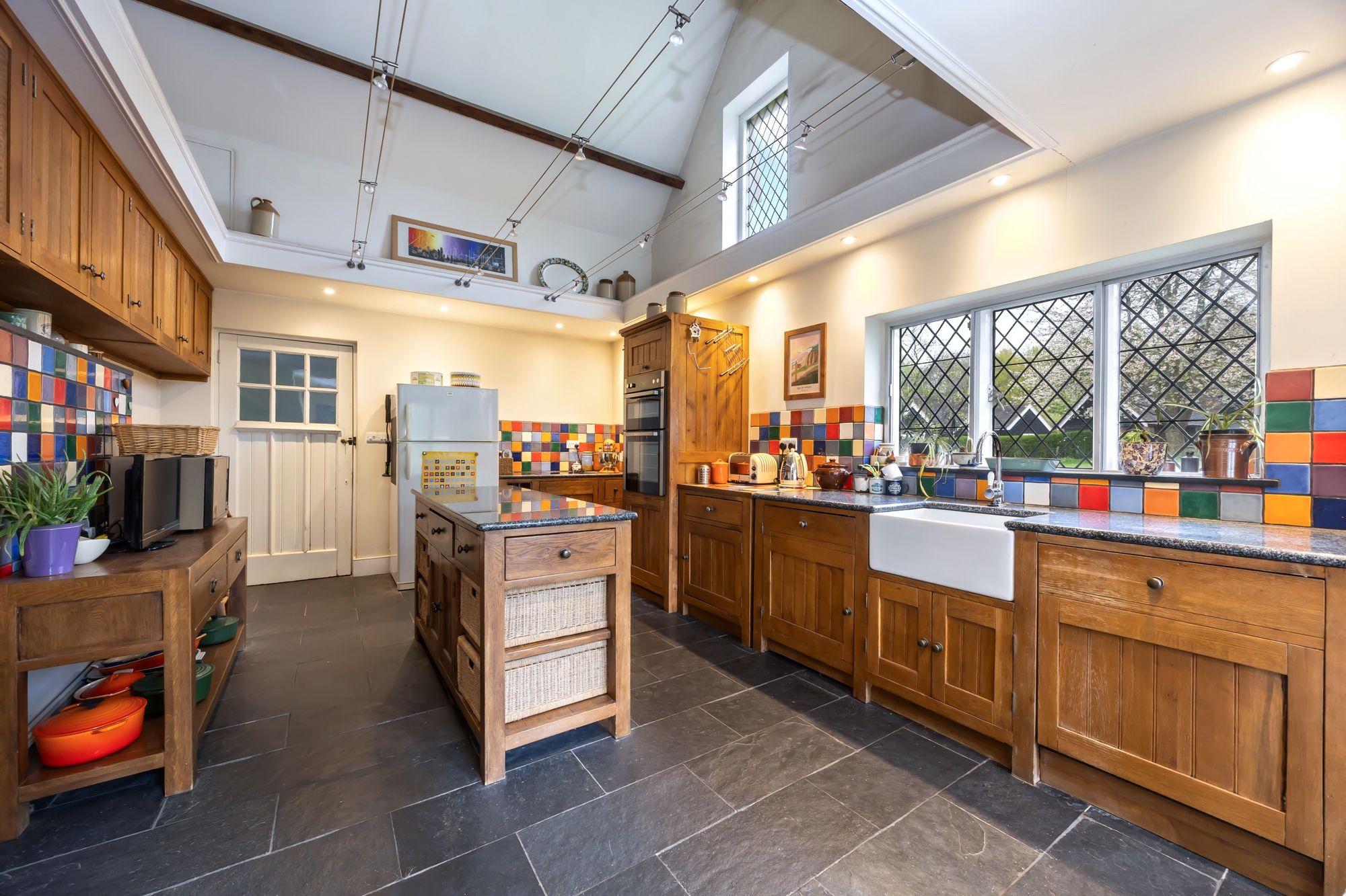 Situated in grounds approaching 2.5 acres is this delightful property that originates from the 1600’s. The main house offers five bedrooms, and five reception rooms approaching 2,917 square foot of accommodation with stunning period features and Horsham stone roof. There are further outbuildings and an annex giving a generous total of 4,892 square foot of accommodation.