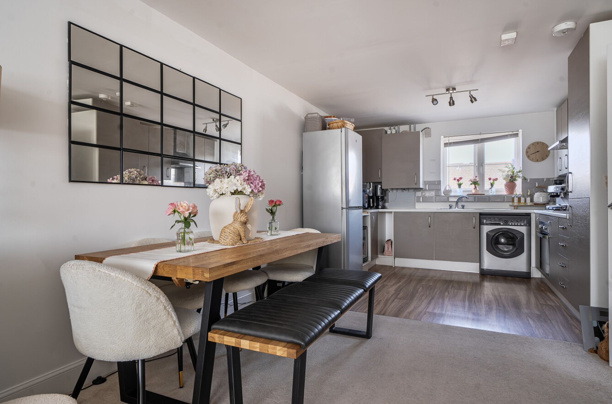 This smartly presented first-floor apartment offers bright, modern living within a small purpose-built block of just six homes. Perfectly positioned in a sought-after village location, it enjoys an attractive outlook over a central greensward, creating a peaceful and welcoming setting.