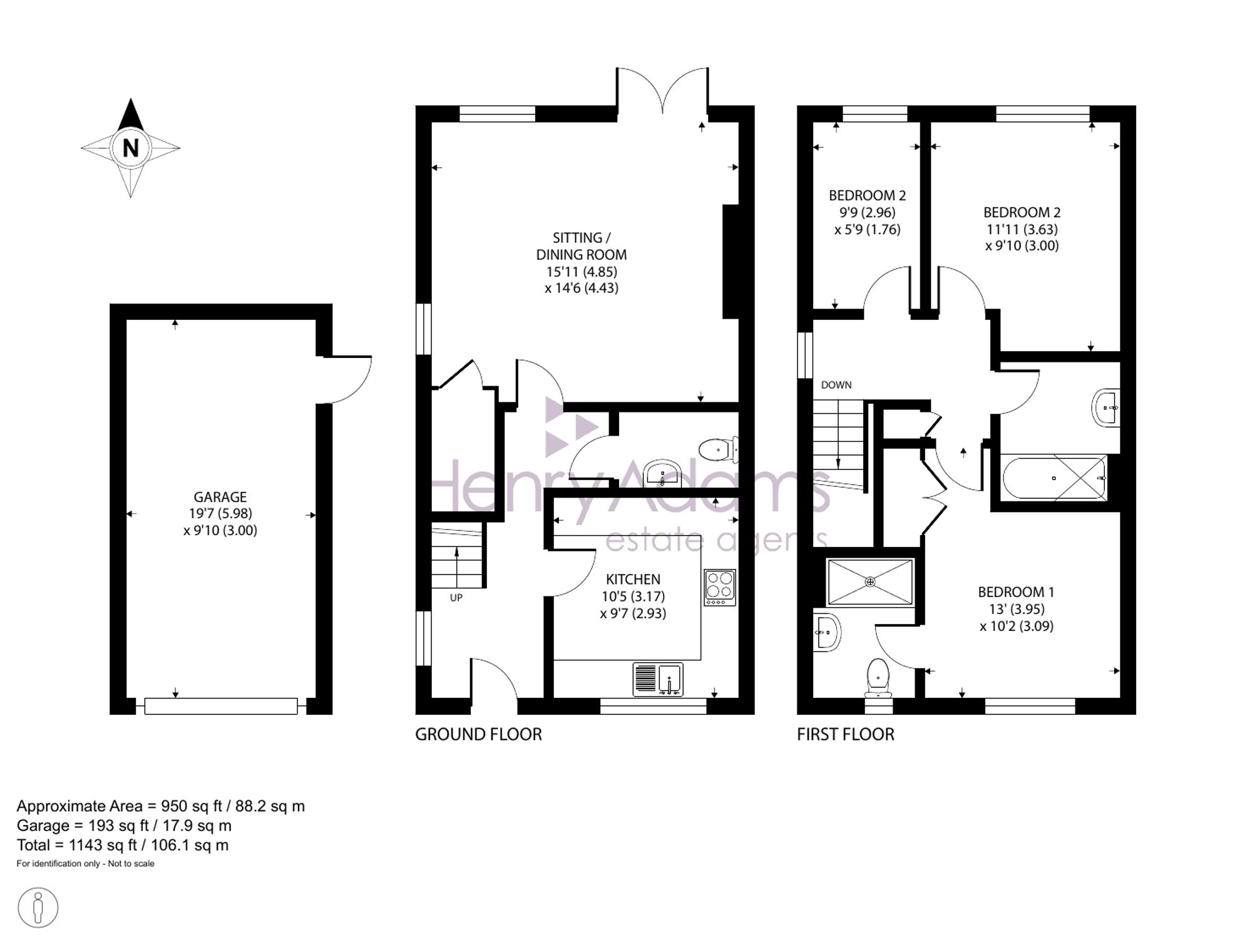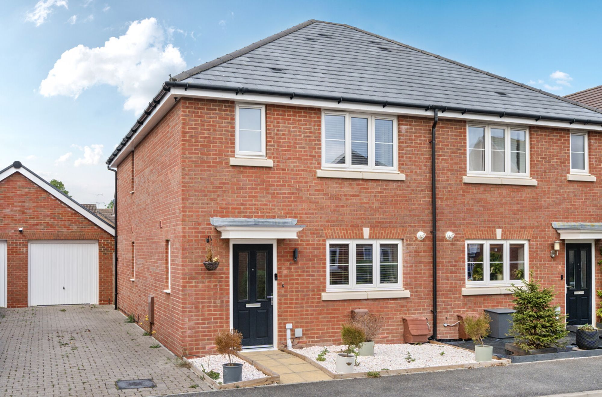 This three bedroom semi-detached home features an inviting entrance hall with a cloakroom and access to both the sitting room and a stylish, contemporary fitted kitchen. The kitchen boasts an excellent range of storage cupboards and drawers, along with integrated Zanussi appliances including a double electric oven, gas hob with extractor hood, dishwasher and a larder-style fridge/freezer. (Please note: the Quooker tap and water softener are not included in the sale.) The spacious, double aspect sitting room enjoys plenty of natural light and offers direct access to the rear garden via French doors. Upstairs, the first floor comprises a principal bedroom with an en-suite shower room, two further bedrooms and a modern family bathroom.