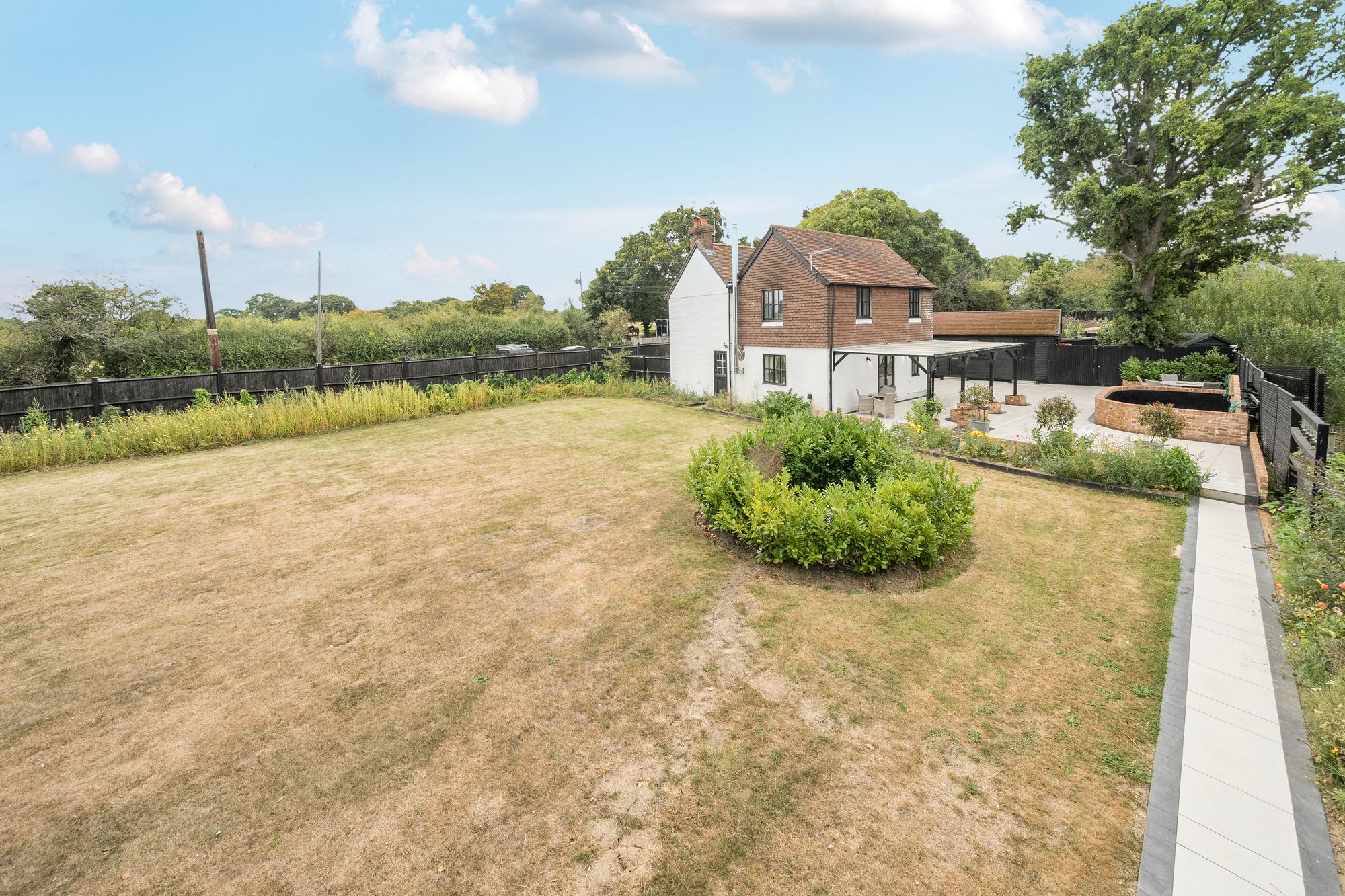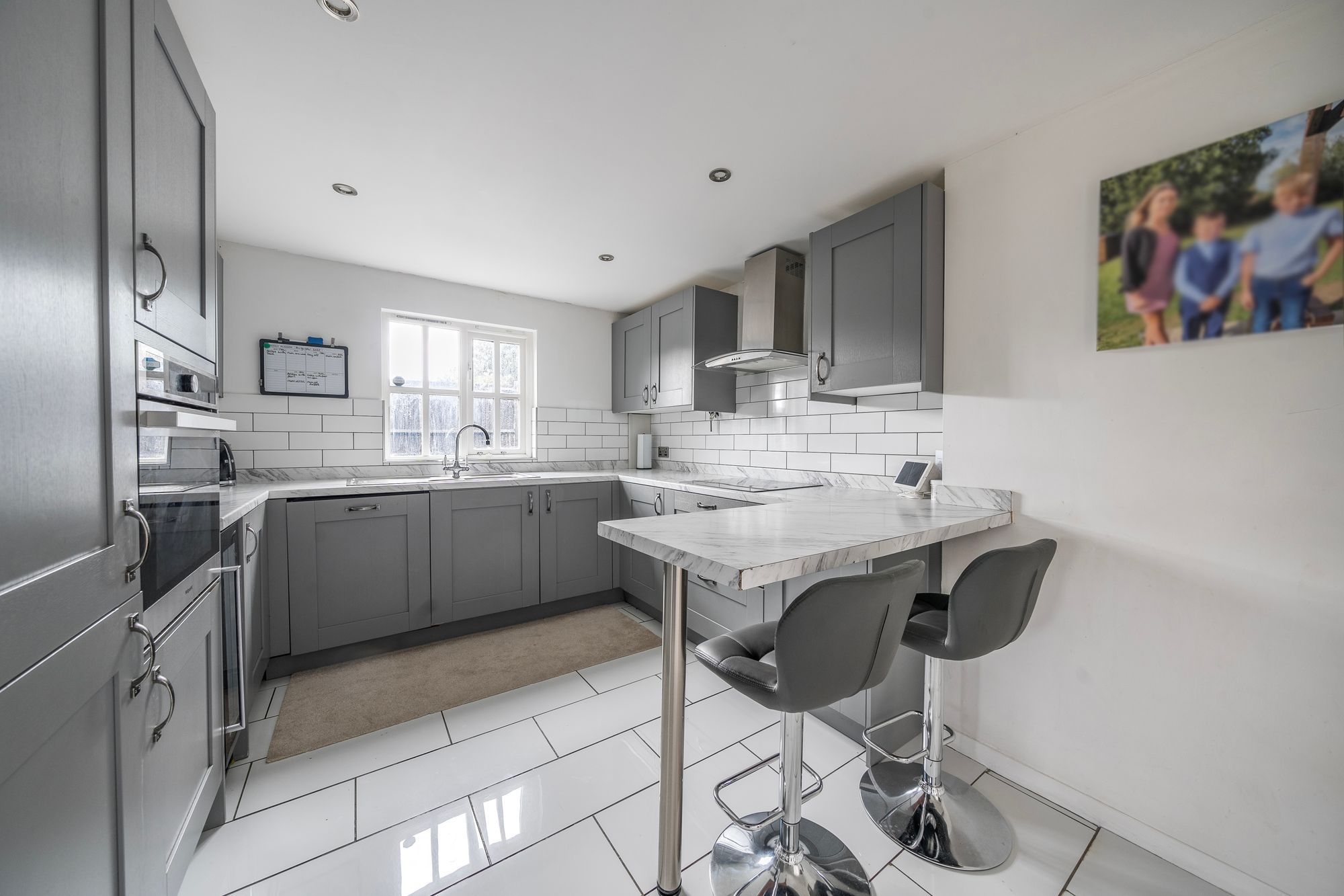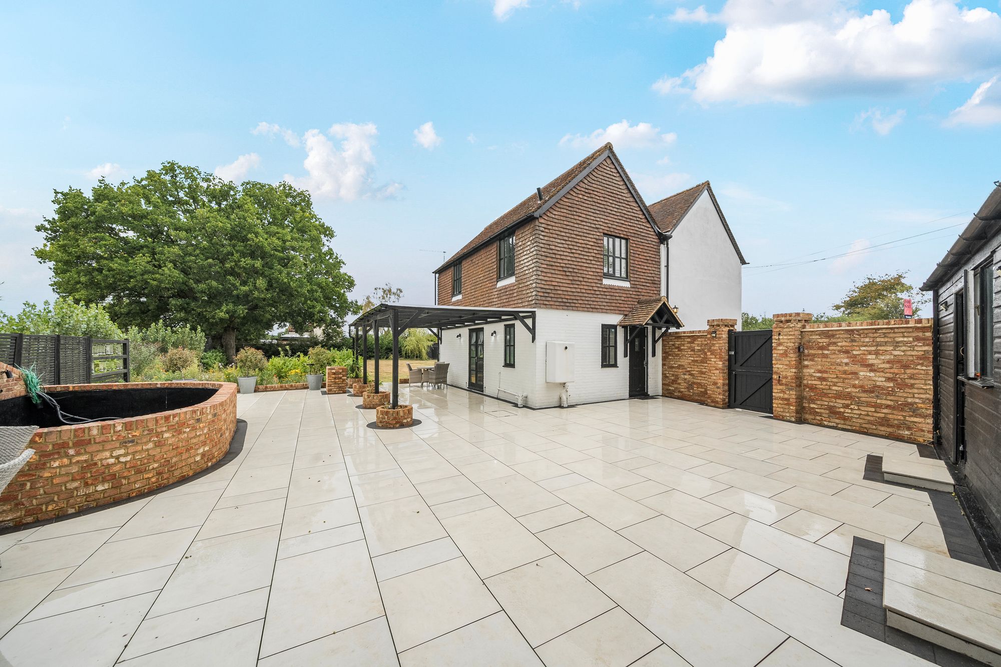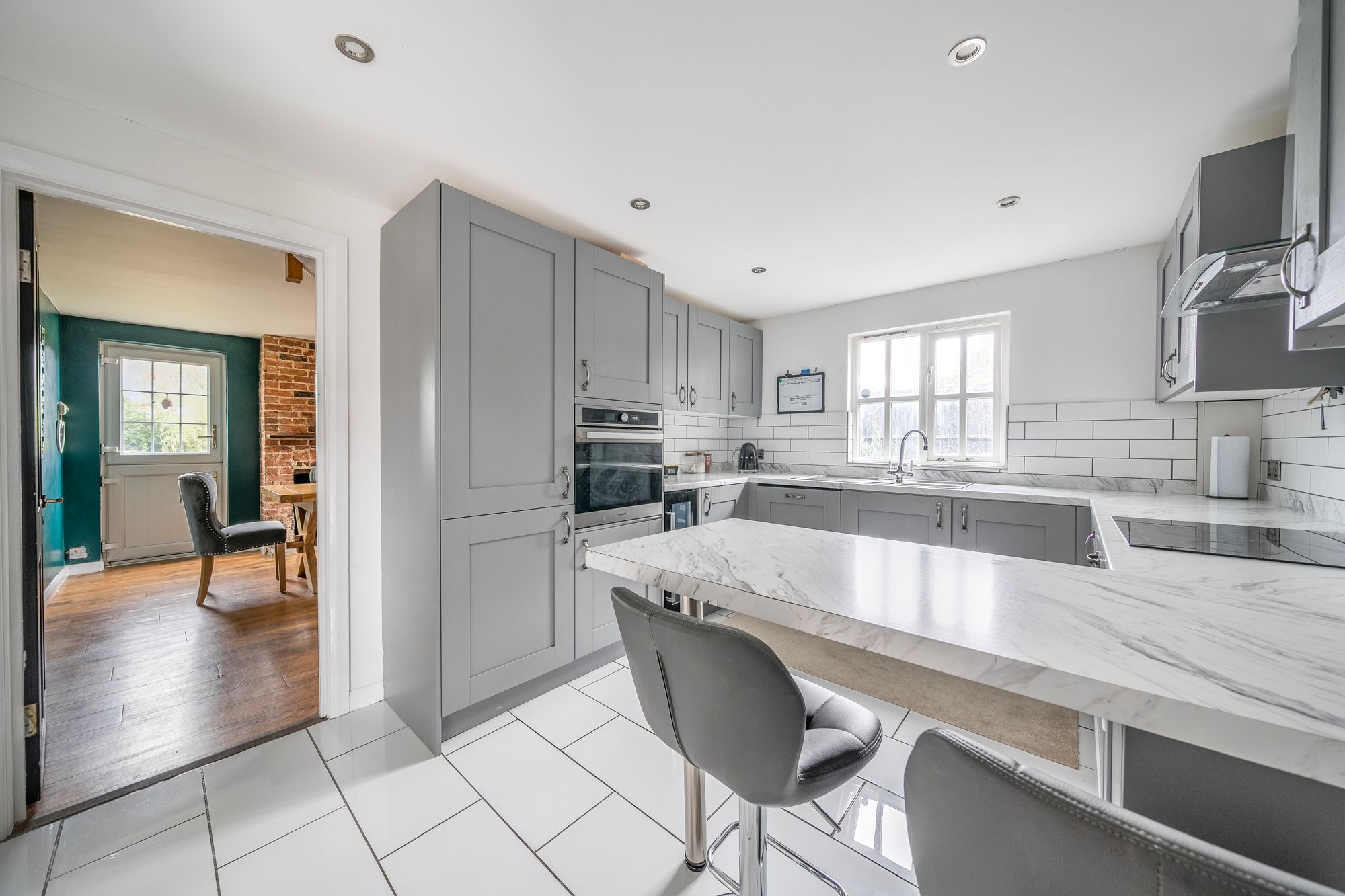 Downstairs, the generous sitting room enjoys French doors opening directly onto the new patio, creating a seamless link to the garden for entertaining. The separate dining room also offers access to the garden, while the contemporary kitchen is fitted with a breakfast bar for casual dining. A ground floor cloakroom completes the accommodation.