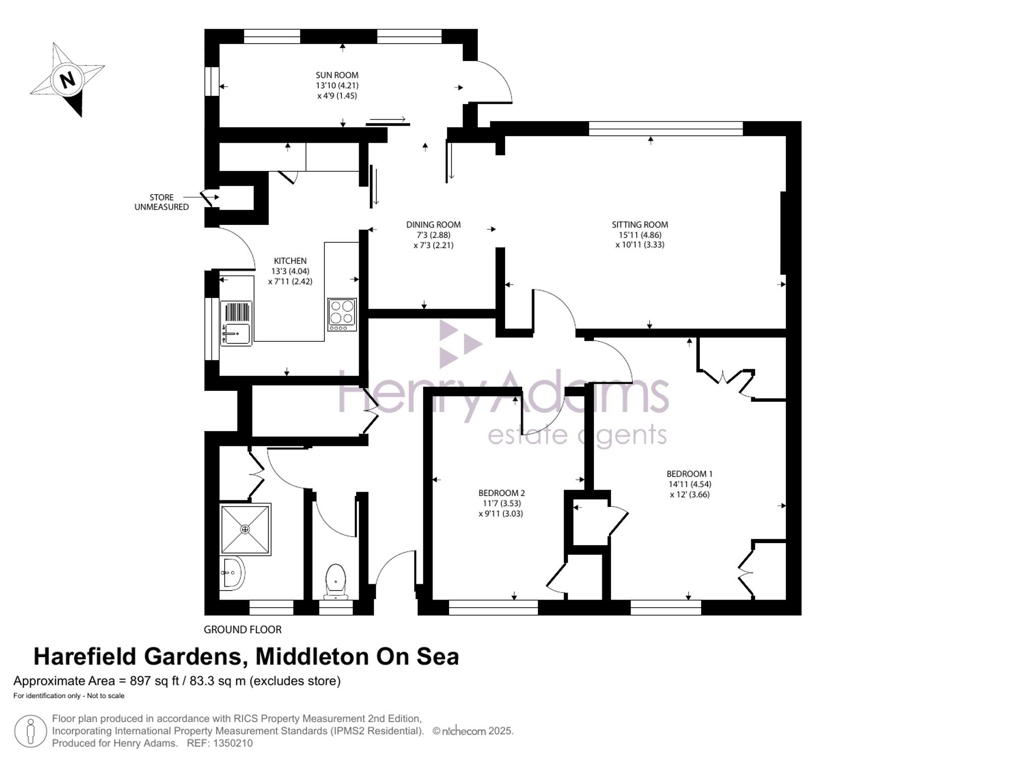 With its convenient ground floor position providing ease of access, this property boasts an impressive 897 sq ft of accommodation, briefly comprising two double bedrooms both with built-in storage, three separate reception areas - sitting room, dining room, and sun room, and all with a southerly aspect providing plenty of light. The kitchen and shower room complete the accommodation.