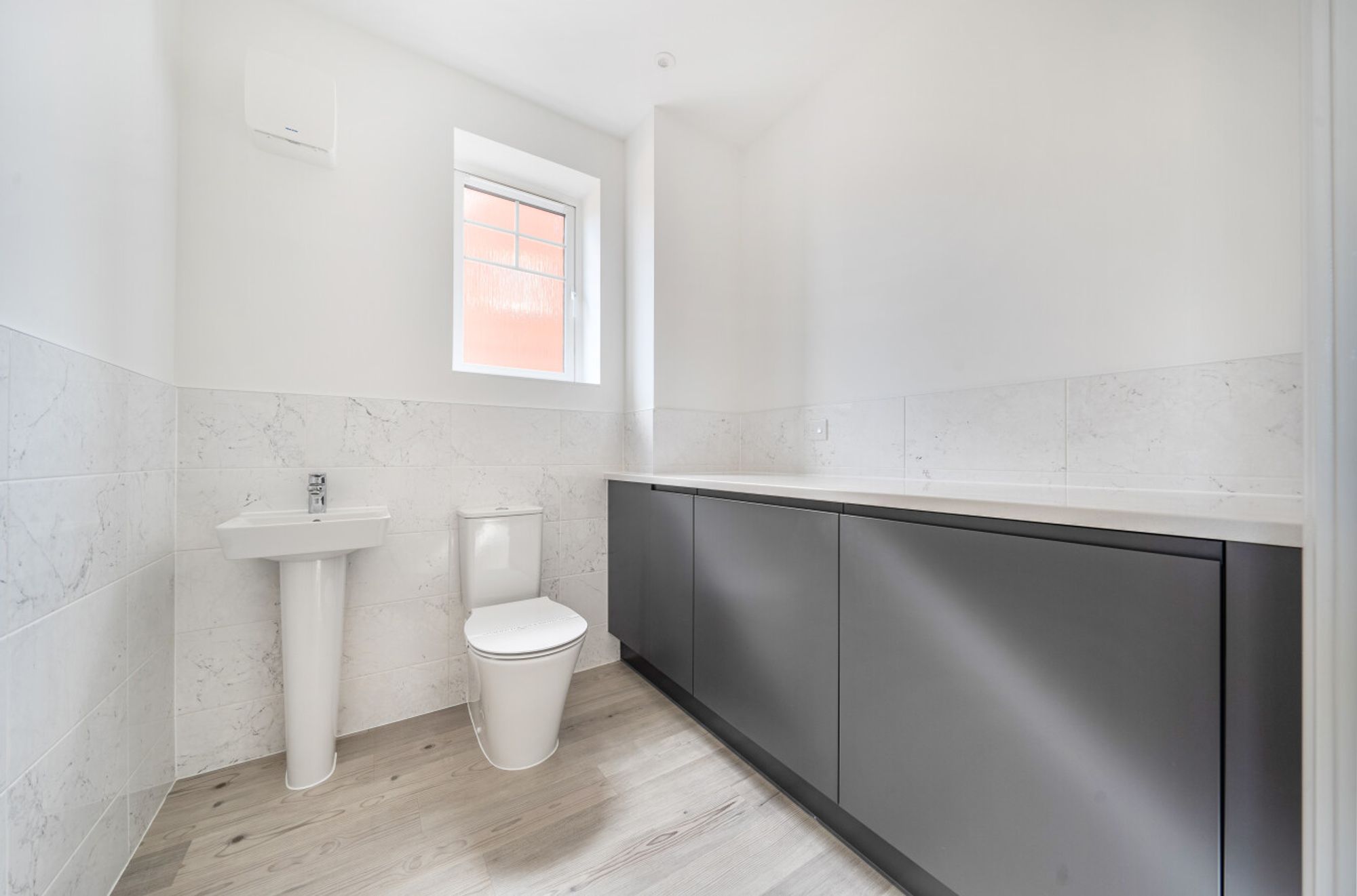 The ground floor is designed for both relaxation and entertaining. A bright sitting room provides a welcoming retreat for cosy evenings, while to the rear of the house, the impressive open-plan kitchen and dining area forms the true heart of the home. With sleek fitted units, premium Bosch appliances and wide bi-fold doors opening seamlessly onto the landscaped garden, it’s the perfect setting for family meals and summer gatherings. A separate utility with WC ensures everyday convenience, while a dedicated home office adds valuable flexibility.