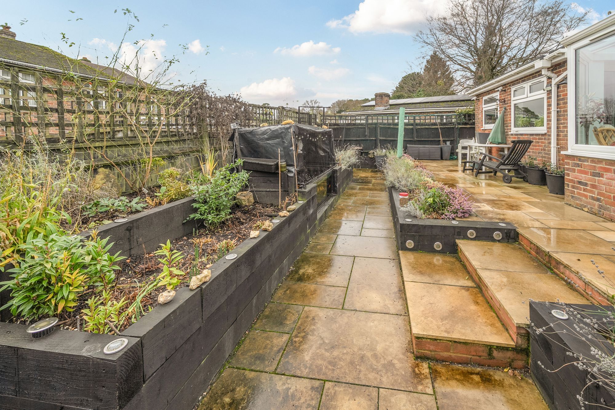 Externally, the landscaped front and rear gardens have been thoughtfully designed to provide attractive yet easy-to-manage spaces, featuring mature borders, solar lighting and a newly laid patio, perfect for relaxing or entertaining. There is also a private drive providing ample off-road parking.