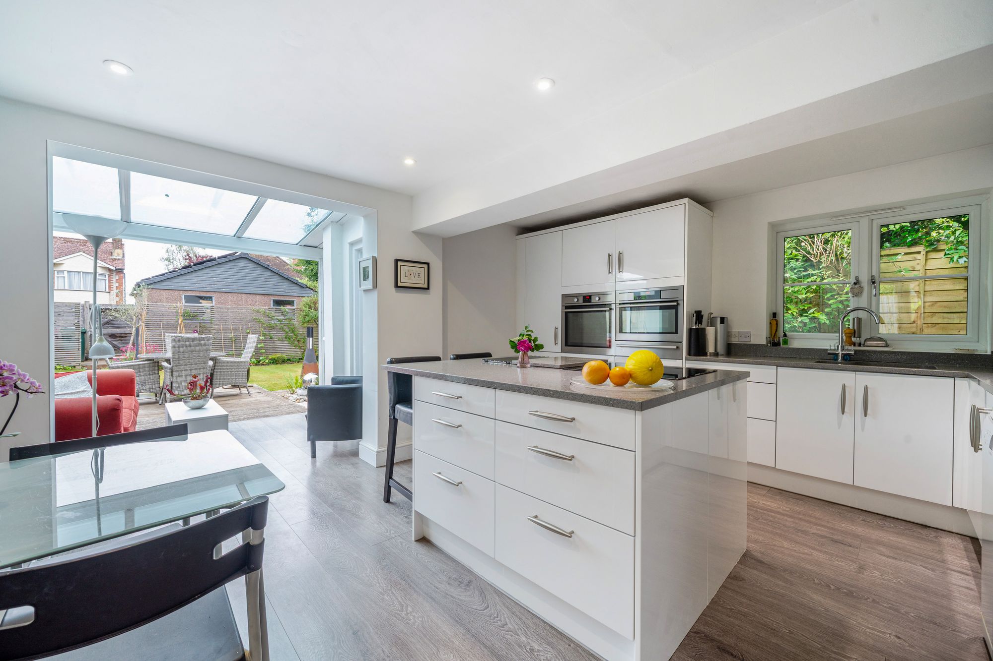The true heart of the home lies to the rear - a thoughtfully designed ‘Magnet’ kitchen/dining/family room. With full-width aluminium bi-fold doors opening onto a private west-facing garden with mature, colourful borders, the space is filled with natural light and perfect for indoor-outdoor living. A separate utility/boot room adds further convenience and storage.