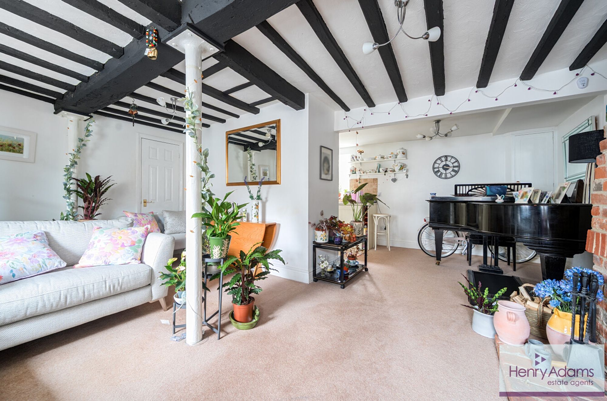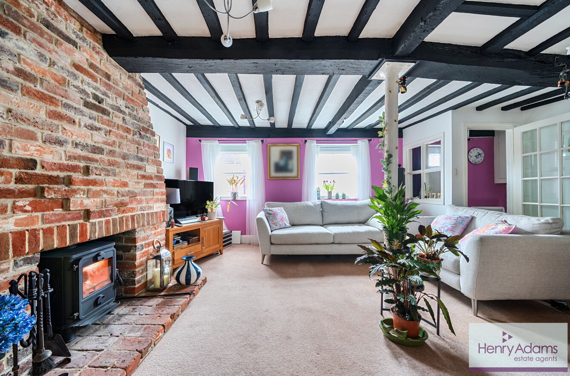 On the ground floor, the cosy sitting room is enhanced by an exposed brick fireplace and beams, leading through to a well-proportioned kitchen/dining area that provides ample space for family meals and entertaining. Upstairs, there are three bedrooms, each with its own character, and a family bathroom.