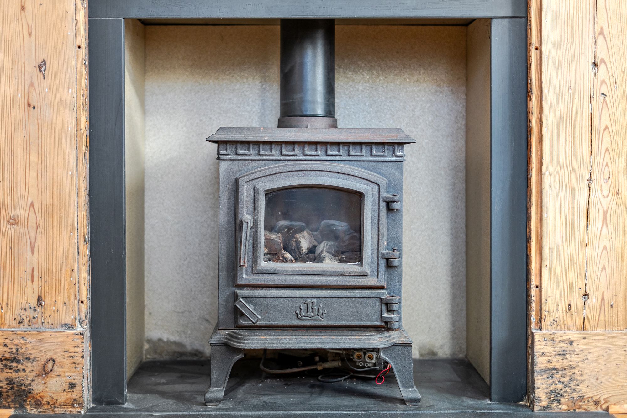 The interior exudes timeless charm, with features that celebrate its history, including sash windows, ornamental fireplaces, vaulted ceilings and exposed finishes. A welcoming hallway with polished wooden floors leads to the principal reception spaces, comprising a cosy lounge centred around a feature fireplace with a multi-fuel stove, and a versatile study with dual-aspect windows and a charming gas-fired wood-burning stove.