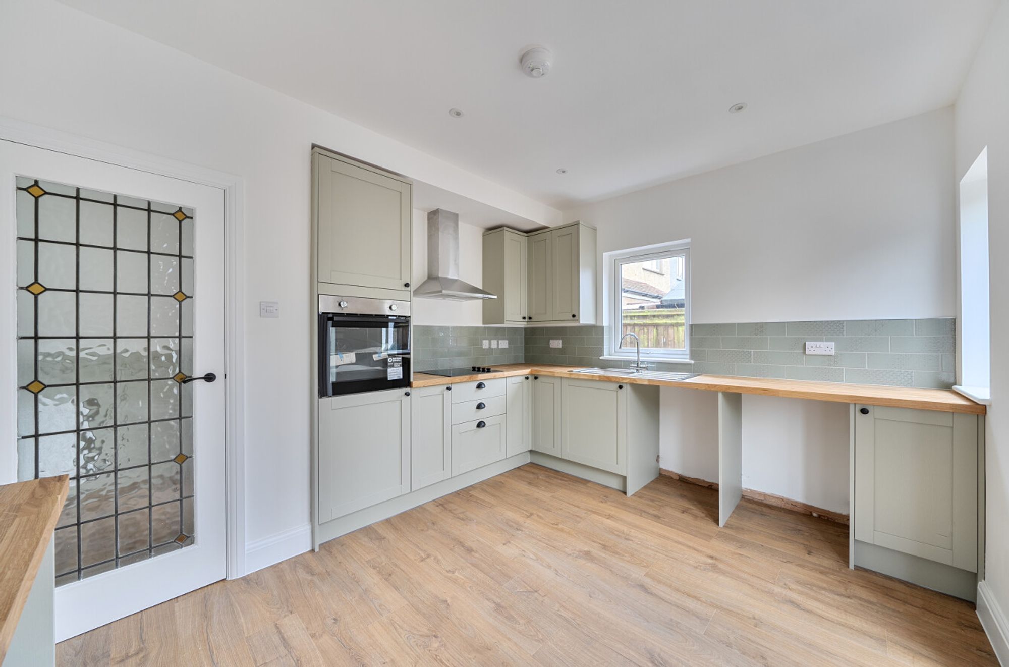 The ground floor offers two well-proportioned double bedrooms alongside a spacious and bright sitting/dining room, ideal for both everyday living and entertaining. The modern fitted kitchen boasts ample cupboard space and generous room for white goods, finished with clean lines and contemporary styling.