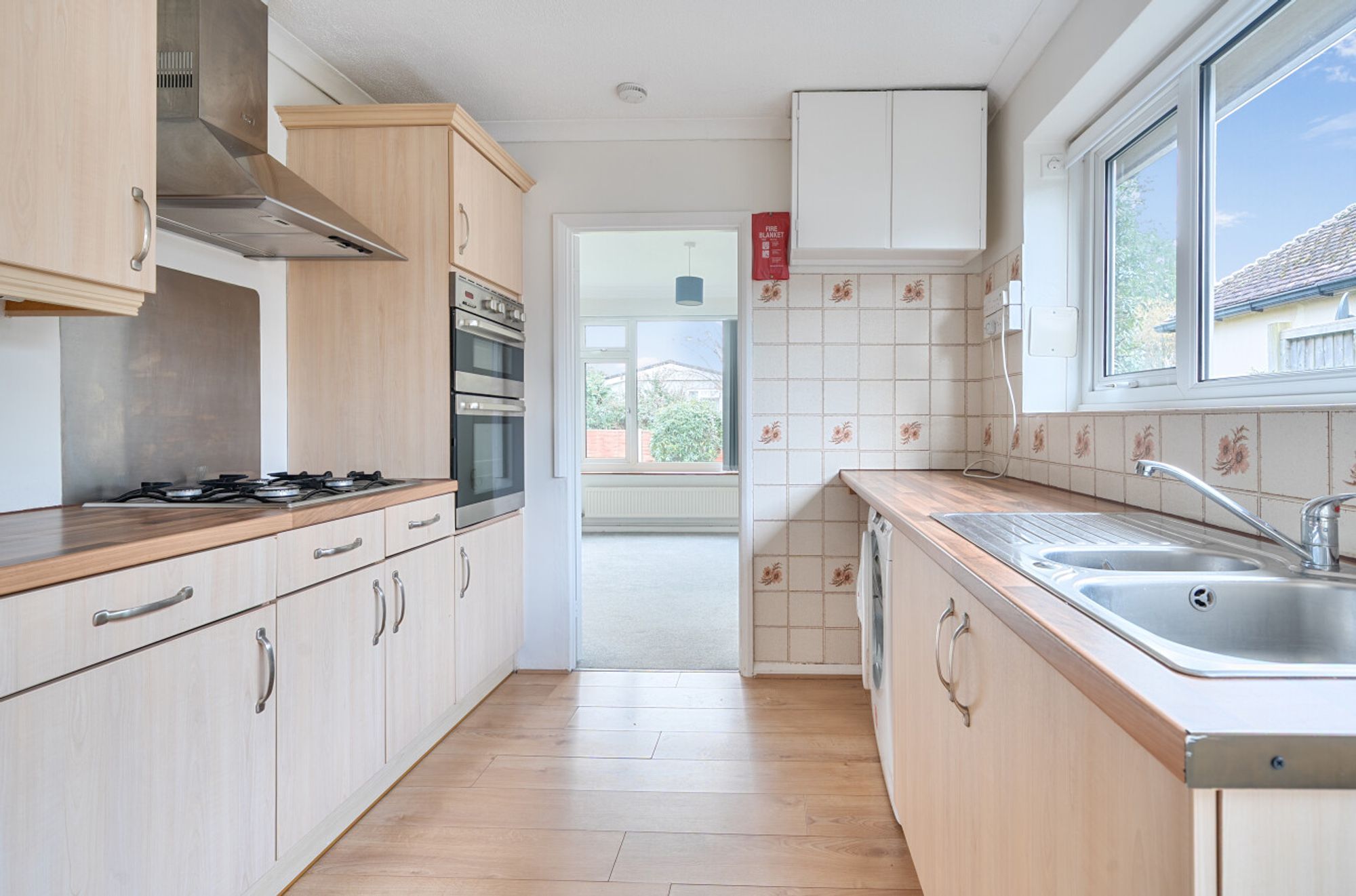 The versatile accommodation comprises an entrance hall, a bright dual-aspect sitting room and a well-equipped kitchen fitted with a range of cupboards, integrated double oven and gas hob. There are three bedrooms, a bathroom with a white suite and shower over the bath and a separate WC.