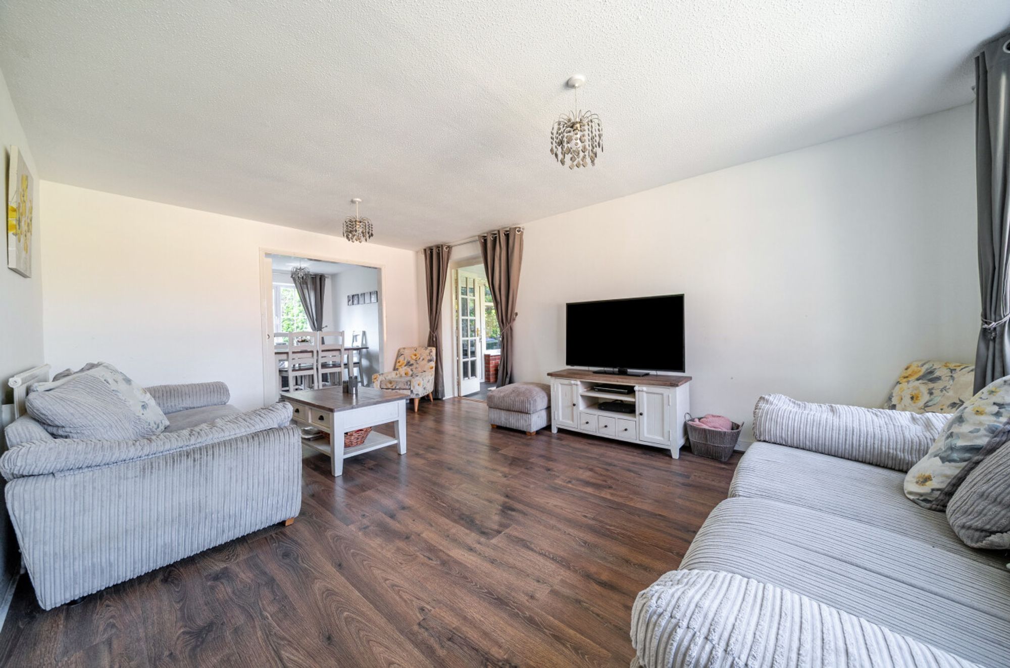 Set in a quiet, semi-rural, non-estate location, this attractive property offers generous, light-filled living spaces ideal for family life. A wide entrance hall welcomes you into the home, with a convenient cloakroom. The dual-aspect sitting room features glazed double doors opening to a conservatory, complete with radiator for year-round comfort. A wide archway connects the sitting room to the dining room, where a large window and glazed door lead directly out to the rear garden, enhancing the sense of space and natural light. The shaker-style kitchen is fitted with an integrated electric oven and ceramic hob, offering a stylish and practical cooking space. Upstairs, there are three well-proportioned bedrooms served by a smart, modern bathroom.