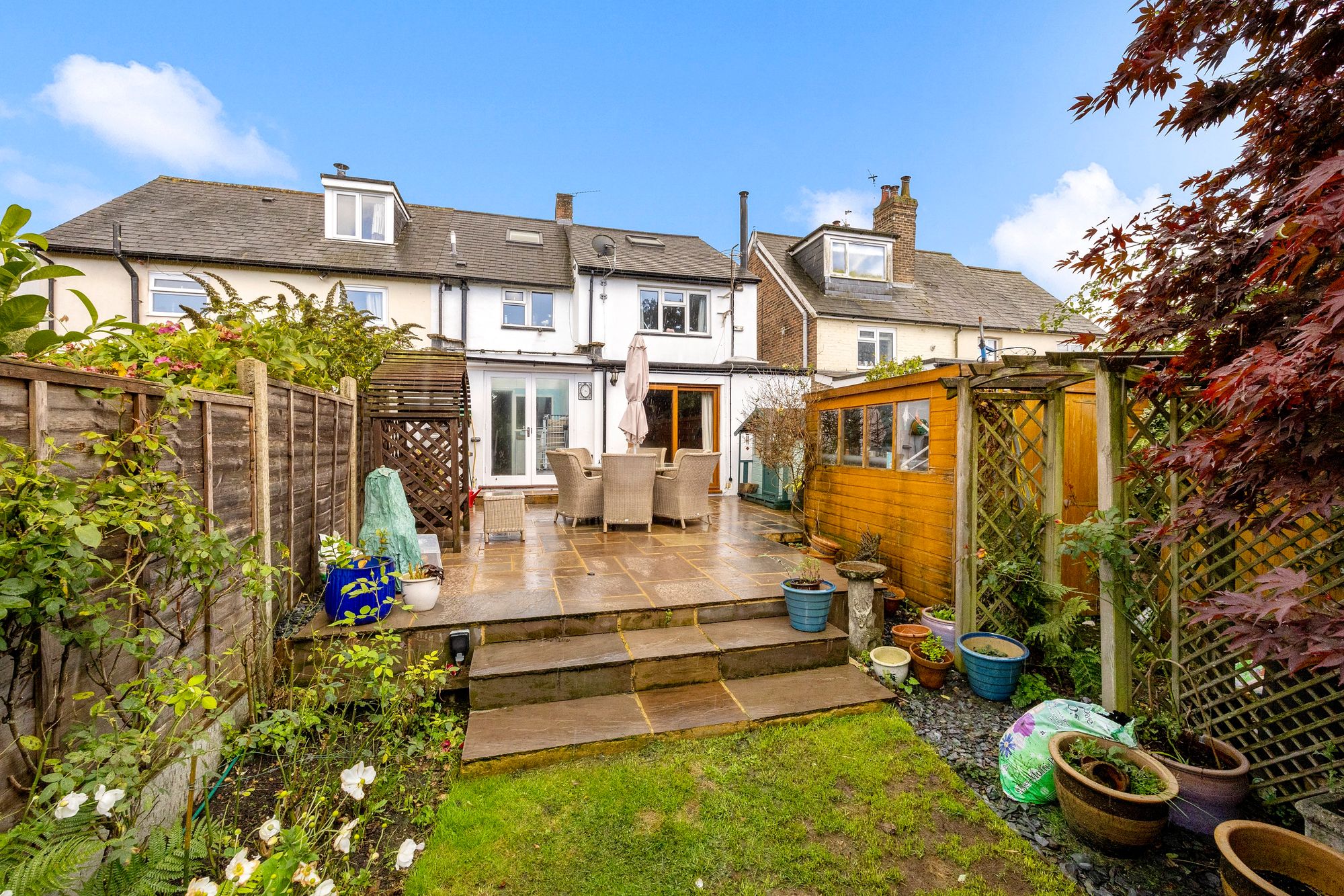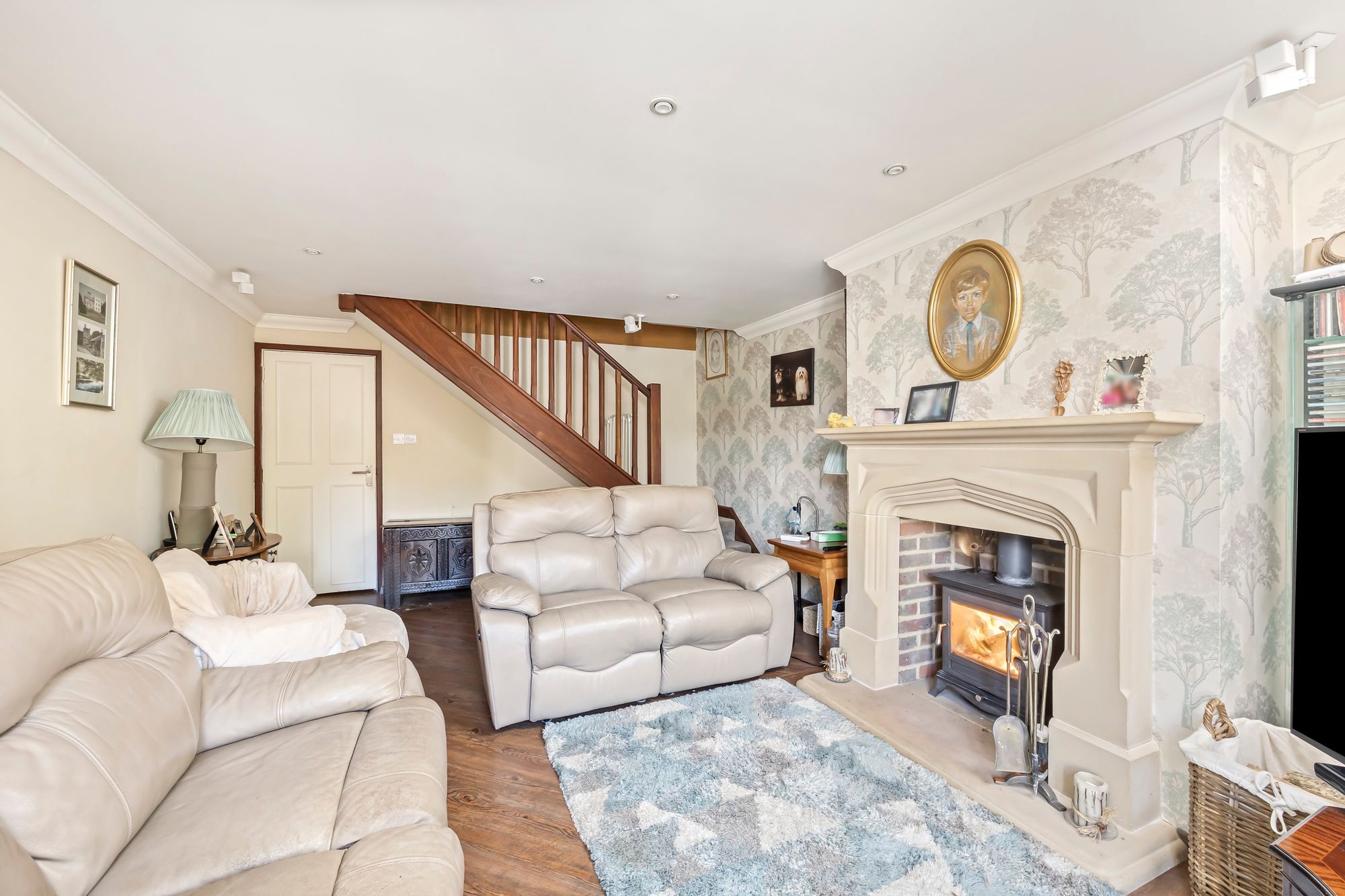Benefiting from solar panels, this residence not only contributes to environmental sustainability but also offers reduced energy bills, with full ownership ensuring long-term cost efficiency. The circa 55ft mature rear garden is a serene retreat with views over the fields behind, inviting you to unwind amidst nature's beauty. The home boast many shrubs but more so a stunning magnolia tree at the bottom of the garden and a wisteria to the front of the property.