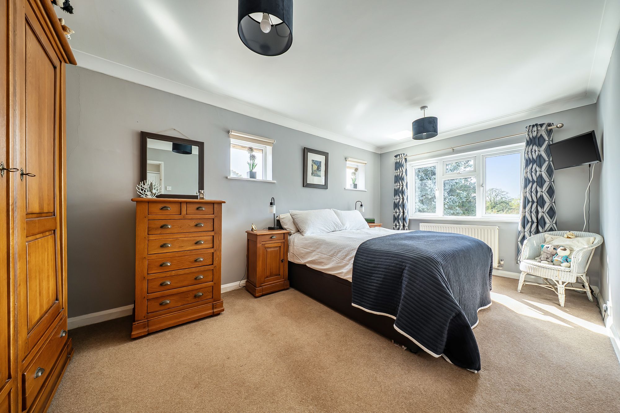 Upstairs, the main bedroom enjoys lovely views over the garden and benefits from an en-suite shower room and a plenty of storage. Three further double bedrooms offer spacious accommodation for family and guests, served by a well-appointed family bathroom.
