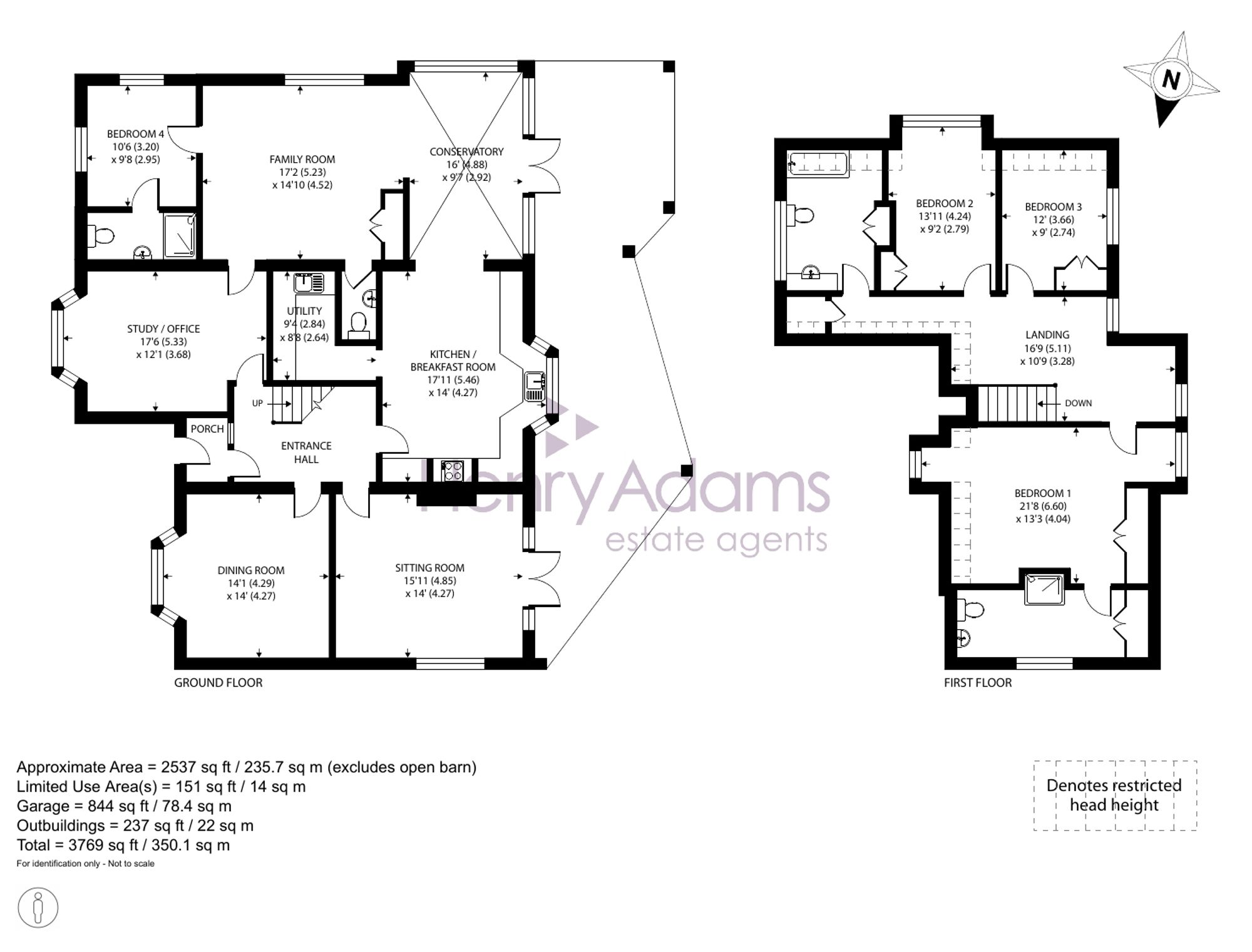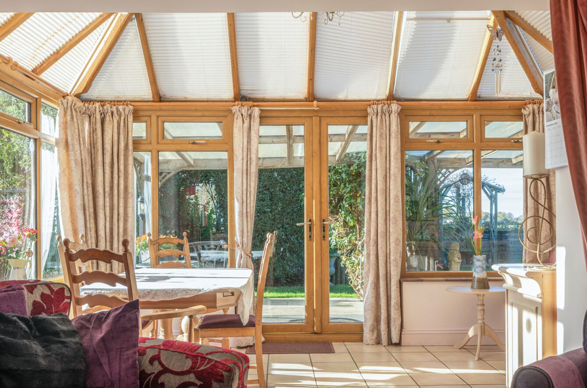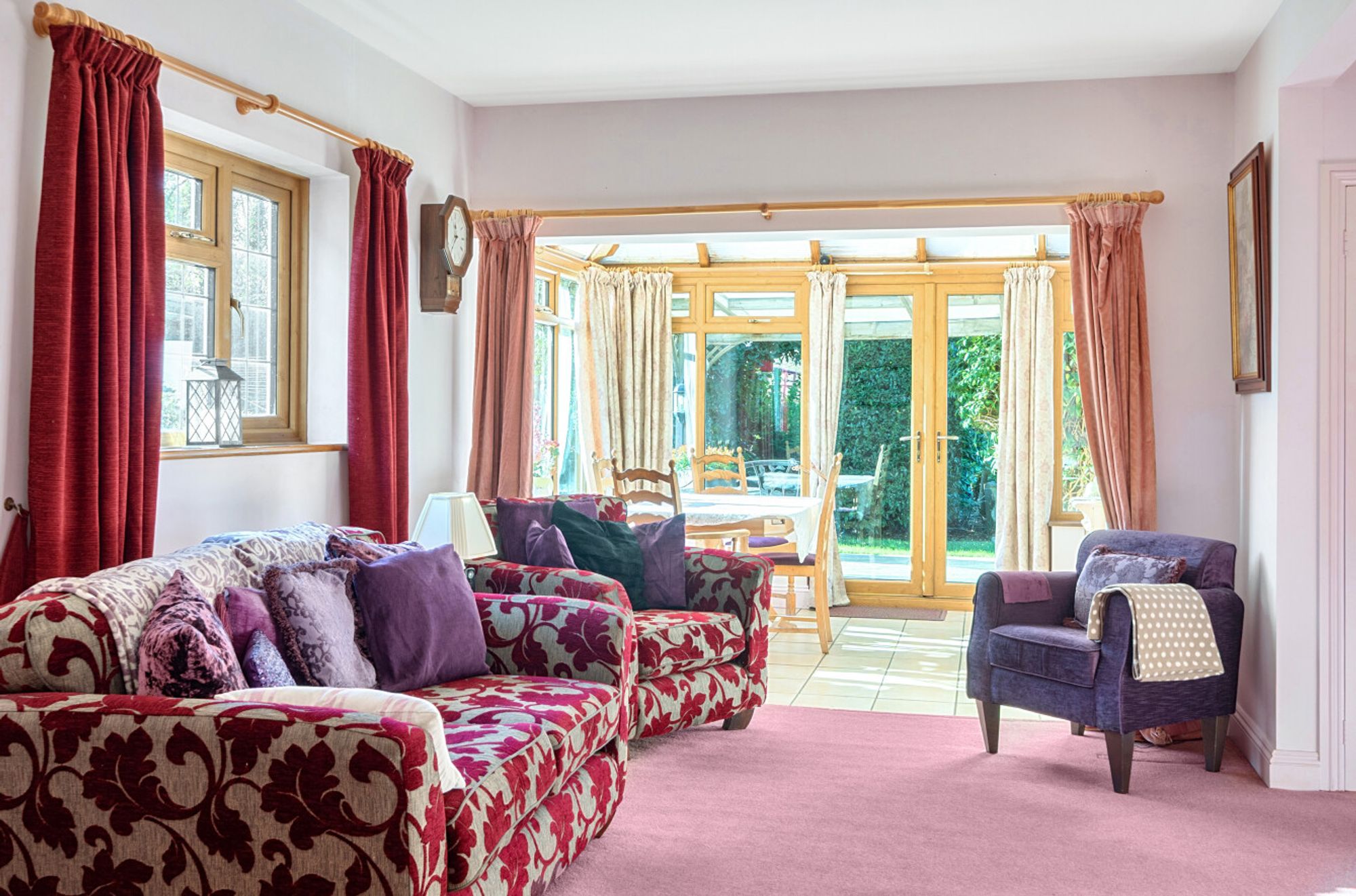 The accommodation is well laid out and suited to modern and multigenerational living. The entrance hall leads through to a bright sitting room overlooking the garden, a separate dining room, and a useful study or family room. From here, a door opens into a generous ground floor double bedroom with its own en suite, ideal for guests or extended family. The conservatory enjoys a lovely outlook over the garden and fields, while the kitchen offers good storage and space for everyday dining. A utility room and cloakroom complete the ground floor.