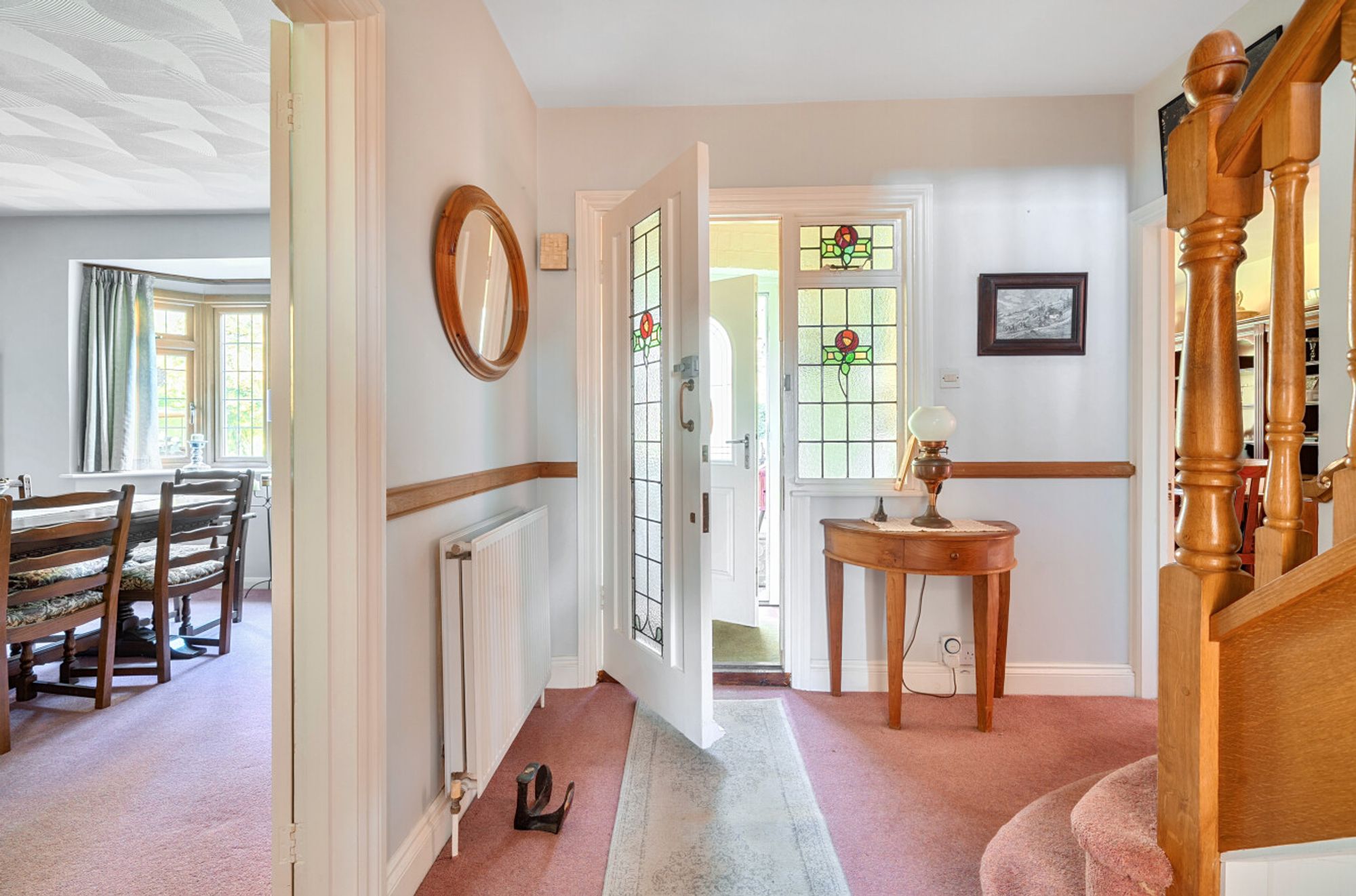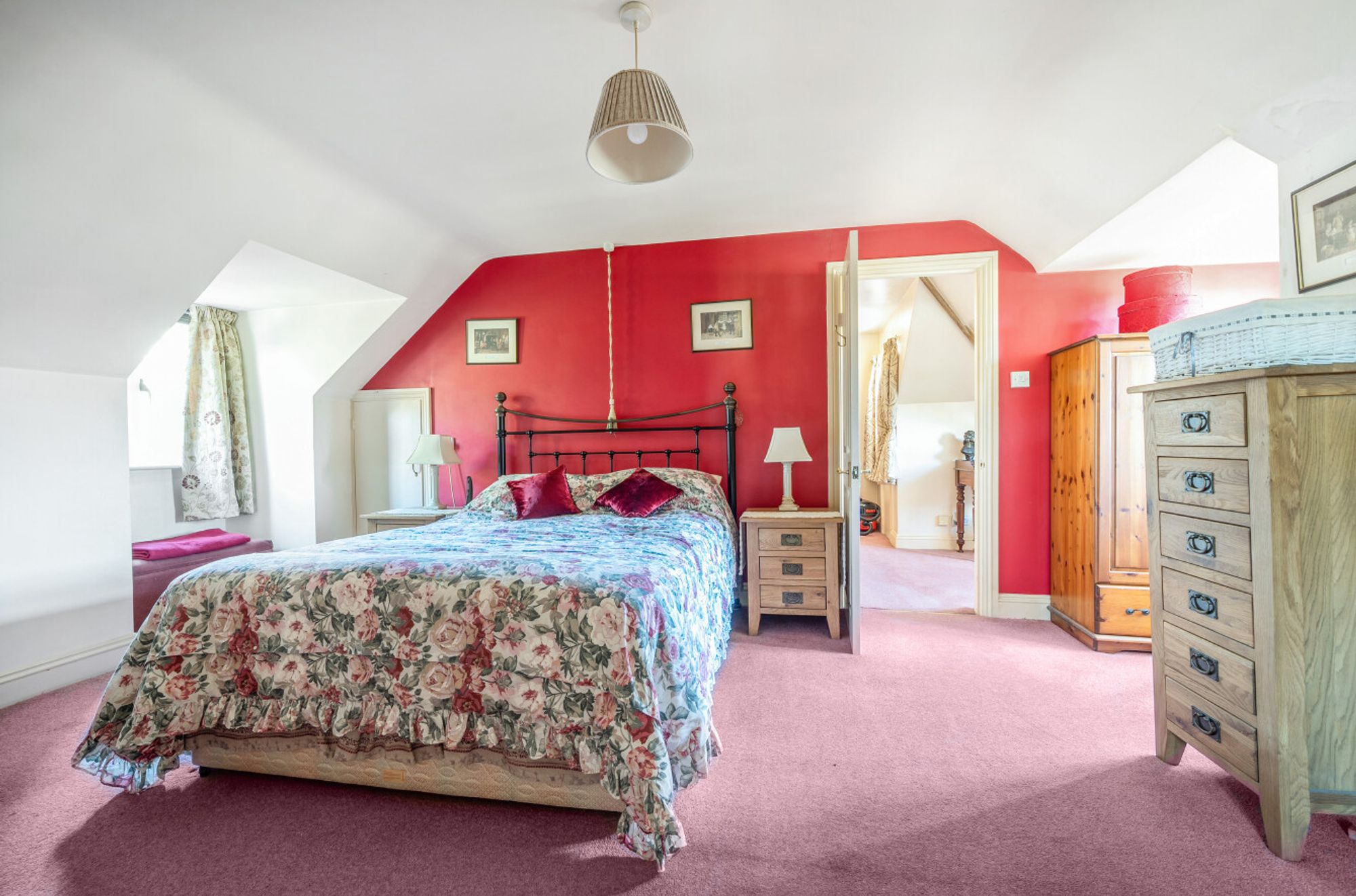 Upstairs are three further bedrooms arranged around a bright landing. The principal bedroom is a generous size and enjoys open views across the fields, along with its own en suite. The remaining bedrooms are both comfortable doubles with good storage and are served by a family bathroom. The layout works well for families, with clear potential for someone to modernise or reconfigure to suit their needs.