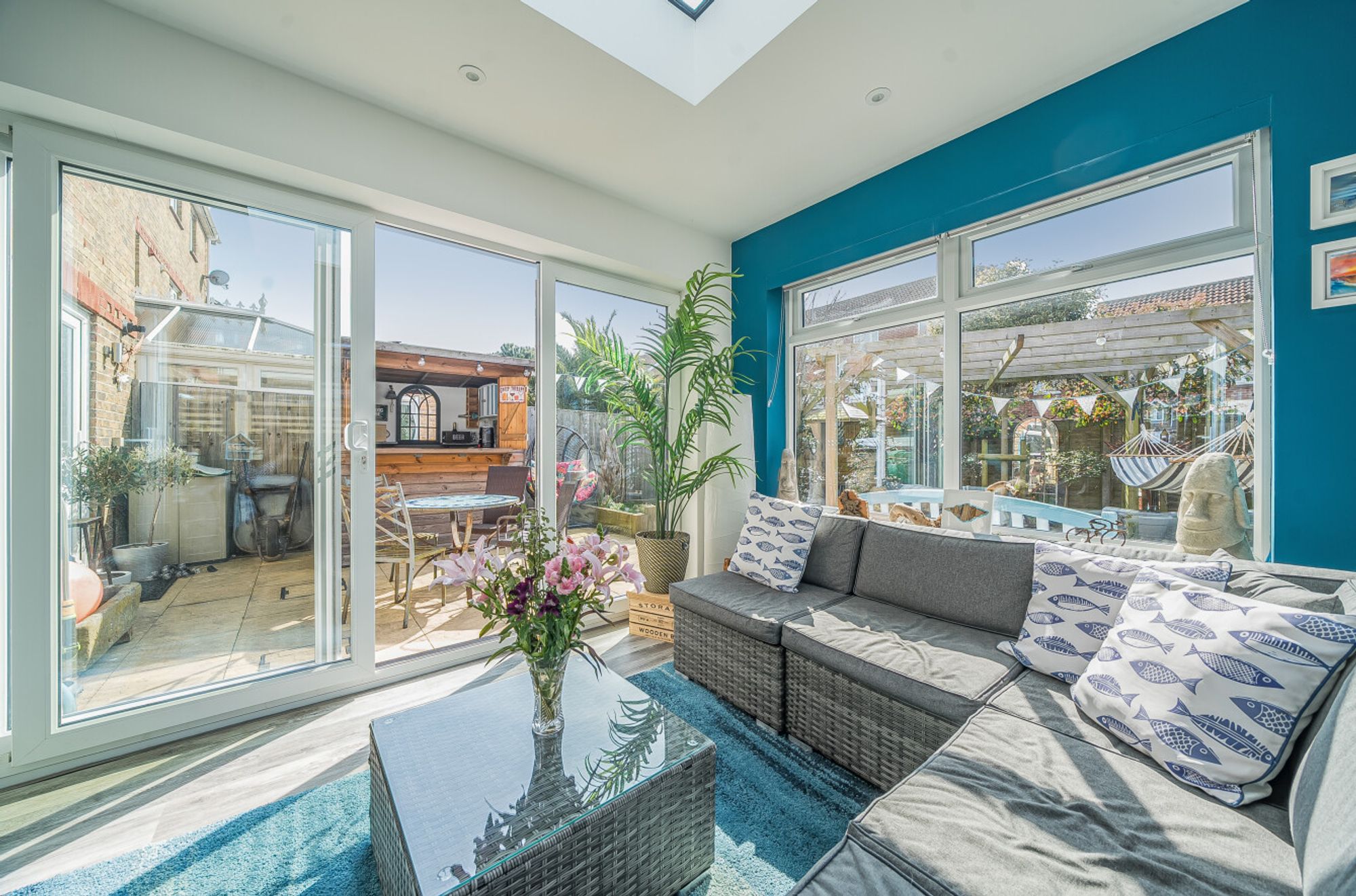 Upon entering, you are greeted by a welcoming hallway leading to a generous living room, perfect for relaxing or entertaining guests. The contemporary kitchen and dining area provides ample space for family meals and features a useful utility room for added convenience. A bright sun room offers an additional reception area, ideal for a variety of uses throughout the year. A downstairs WC adds further practicality.