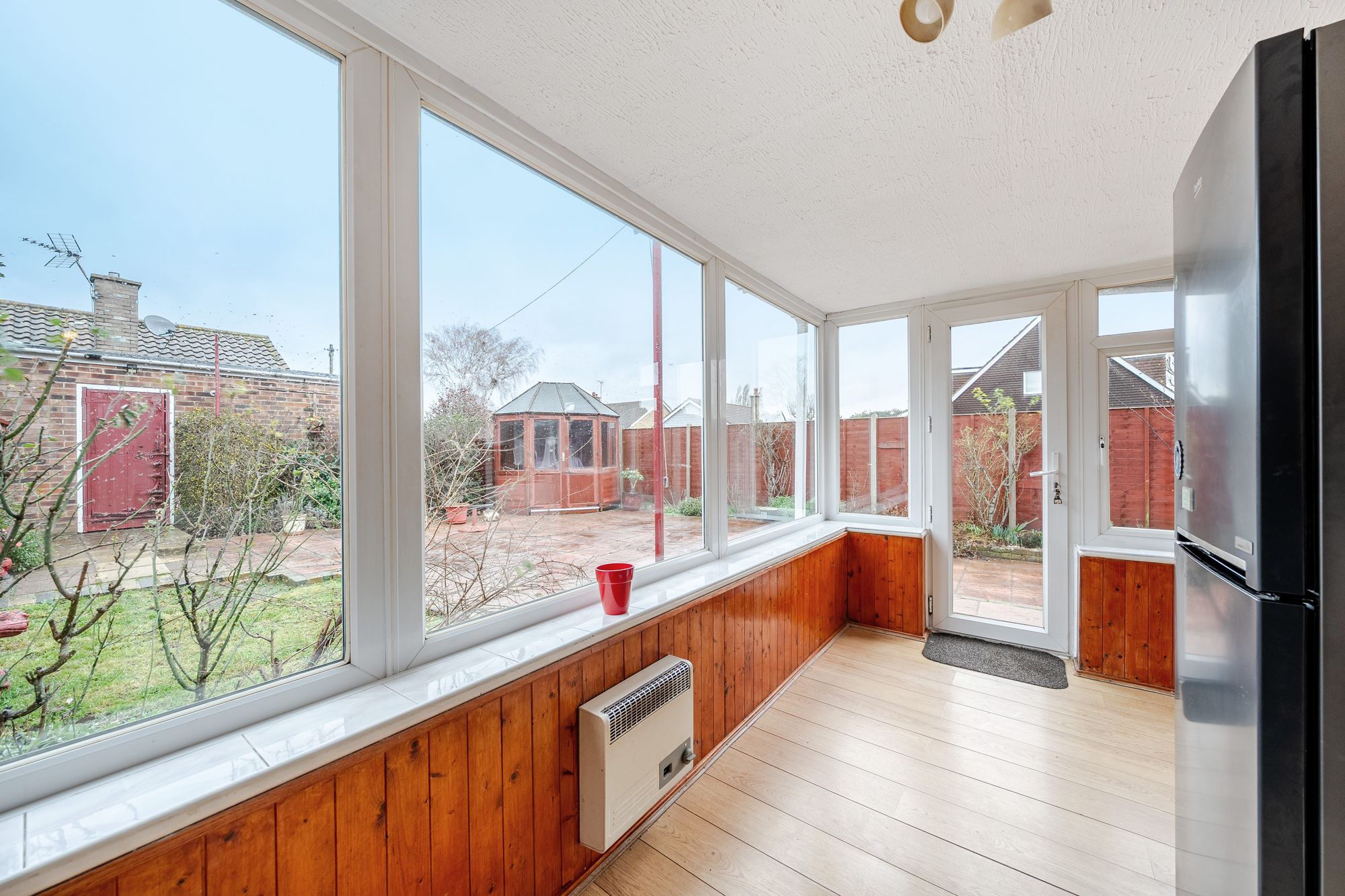 The accommodation starts with a welcoming entrance hall leading to a front-facing sitting room, which flows gracefully into the dining area and through to a well-arranged galley kitchen. To the rear, a bright and versatile sun-room enhances the sense of space, offering an appealing spot for year-round enjoyment with doors opening directly onto the garden.