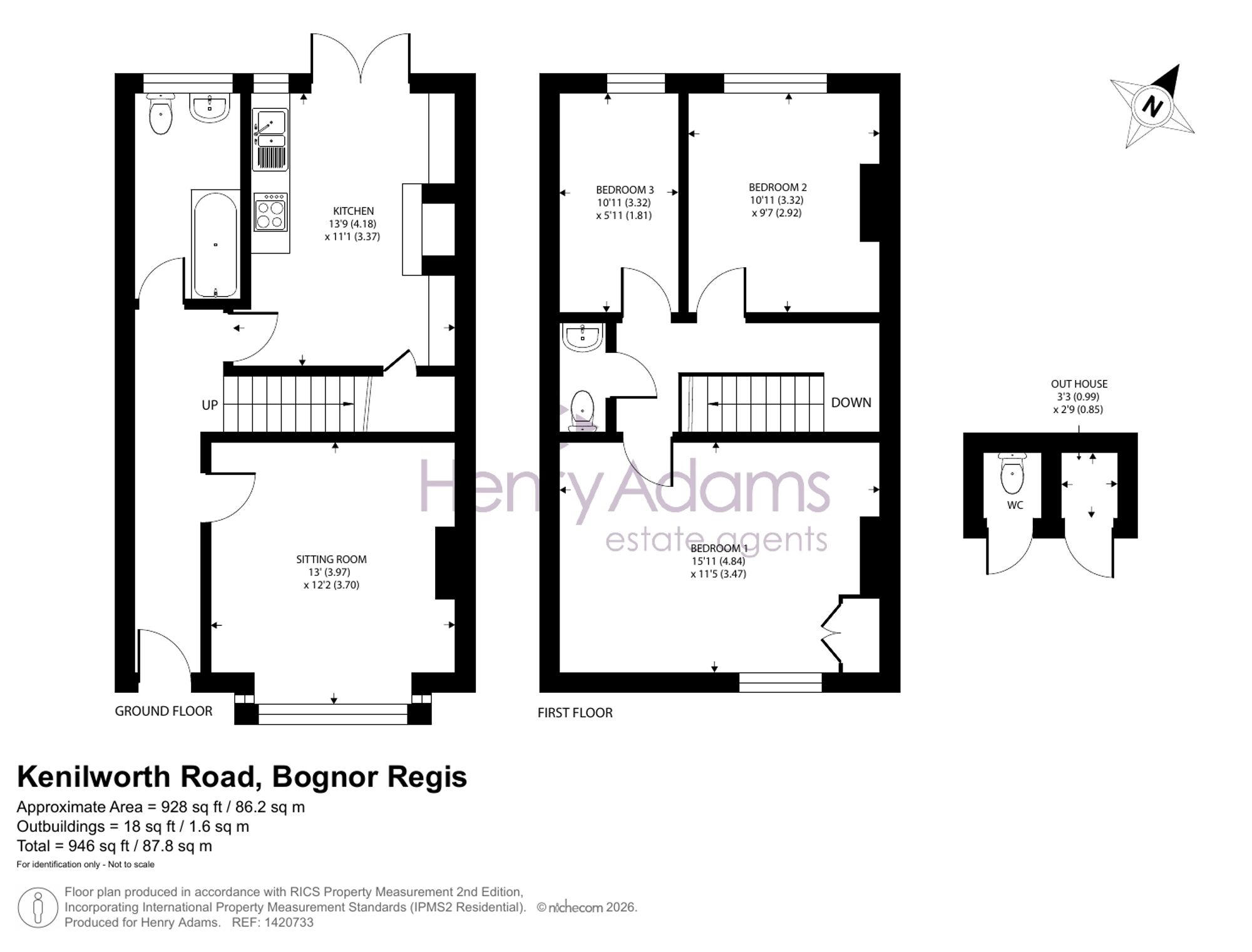 The property boasts two generous double bedrooms and a well-proportioned single bedroom, providing flexible accommodation to suit a range of needs. The inviting sitting room is enhanced by a feature bay window, allowing for plenty of natural light and creating a welcoming atmosphere.