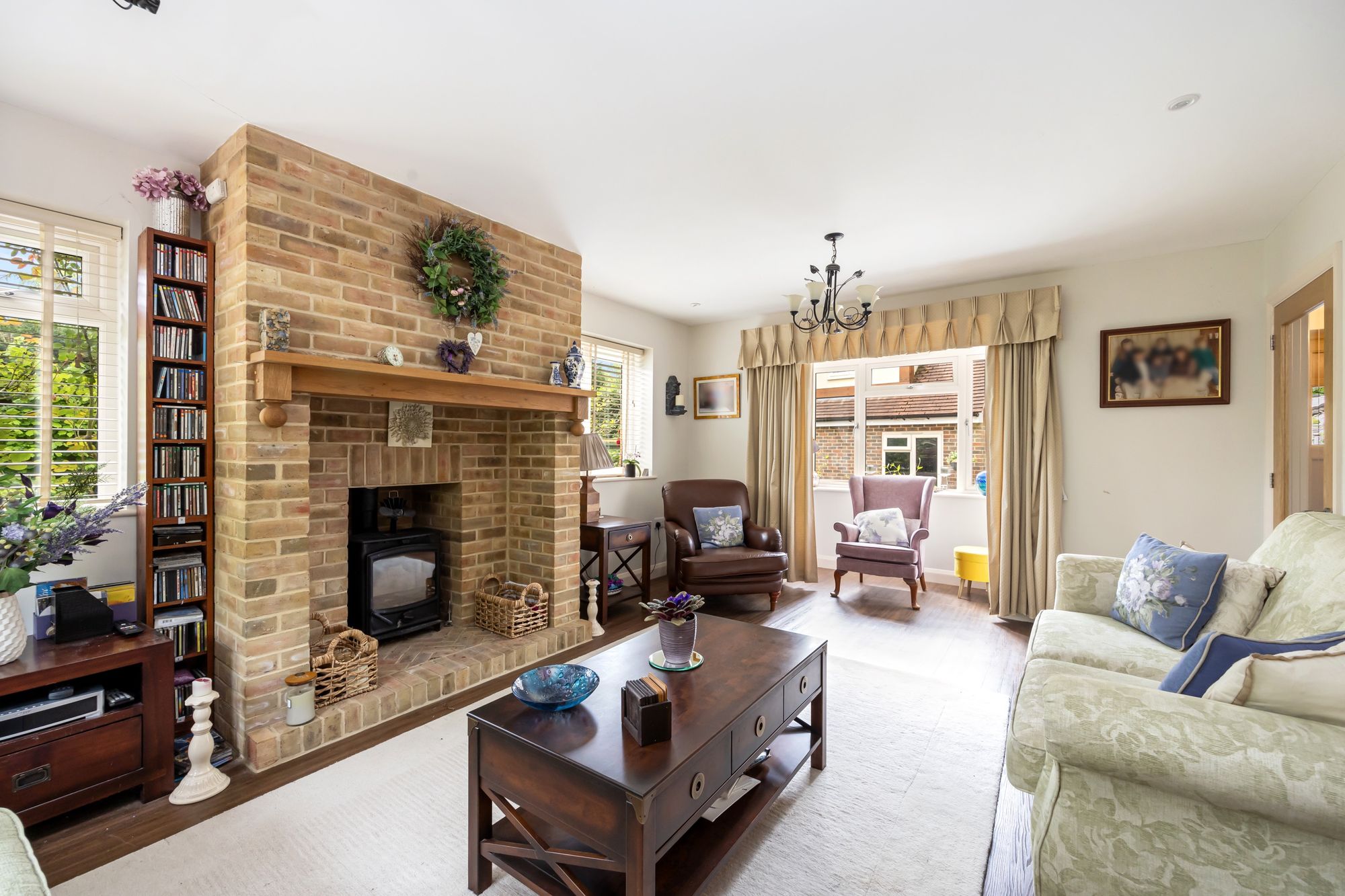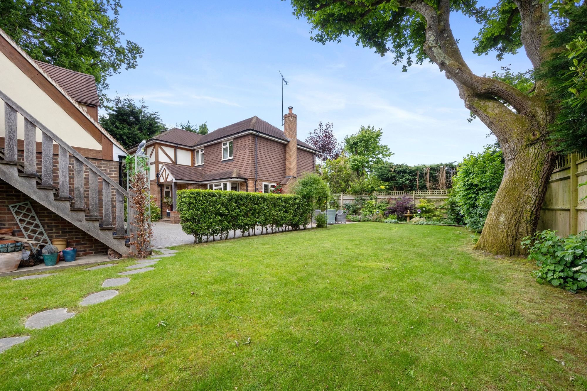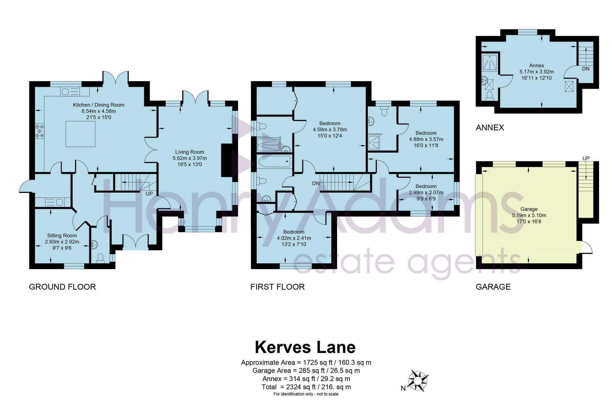Situated in a highly desirable location on the outskirts of Horsham in Kerves Lane is this four bedroom detached house with two en-suites and a family bathroom built by the current owners approximately in 2018 benefitting from separate double garage with annexe with bedroom and en-suite above. The property offers light and spacious accommodation over two floors and as the floorplan shows, highlights of the property include: sitting room with double doors leading out to the garden as well as brick-built fireplace with log burner. This room is also triple aspect and so offers plenty of natural light and views around the gardens. There are internal double doors leading through to the magnificent kitchen/breakfast room. This kitchen is fitted to a high standard with a mixture of wall and floor units as well as central island. There is also a large entrance hall providing a spacious welcoming area and somewhere for coats and shoes for any family. There is also a utility room with back door, study/playroom as well as downstairs W.C.