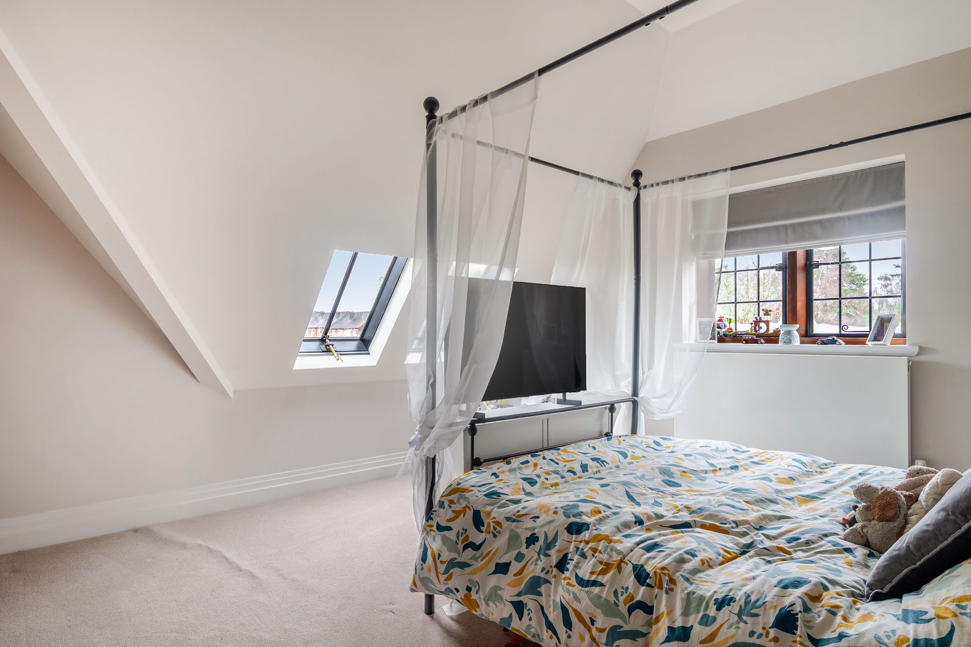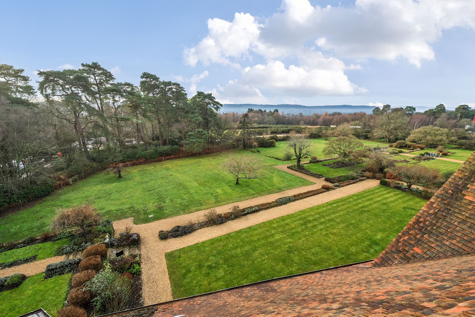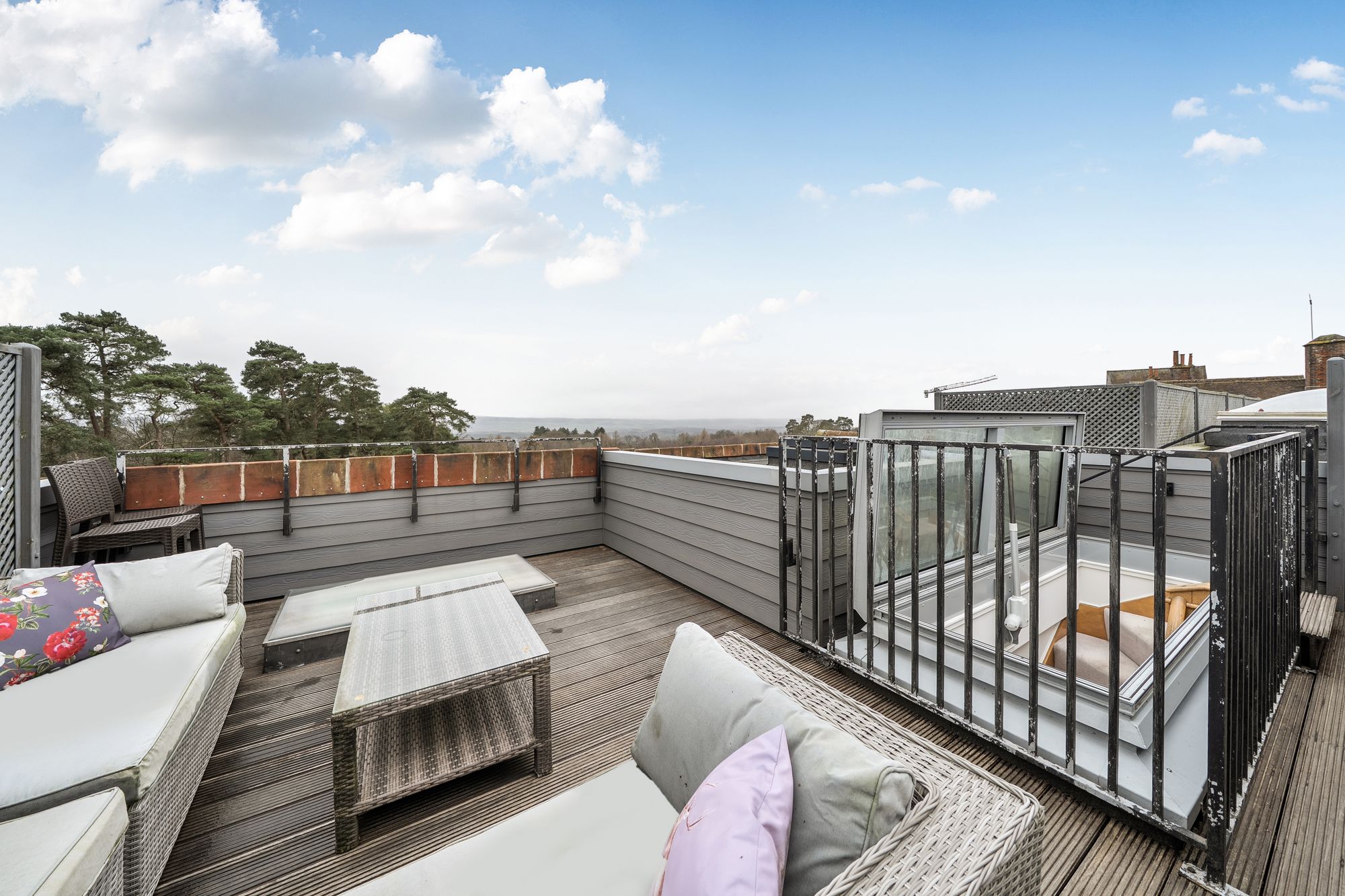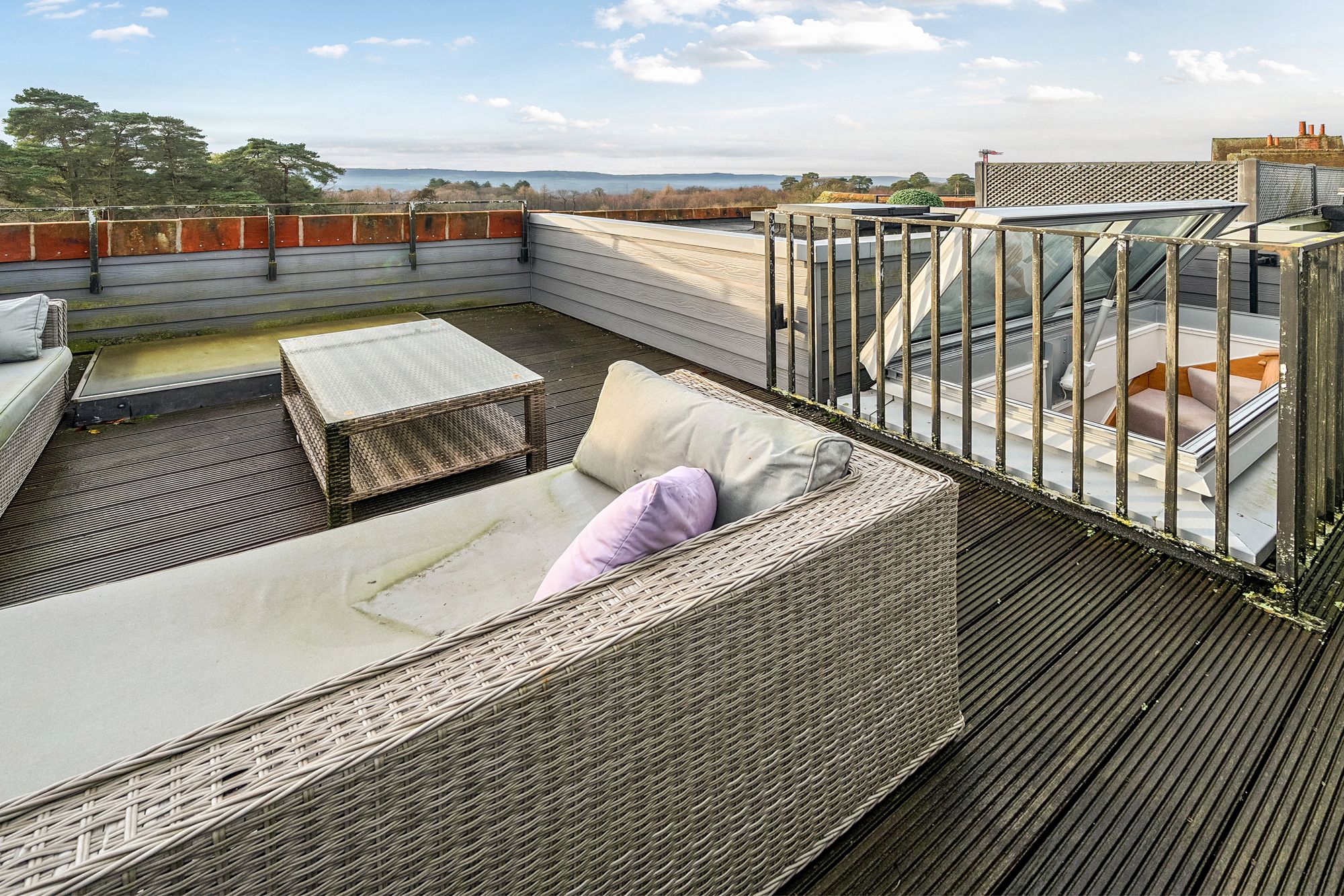 A standout feature of this charming apartment is the private rooftop terrace, accessed via a staircase and electric skylight. This superb outdoor space enjoys breath taking 360 degree views across the estate, communal grounds and open countryside stretching towards the South Downs, providing a truly special setting for relaxation or entertaining.