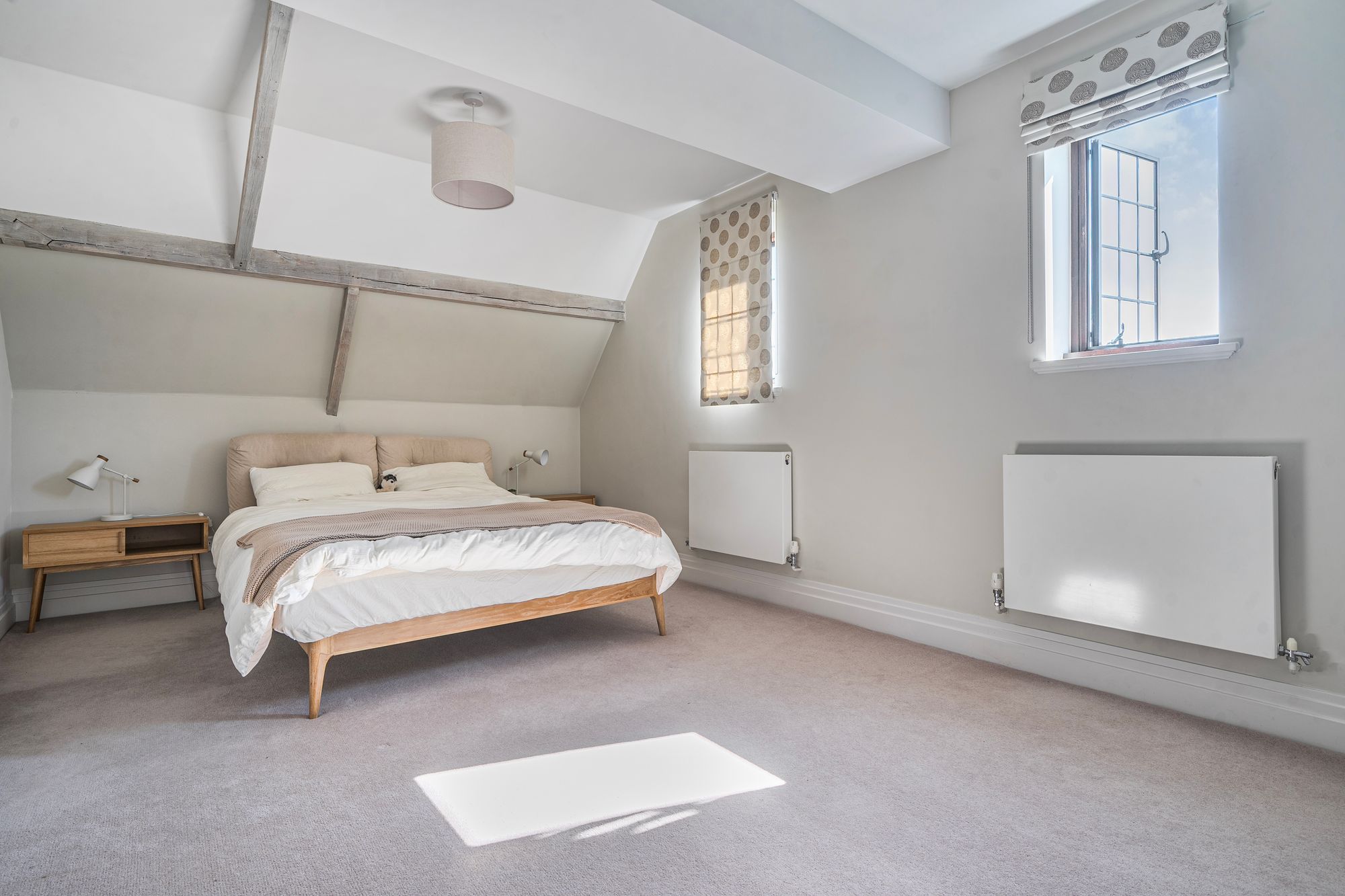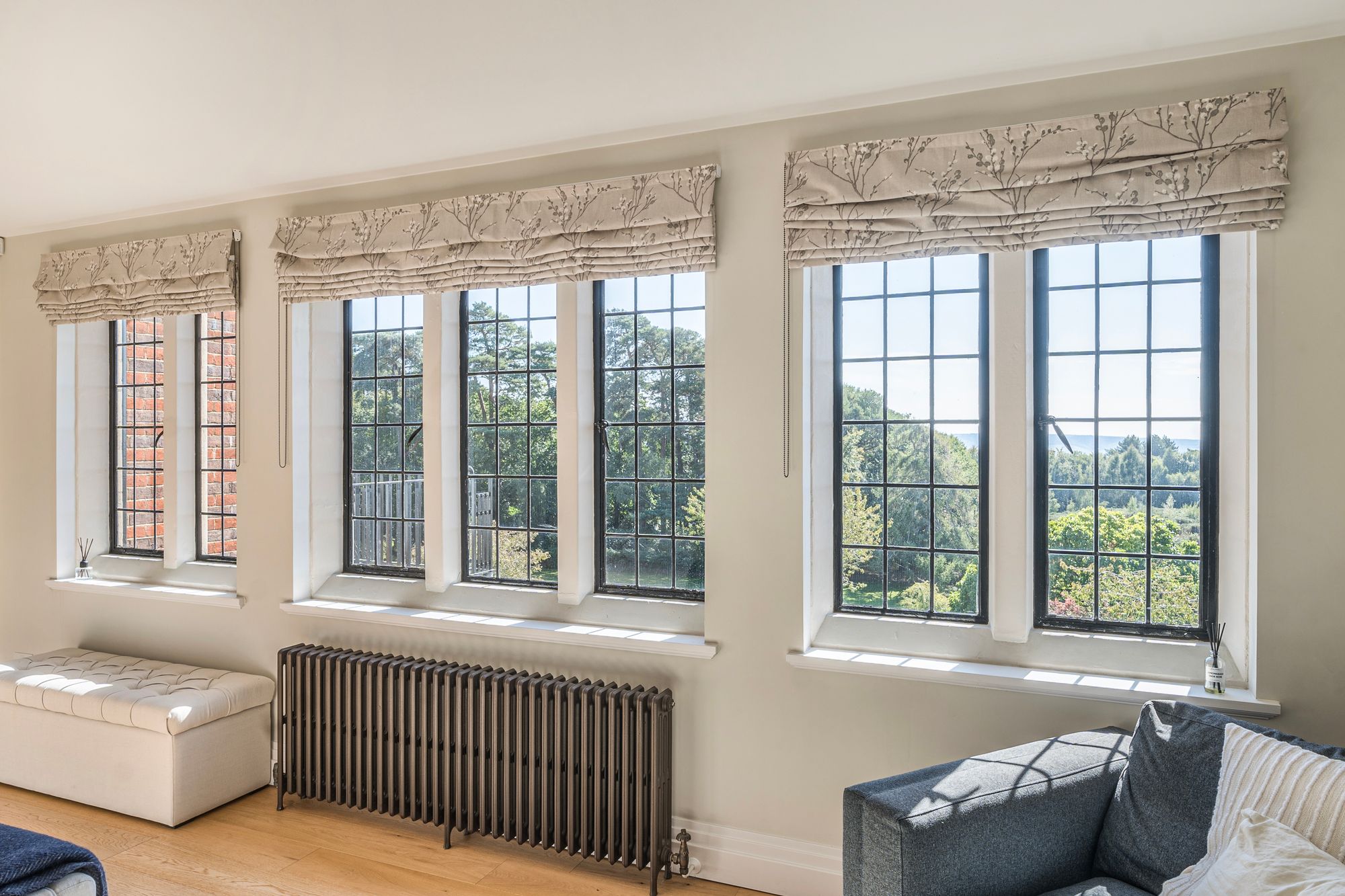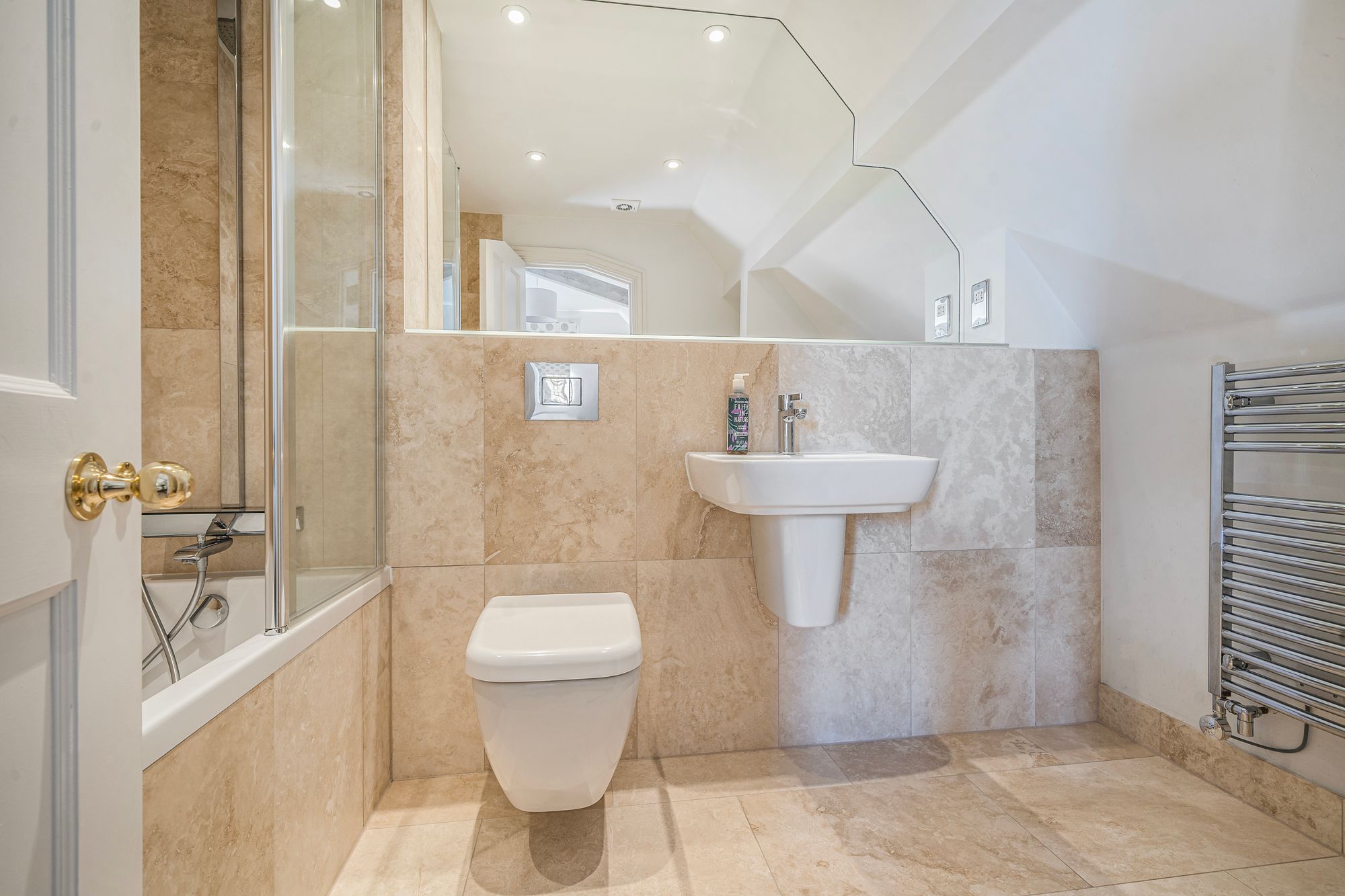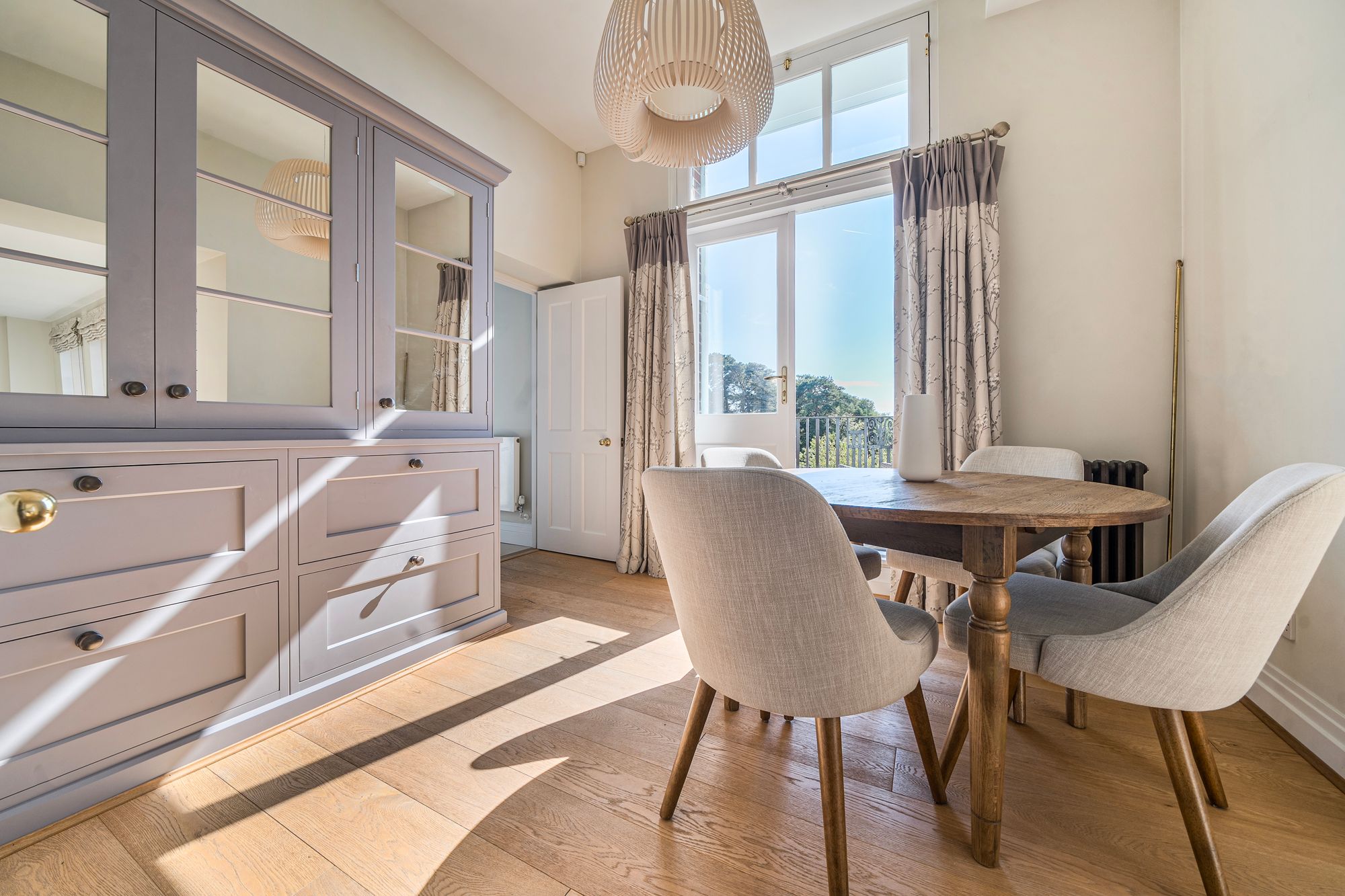 Internally, the property combines elegance with comfort. The principal living spaces are light and generously proportioned, enhanced by high ceilings and original mullion windows that frame the spectacular southerly outlook. The specification is of a high standard throughout, including decorative cast-iron radiators, bespoke storage solutions, quality wooden flooring, and luxurious bathroom fittings.