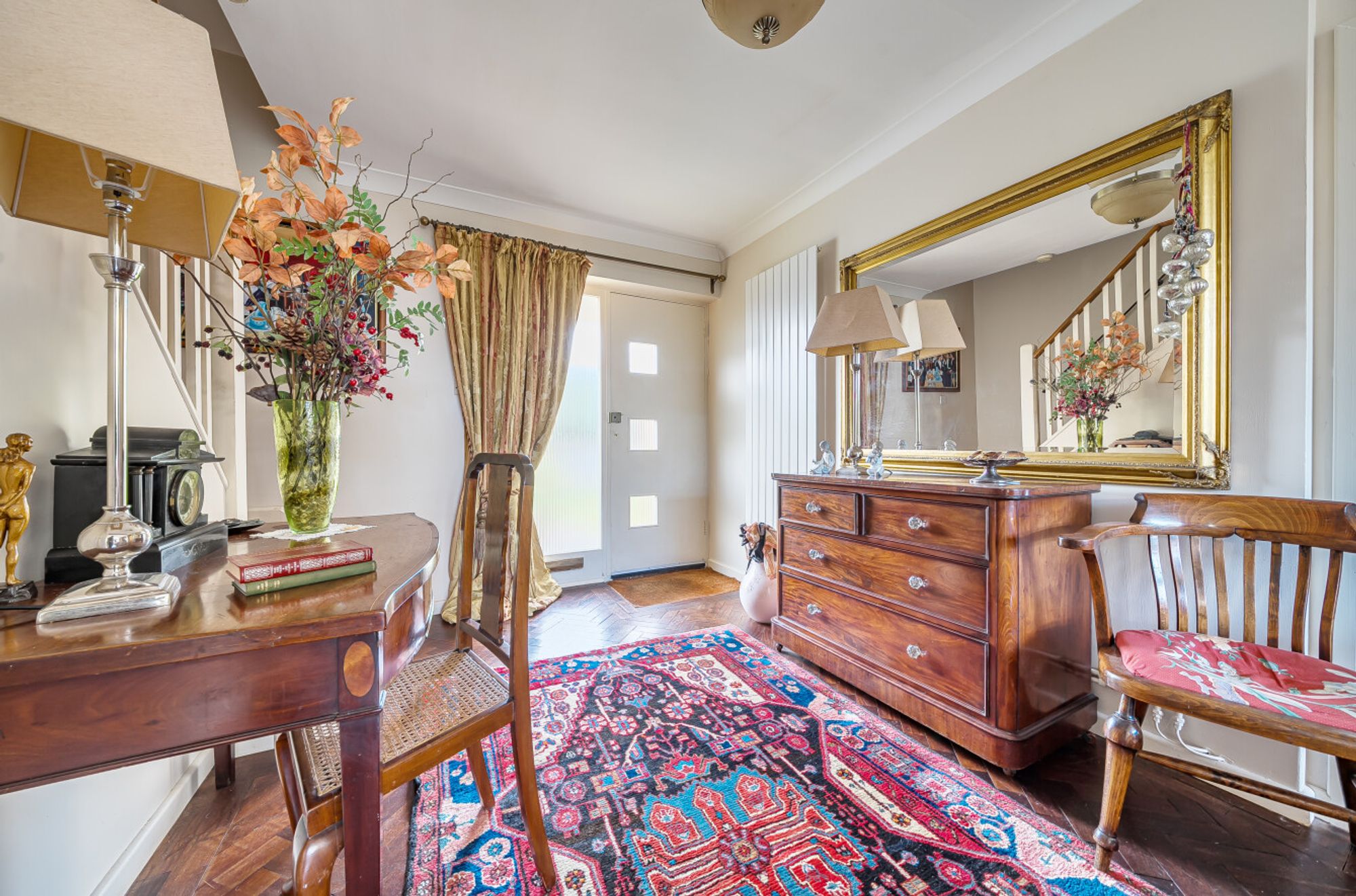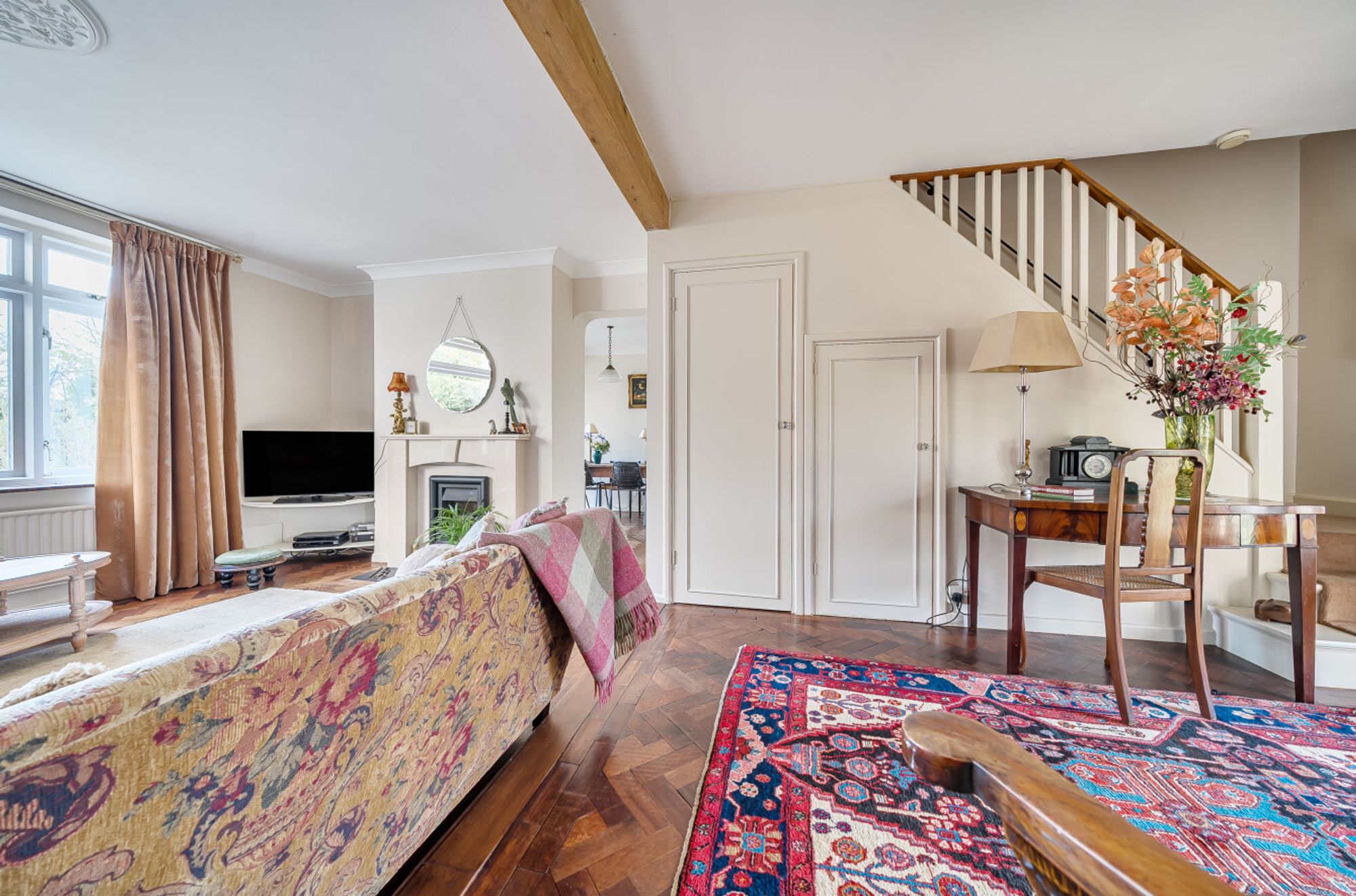 The property is part of a unique conversion of the former stable block, now known as The Clock House, and is full of original character features including beautiful woodblock flooring and a feature fireplace. The impressive hallway has stairs to the first floor and is open plan to the sitting room with a large picture window overlooking the garden.