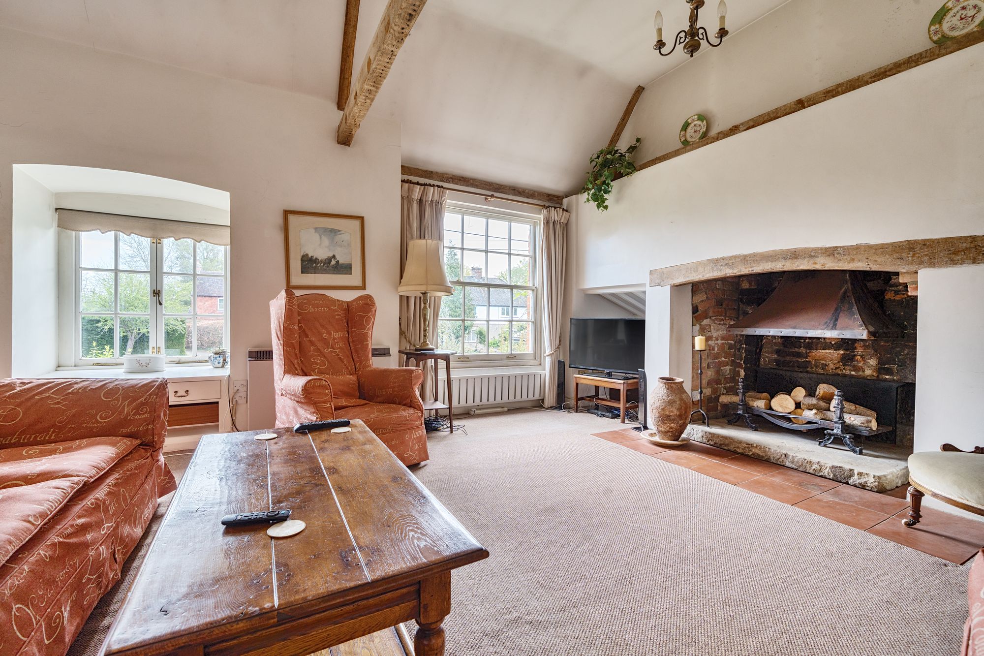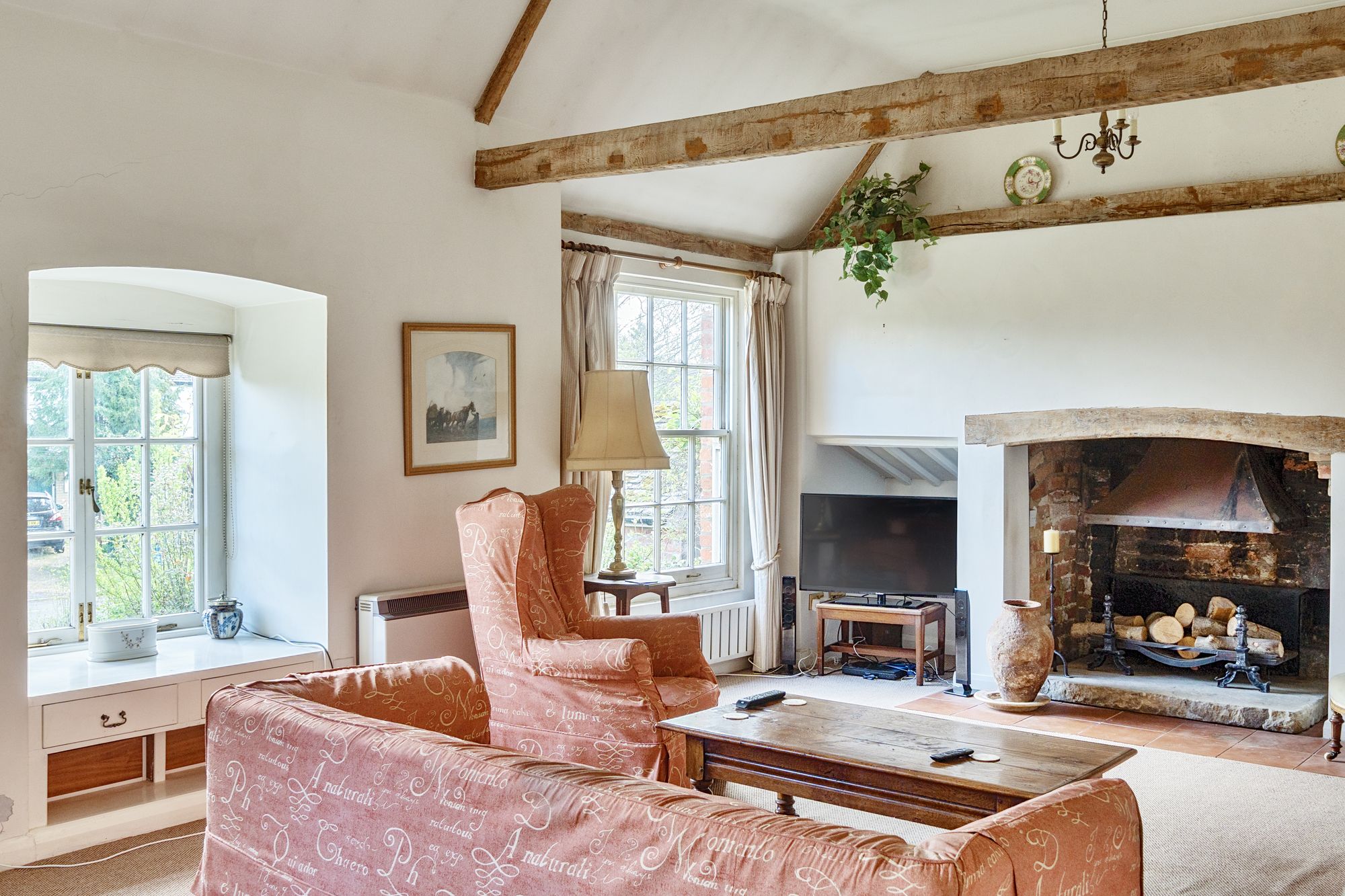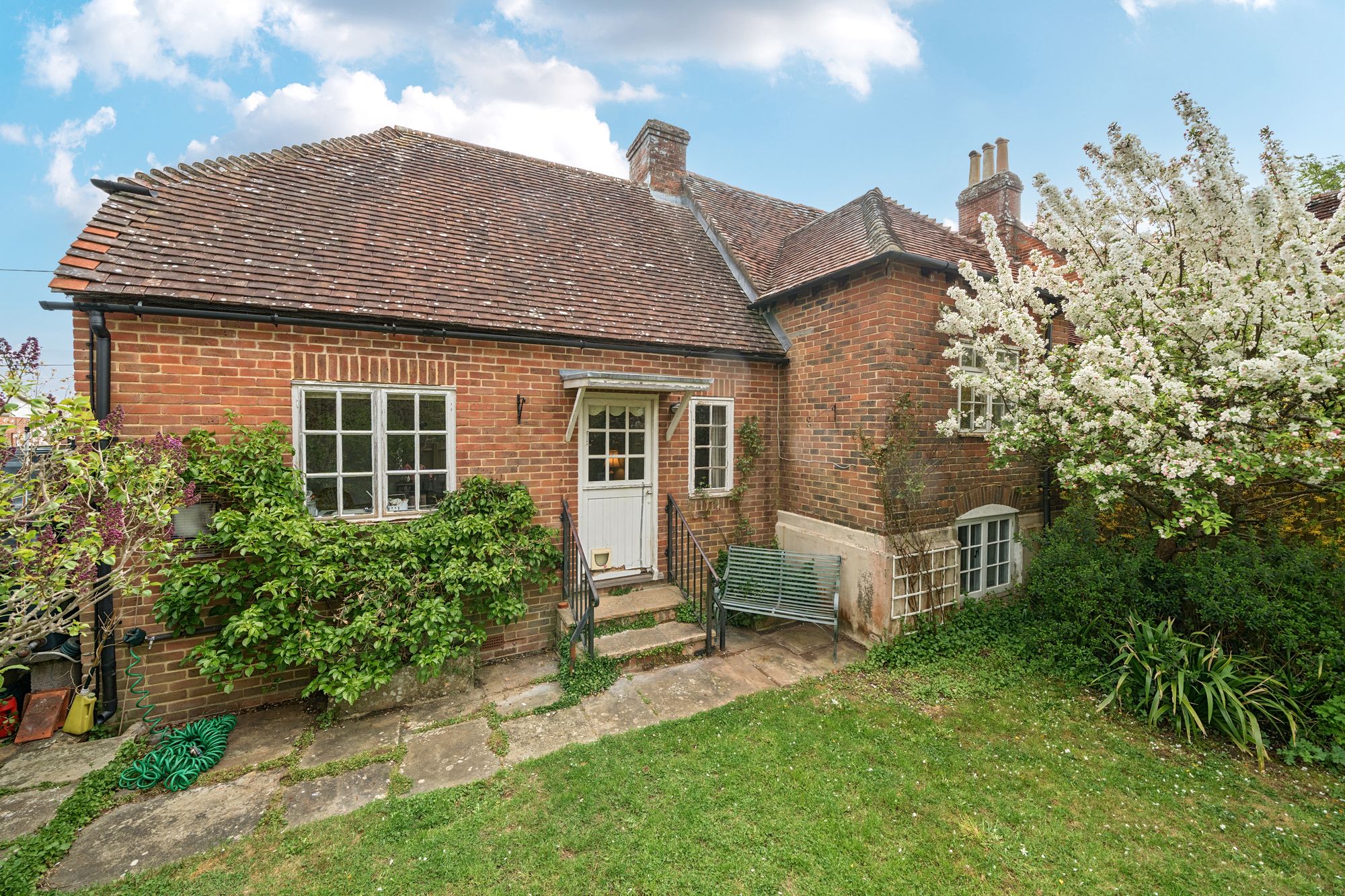 Steps lead up from the charming courtyard driveway to a lovely entrance hall. The spacious sitting room featuring a vaulted ceiling and a striking open fire, setting the tone for cosy evenings in. A dedicated study provides the perfect space for remote work or relaxing with a good book. The kitchen has room for appliances but would benefit from updating. There is a bathroom and separate shower room, which is also an en-suite to bedroom one. The three double bedrooms offer peaceful retreats. The property is complete with a single garage and driveway parking, ensuring convenience in this idyllic village setting.