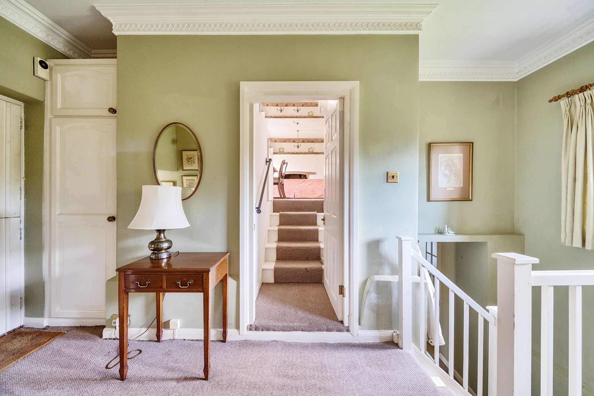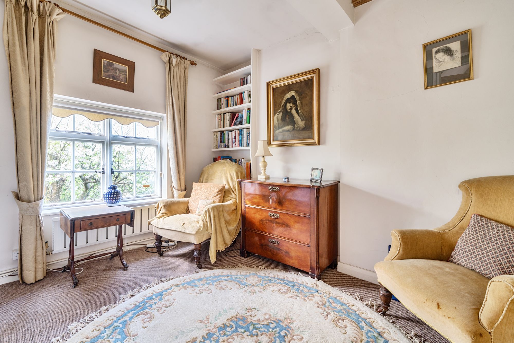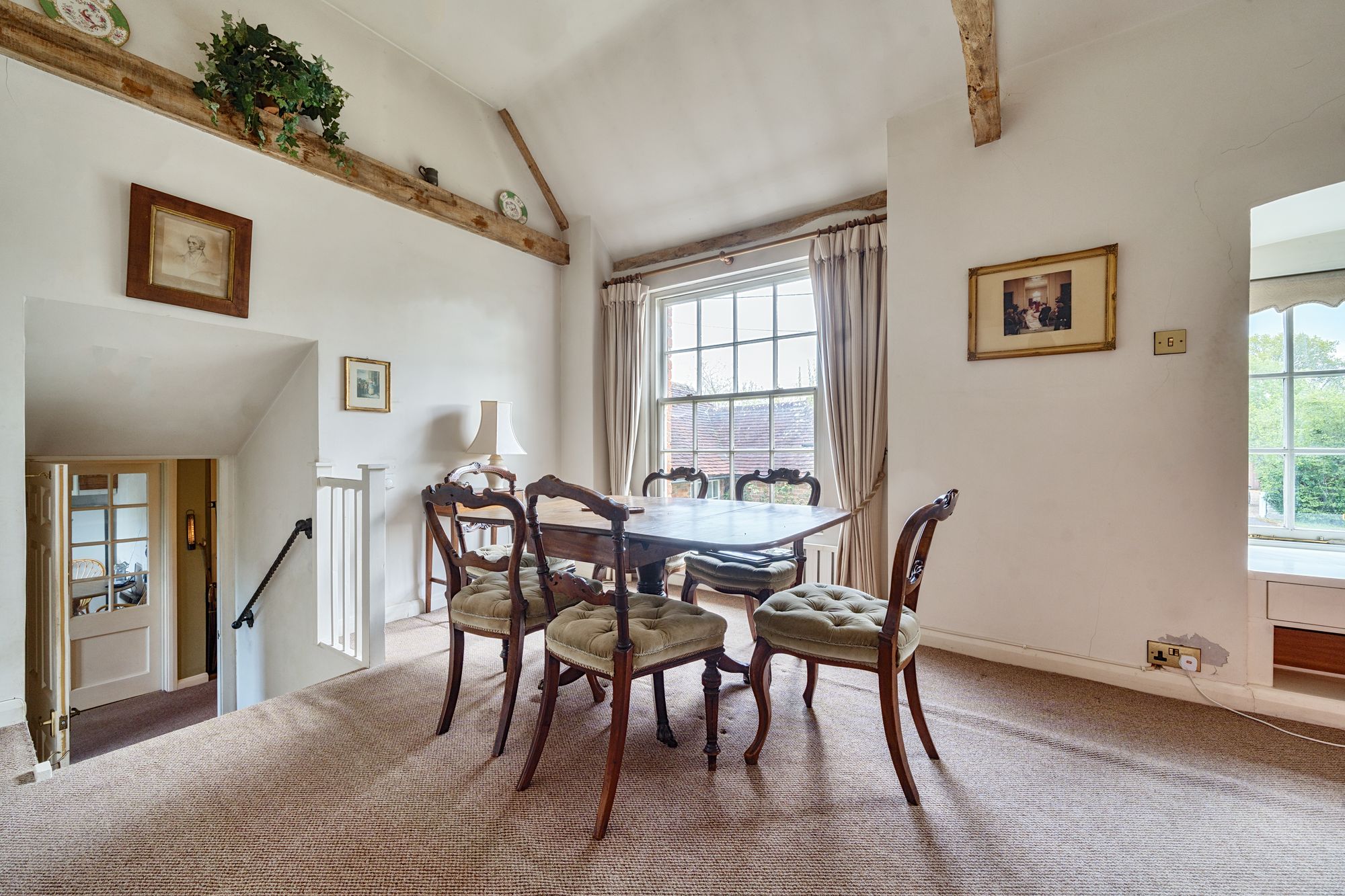 Steps lead up from the charming courtyard driveway to a lovely entrance hall. The spacious sitting room featuring a vaulted ceiling and a striking open fire, setting the tone for cosy evenings in. A dedicated study provides the perfect space for remote work or relaxing with a good book. The kitchen has room for appliances but would benefit from updating. There is a bathroom and separate shower room, which is also an en-suite to bedroom one. The three double bedrooms offer peaceful retreats. The property is complete with a single garage and driveway parking, ensuring convenience in this idyllic village setting.