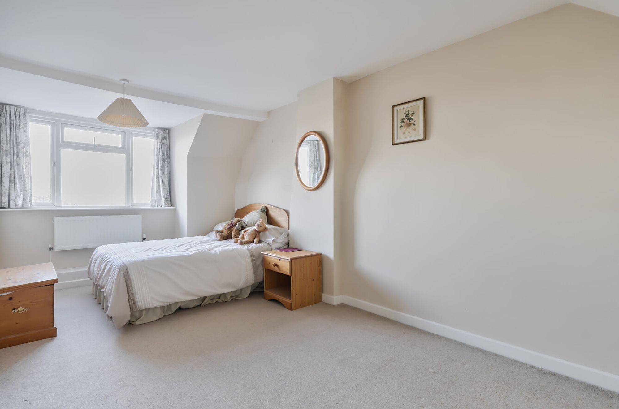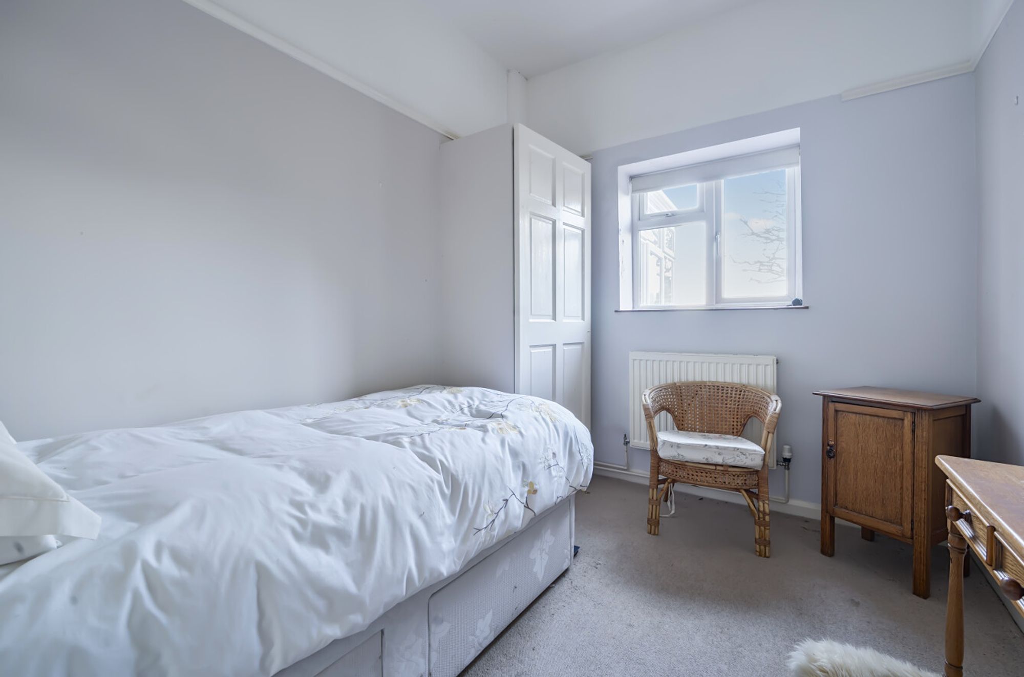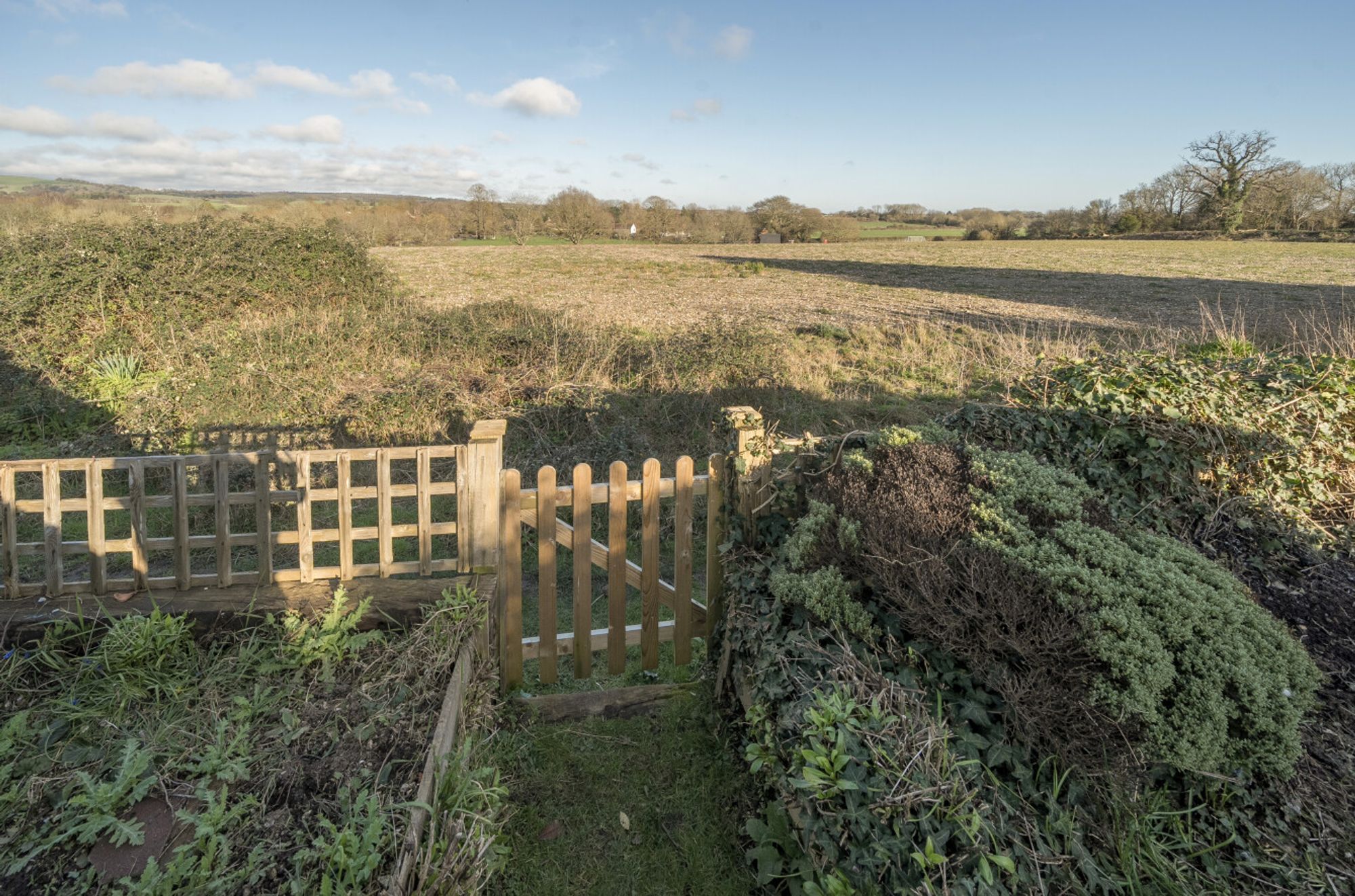 Outside, the property is approached via a wide gravel driveway providing ample off-road parking. To the rear lies a long garden, predominantly laid to lawn with a patio area, well-established borders and a high flint retaining wall to one side. A gate at the far end of the garden opens directly onto a country pathway, perfect for walkers and nature lovers.