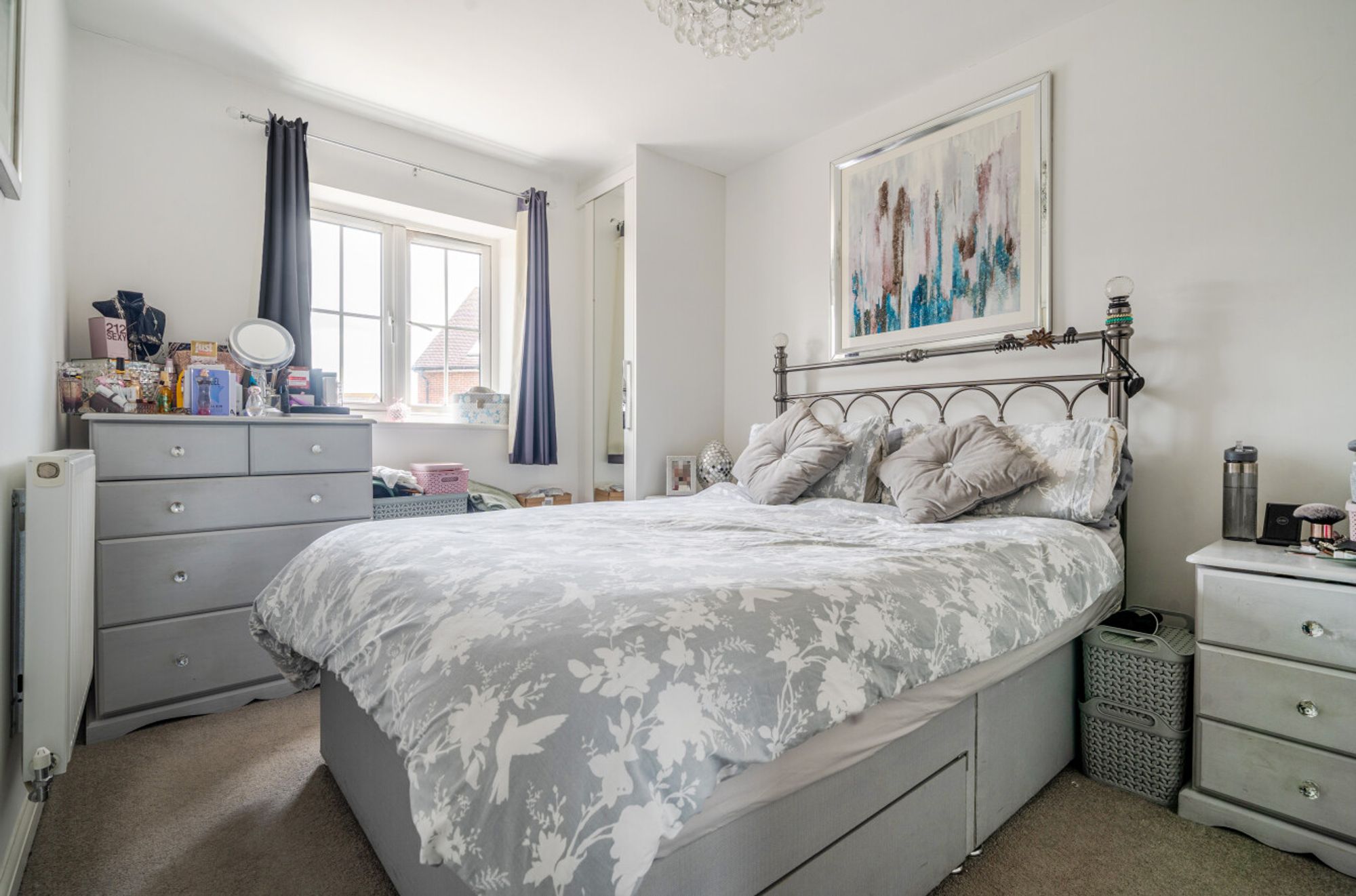 The first floor accommodates two double bedrooms and a single bedroom. The first bedroom includes fitted wardrobes and an en-suite shower room, while a family bathroom serves the second and third bedrooms.