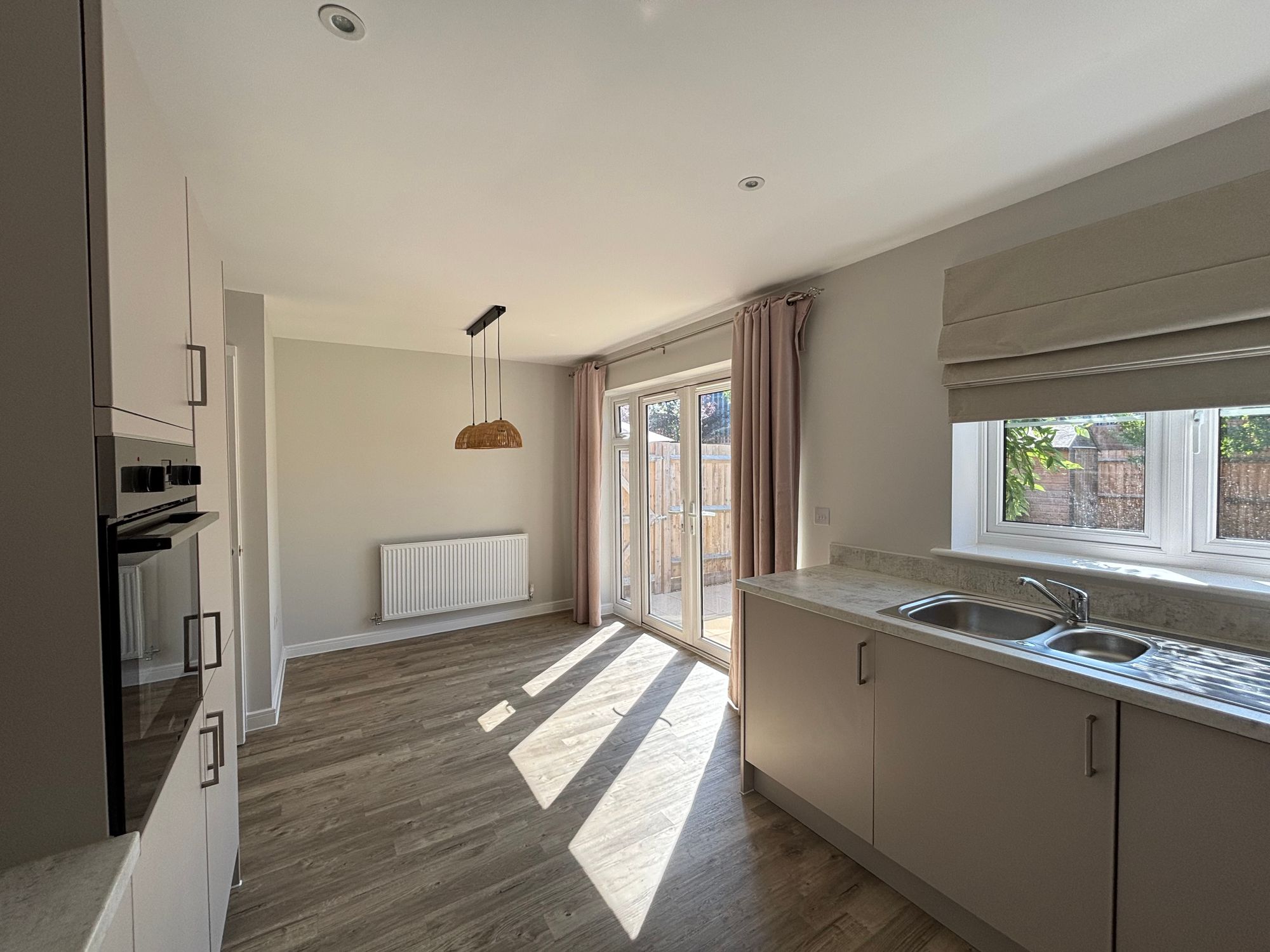 Upstairs, the principal bedroom boasts an en-suite shower room, while two further bedrooms are served by a stylish family bathroom.