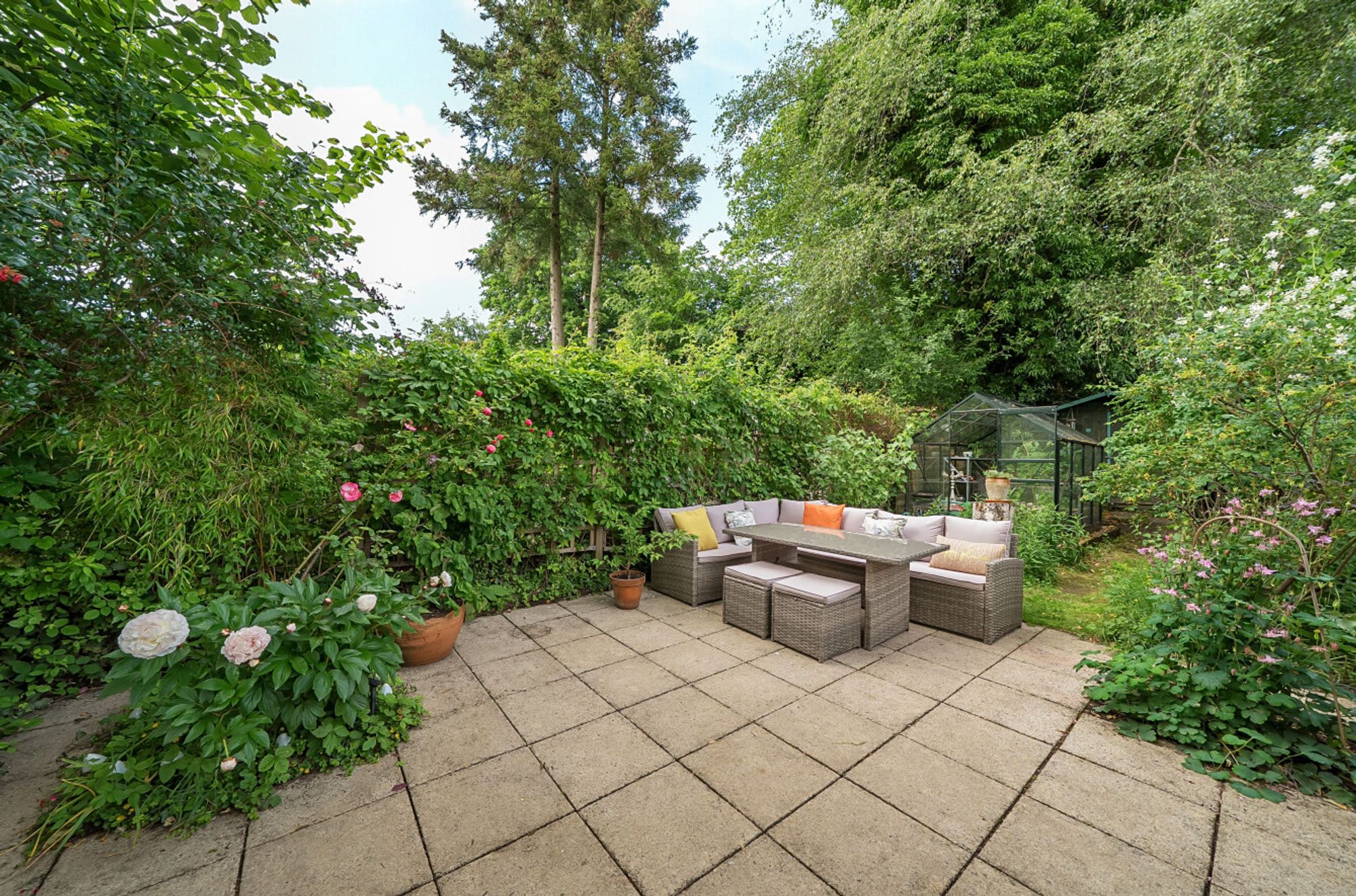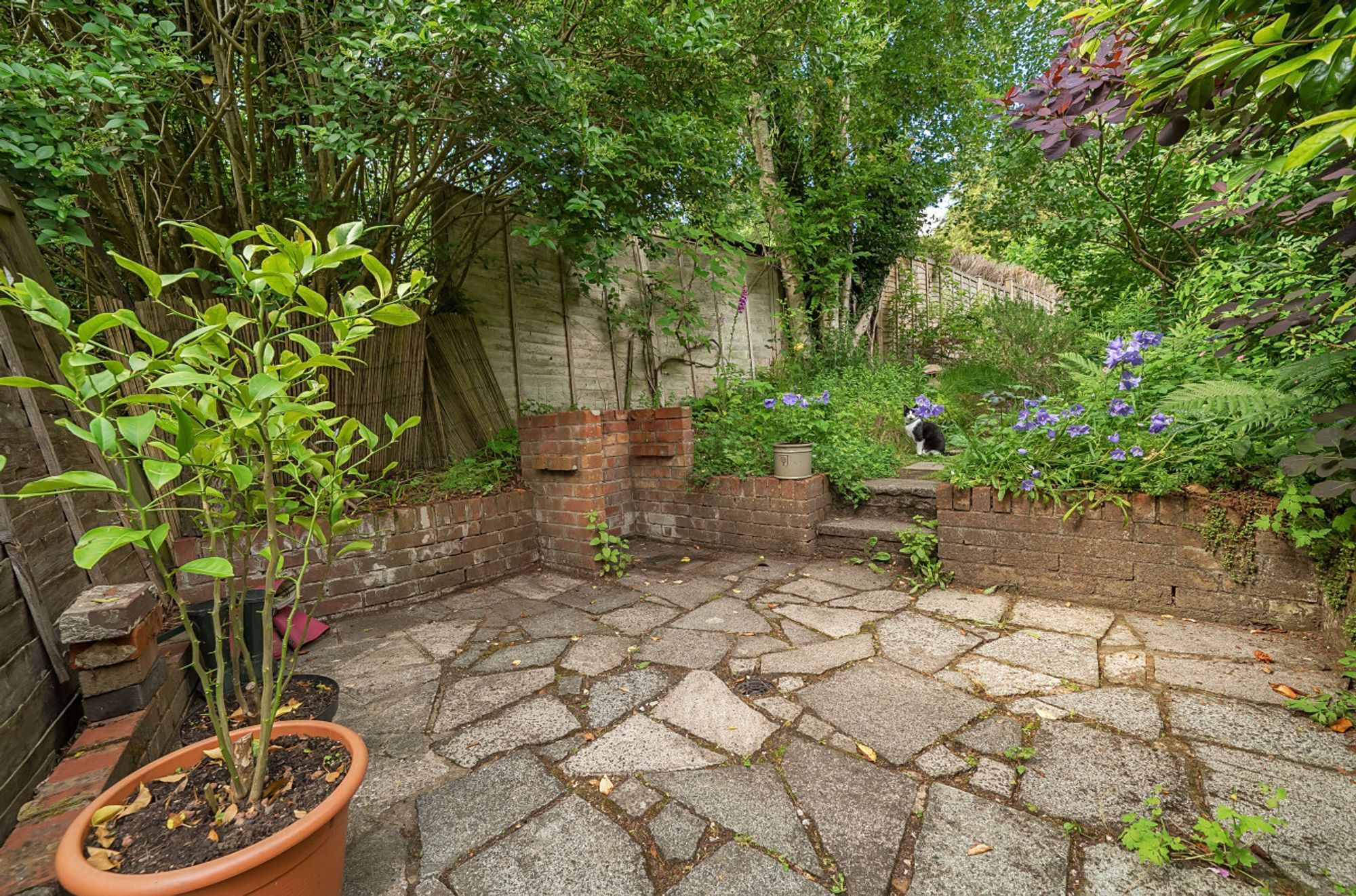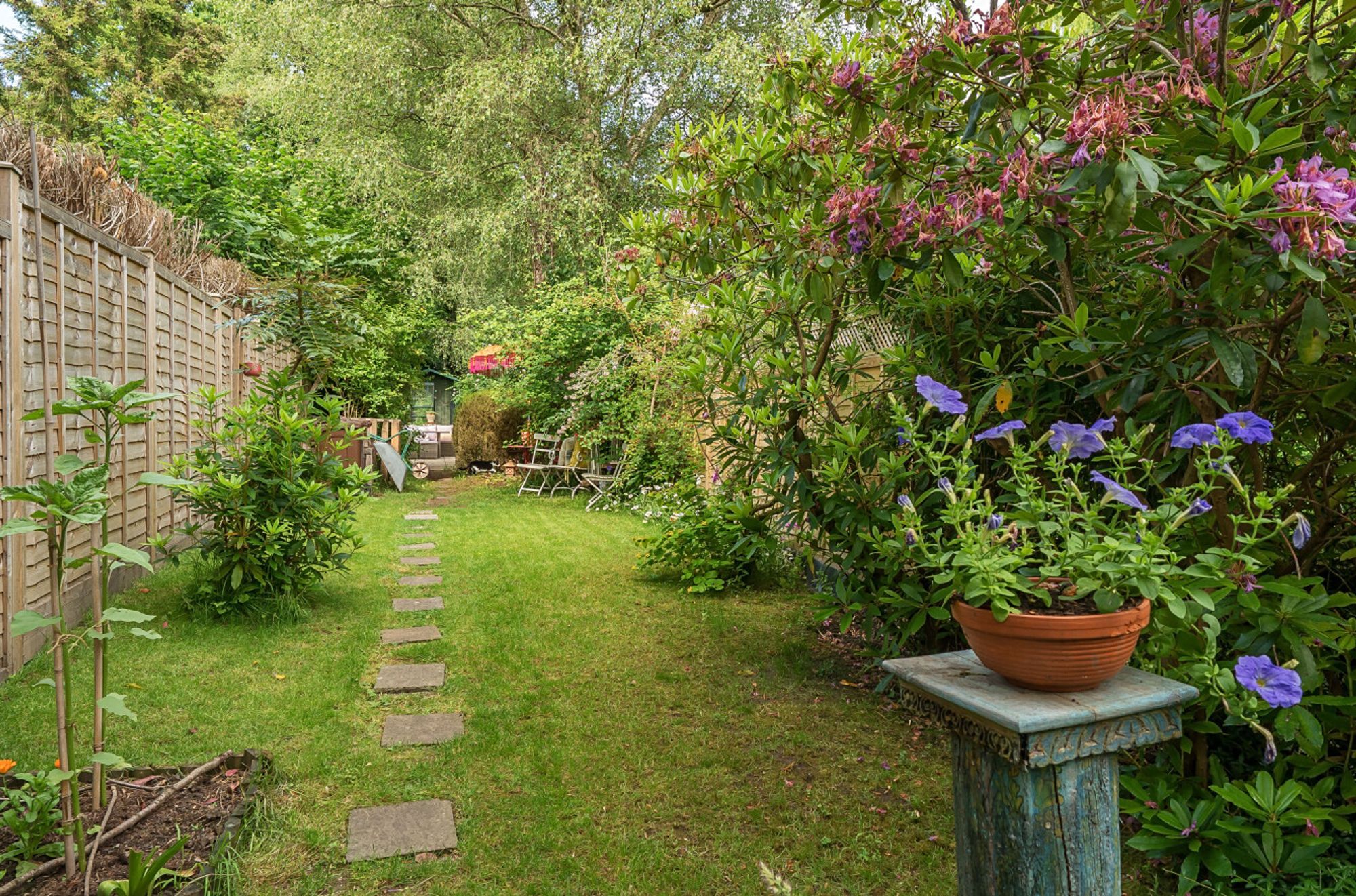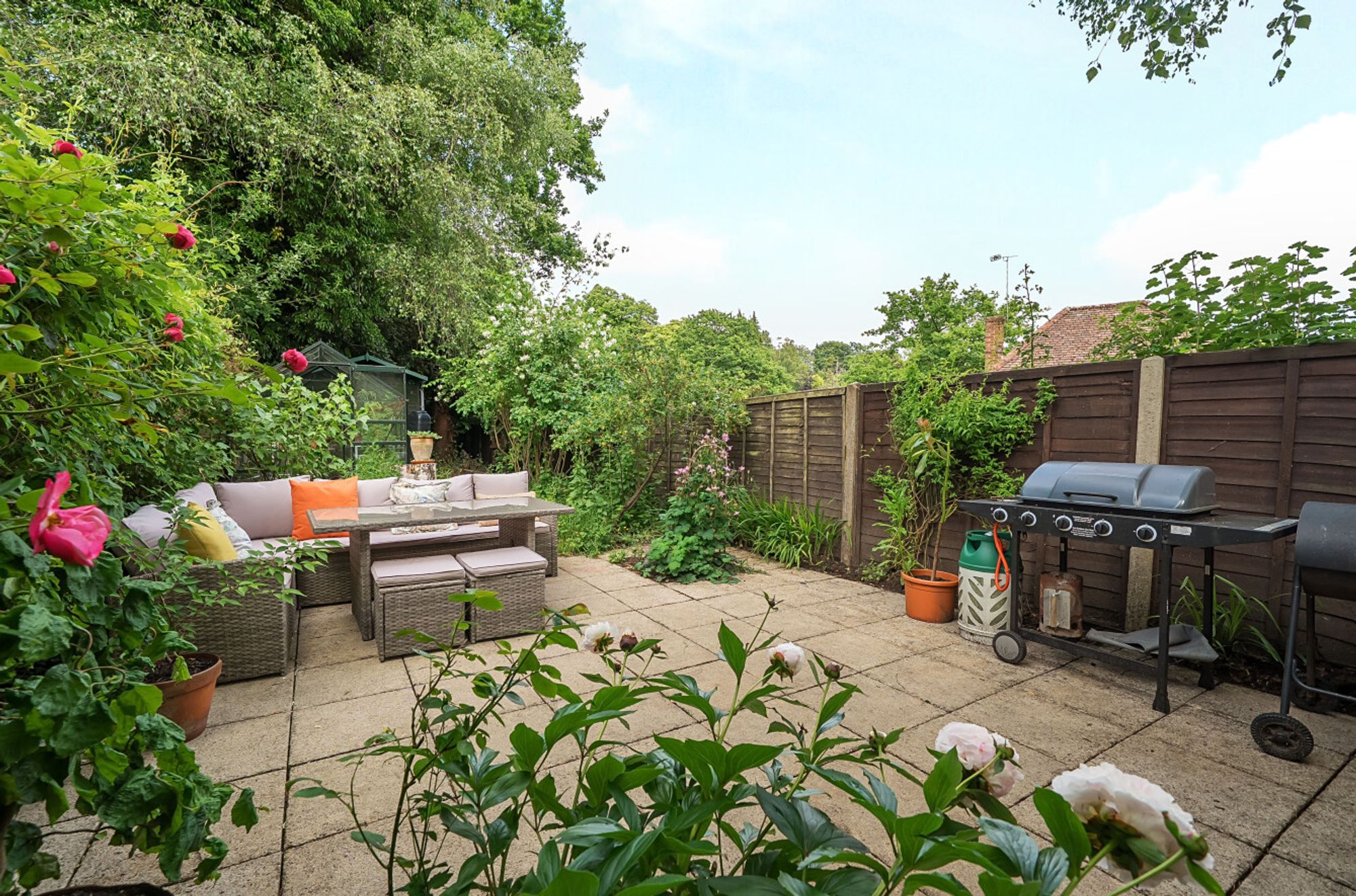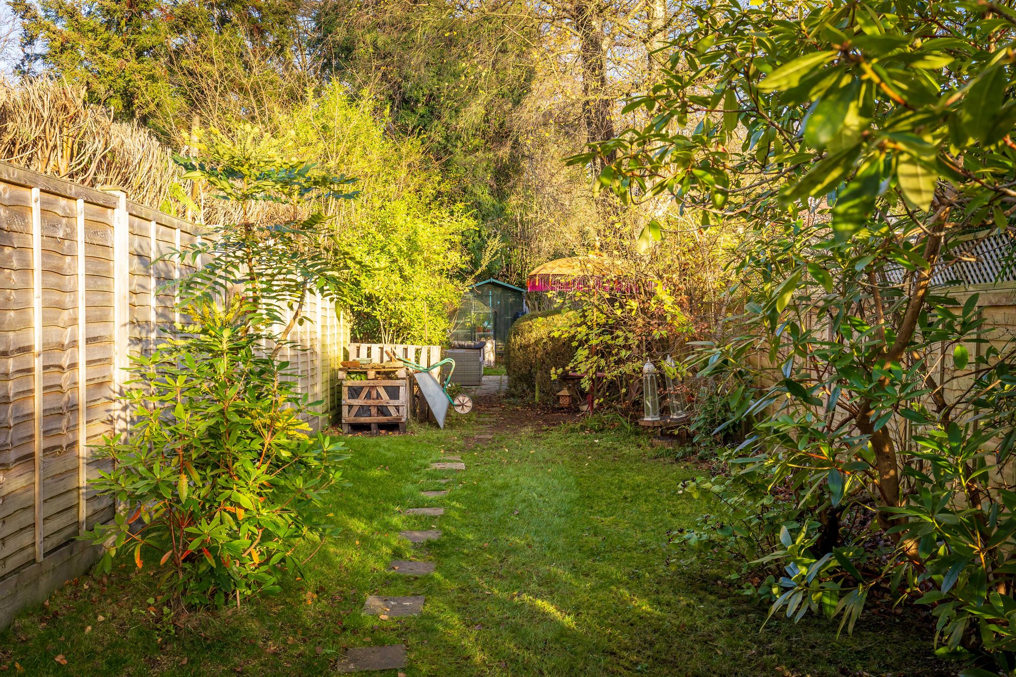 The rear garden is a standout feature which is wonderfully private, deceptively long, and rich with established shrubs, trees, and deep flowerbeds. A paved terrace sits just outside the kitchen, with a second secluded patio at the far end, providing ideal spaces for outdoor dining and relaxation. A timber shed offers useful storage, and there is excellent scope to add a home office or garden studio (subject to any necessary permissions).
