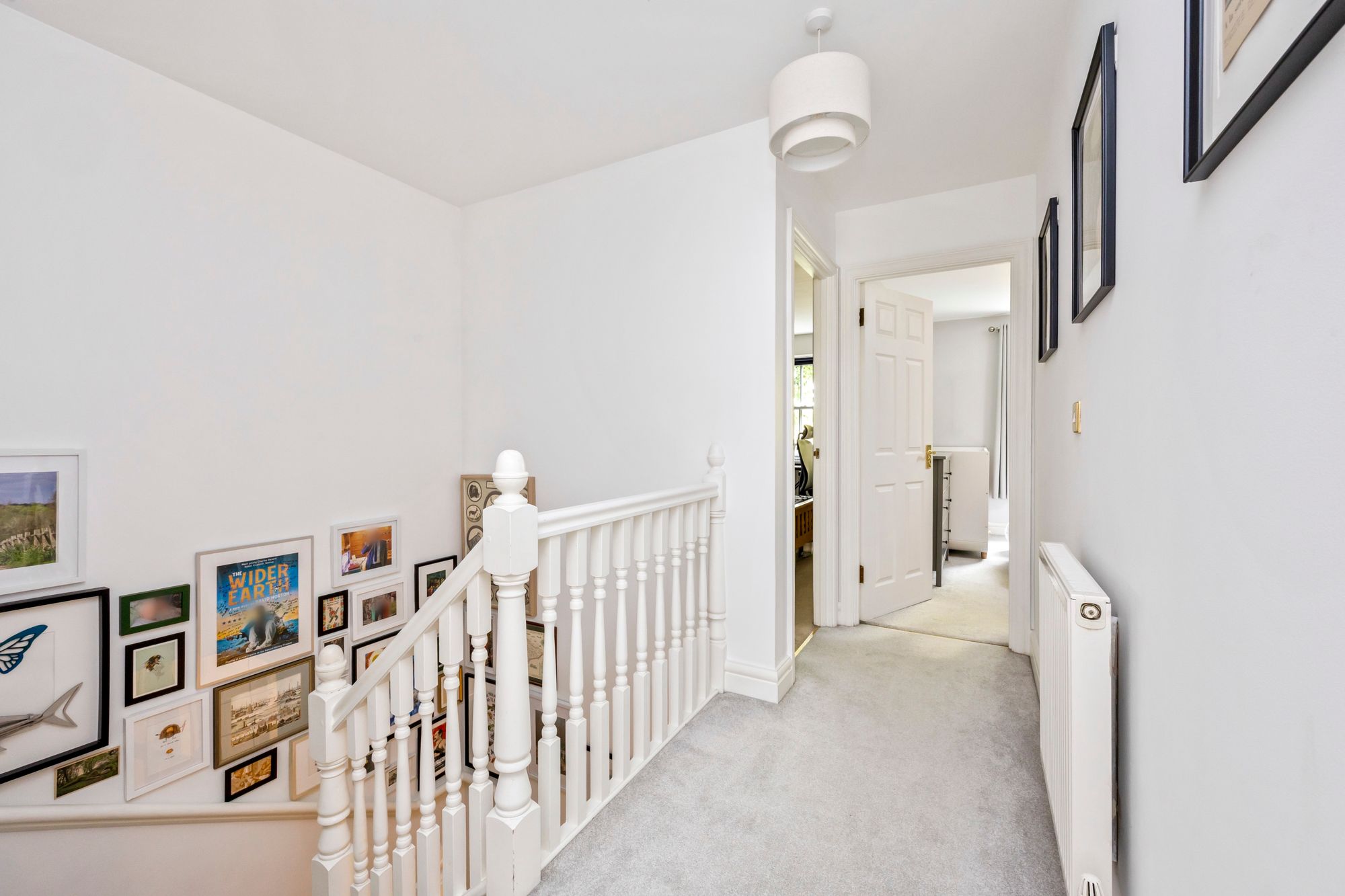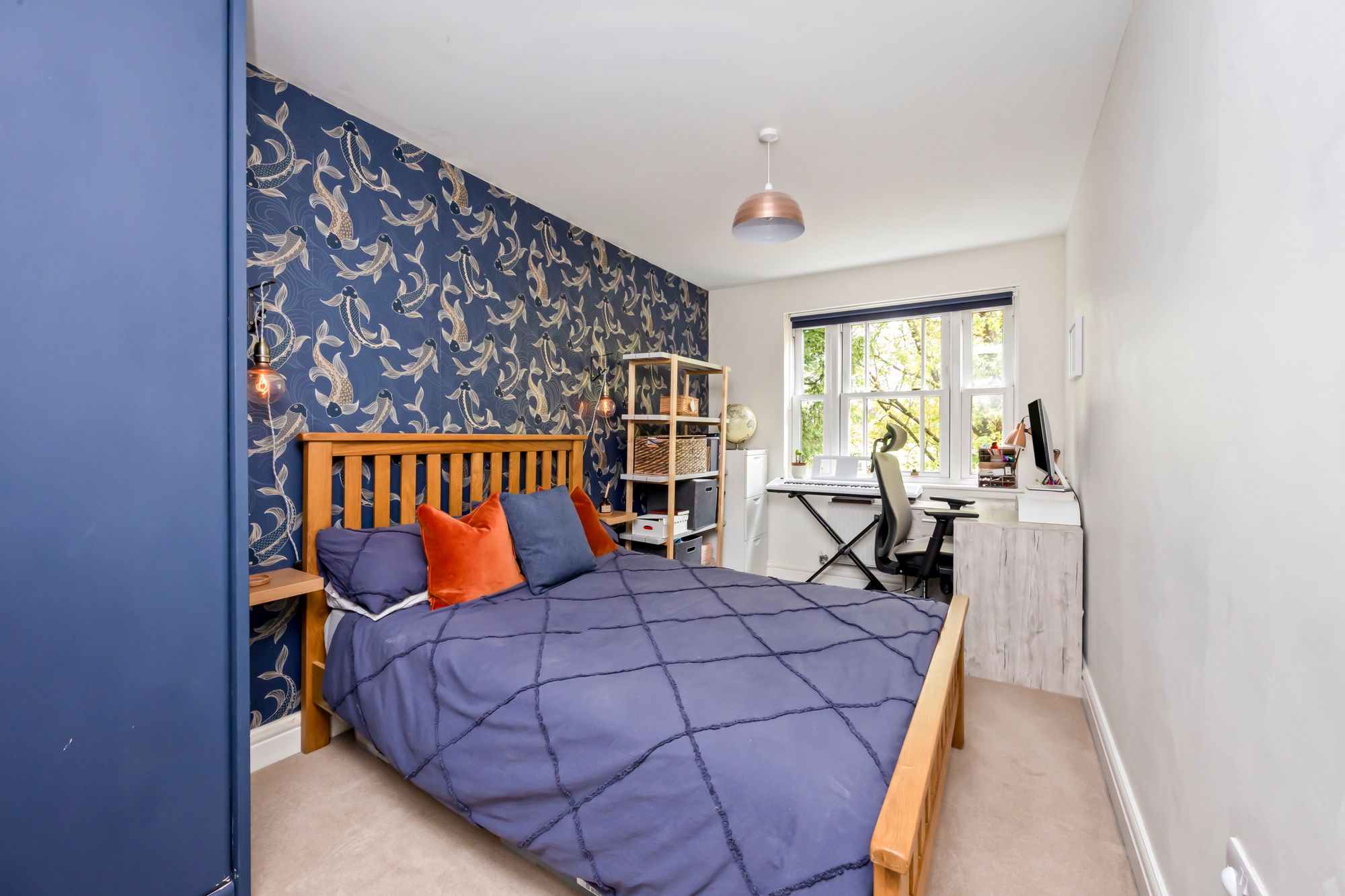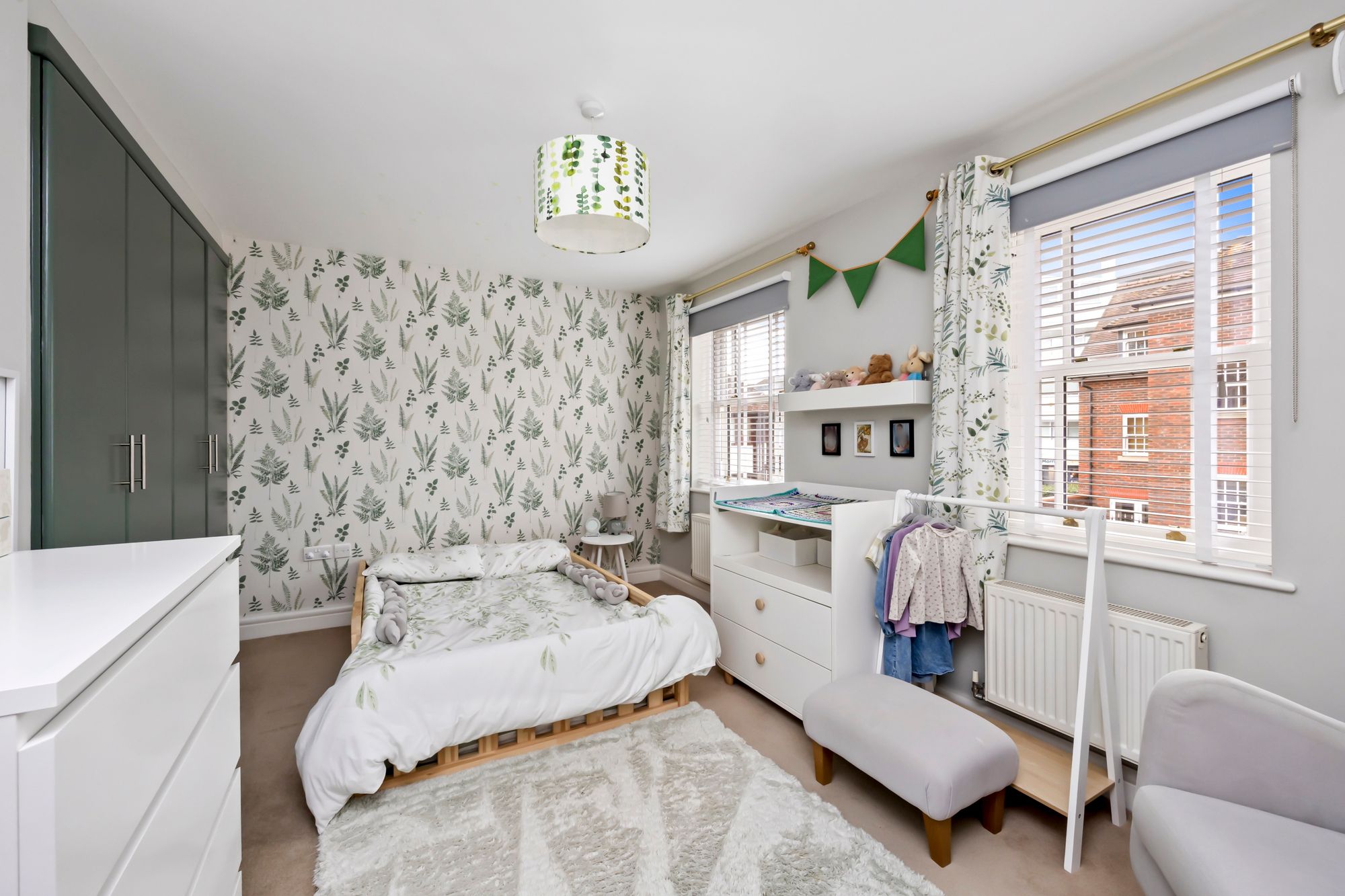 The turning staircase leads to the first floor where the main bedroom enjoys views to the rear of the property over Horsham Park. There is ample fitted wardrobe space and a well-equipped en-suite shower room with modern and contemporary finish, featuring a white bathroom suite and quality chrome fittings.