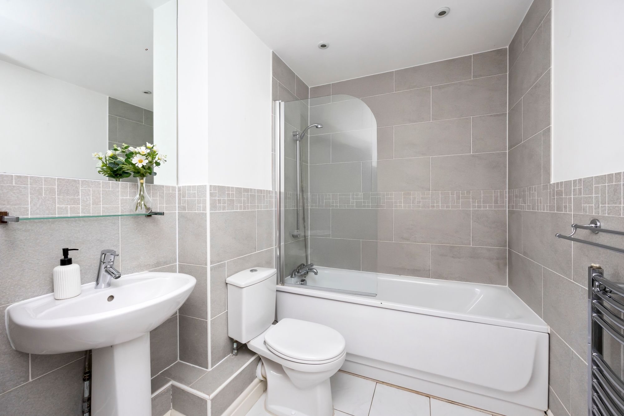 Bedroom two enjoys views to the front of the property and has fitted wardrobe space and is of decent proportions. Bedroom three also benefits from fitted wardrobe space and enjoys views out to the rear of the property. The main bathroom has a wall mounted shower over bath. There is Italian style modern and contemporary tiling to the walls and quality chrome fittings to the bathroom suite.