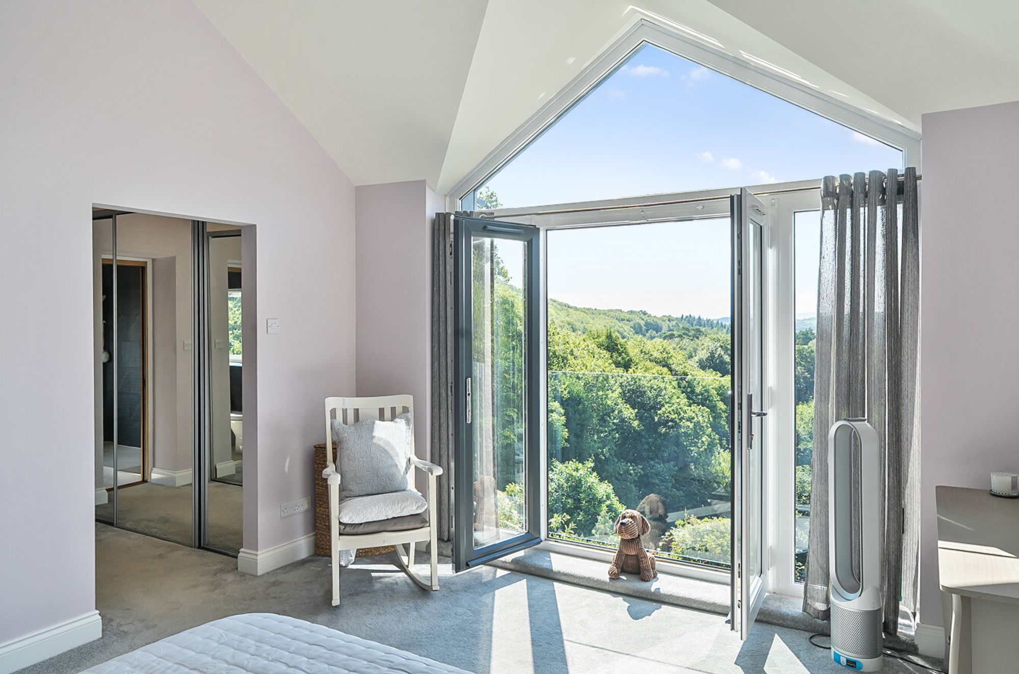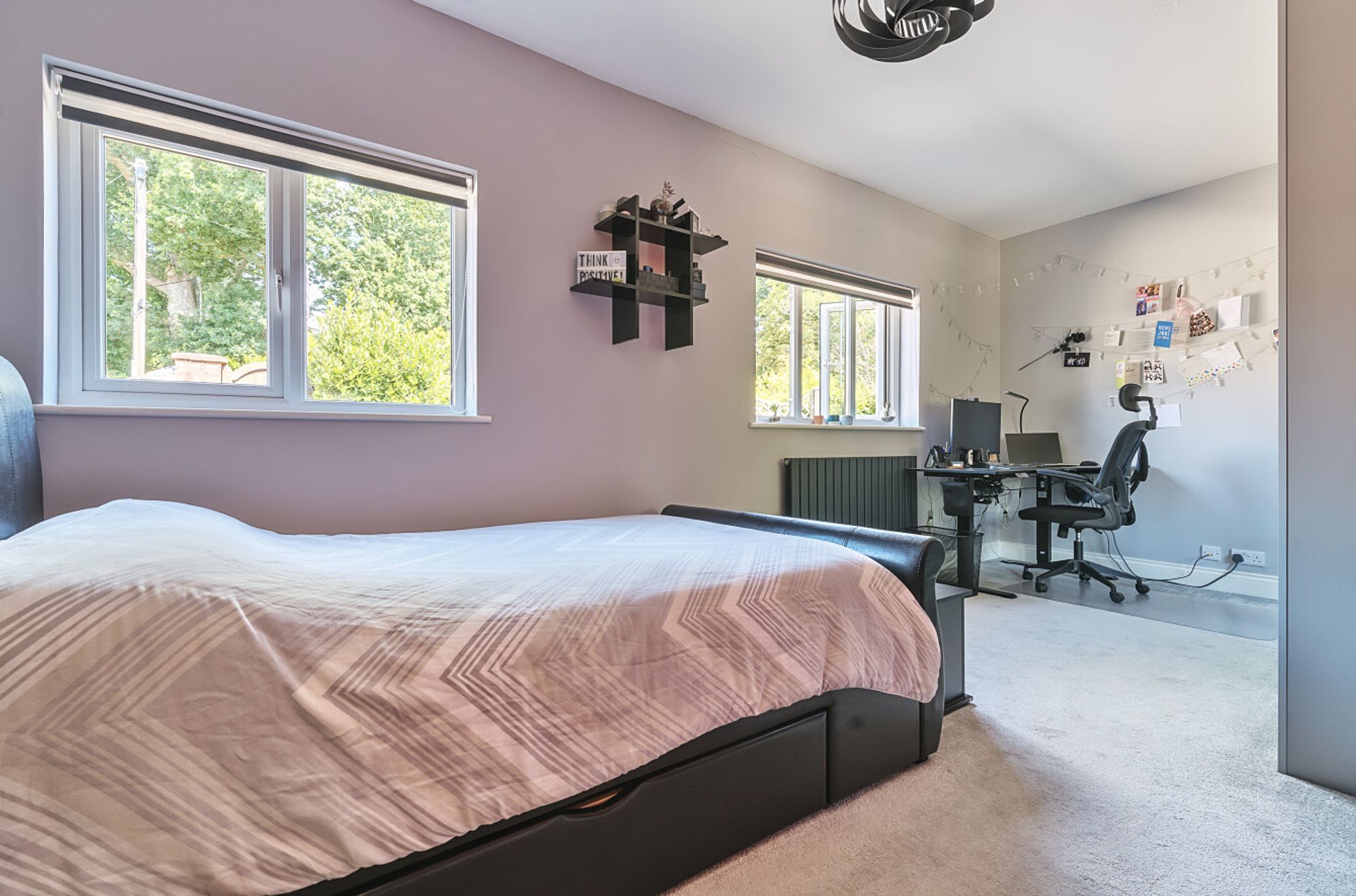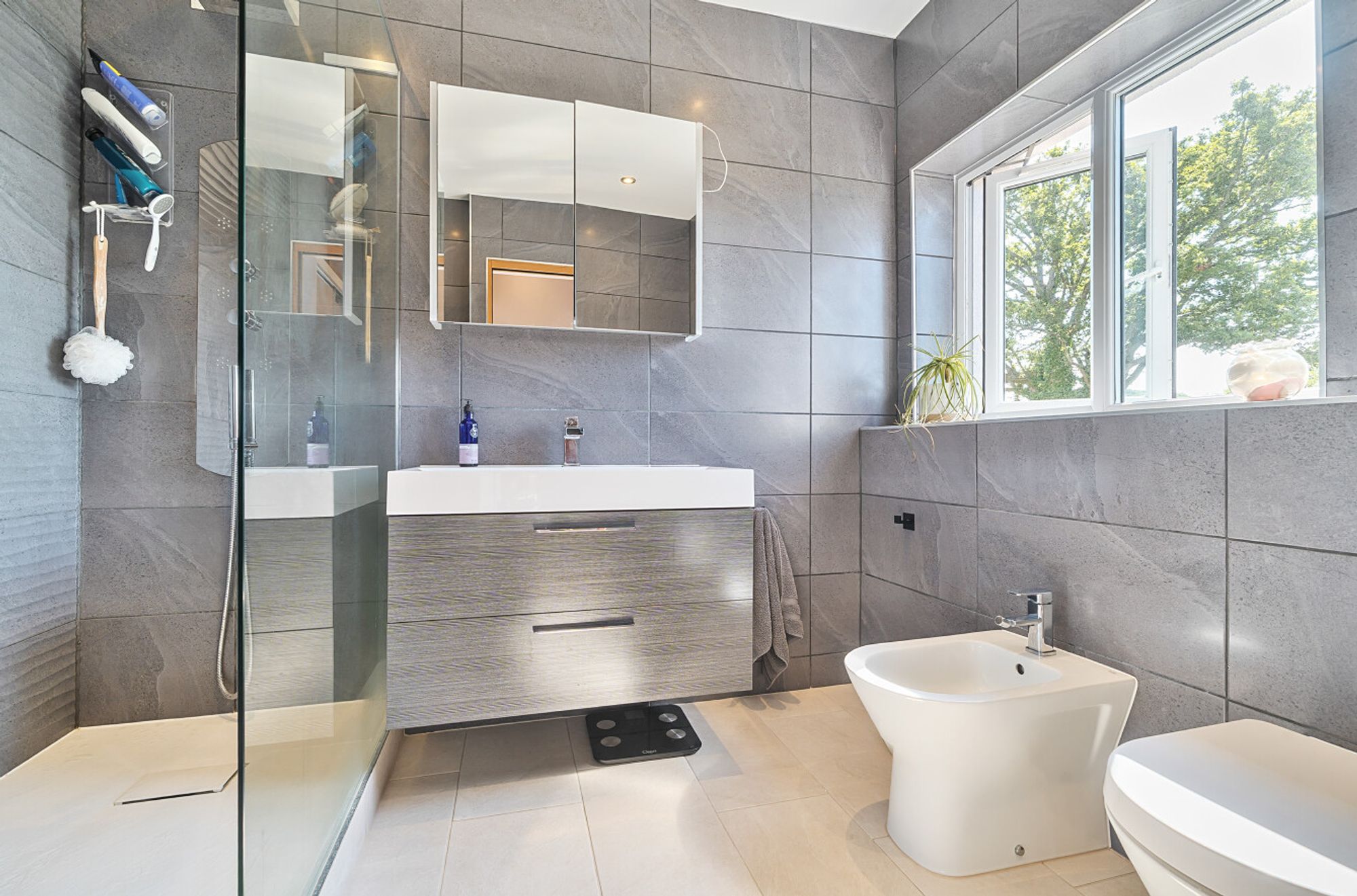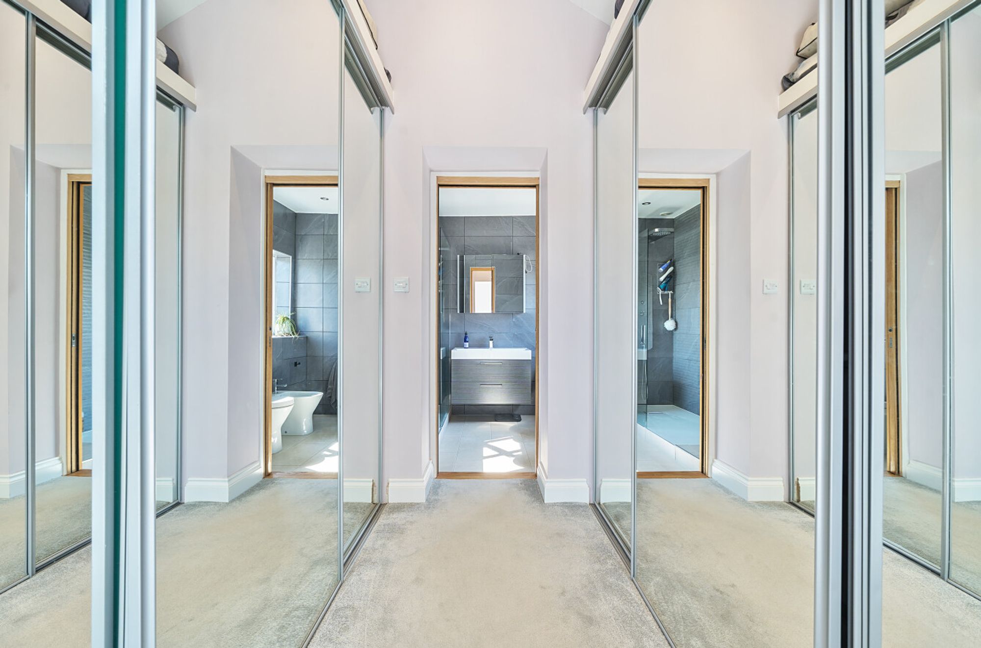 Designed with an upside-down layout to maximise light and scenery, the property is cleverly arranged for versatile family living. Entry is at first-floor level, where you’re welcomed by a bright hallway leading to four well-proportioned bedrooms. The impressive master suite features a private dressing room and sleek en-suite bathroom, creating a peaceful retreat with views across the surrounding greenery. Three further bedrooms and a modern family bathroom offer ample space for children, guests, or a home office setup.