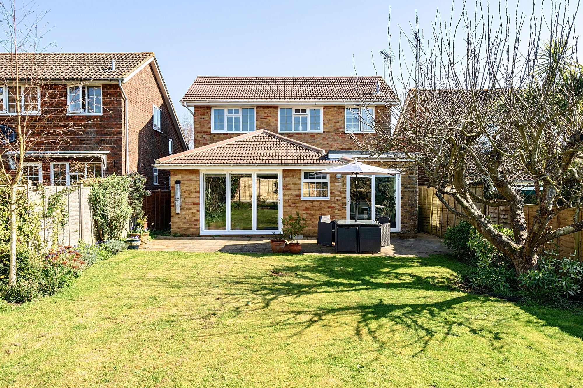Additional features include a single garage and driveway parking, offering secure and convenient storage or parking options. The south west facing garden is a true highlight, with a generous patio area and a variety of mature plants and shrubs, creating an attractive outlook from the principal rooms. The property was also fully re-roofed in 2023.