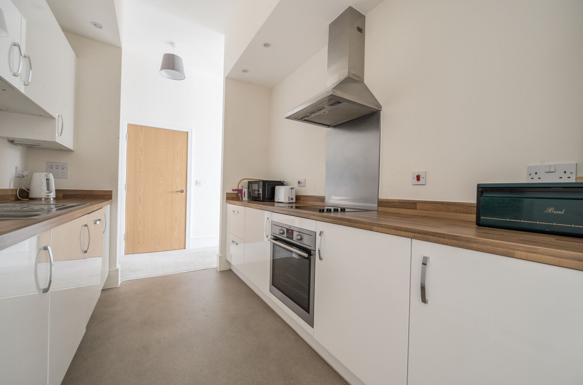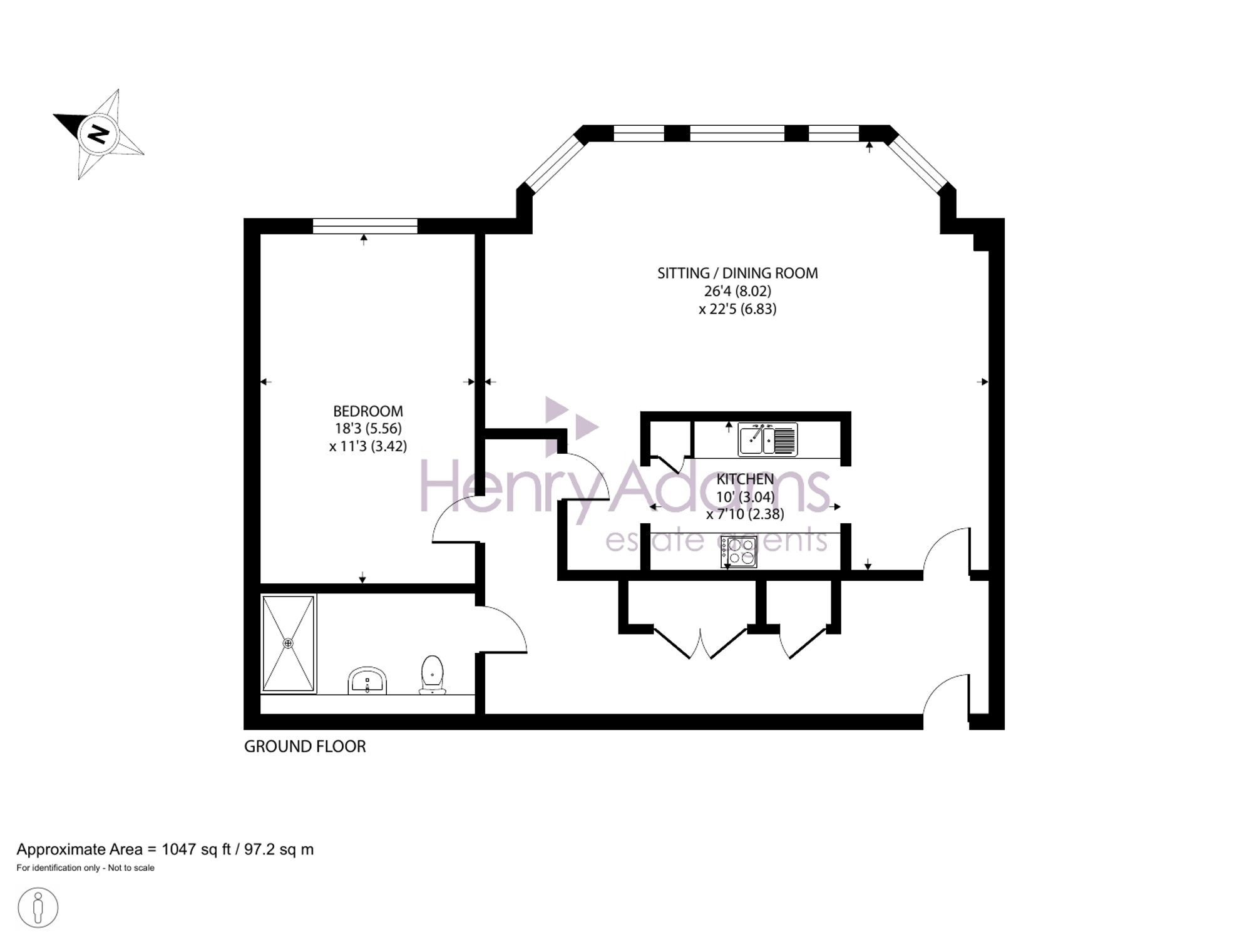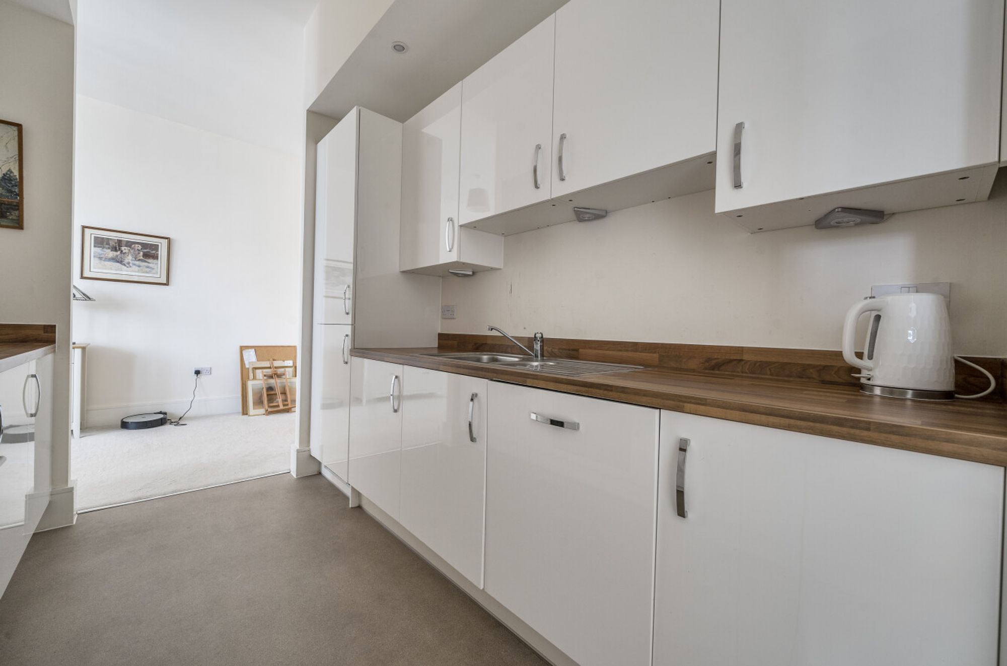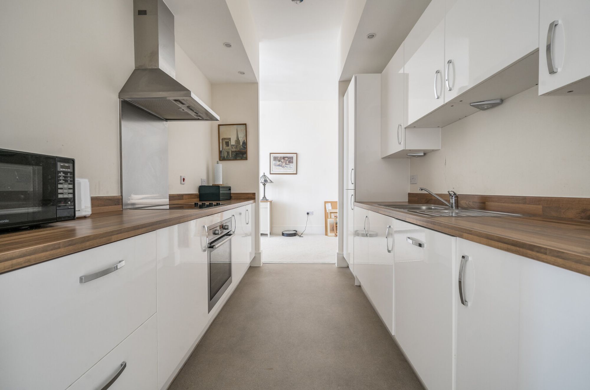 Situated in one of the attractive, traditional-style blocks, this well-presented property offers a bright and airy open-plan living space, with a generous sitting/dining area and large traditional windows that allow natural light to flood in. The kitchen is stylishly integrated into its own defined area and includes modern appliances such as an electric oven, ceramic hob, cooker hood and fridge/freezer. The bedroom is well-proportioned and filled with natural light, and the bathroom features a contemporary suite with a shower cubicle.